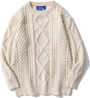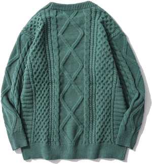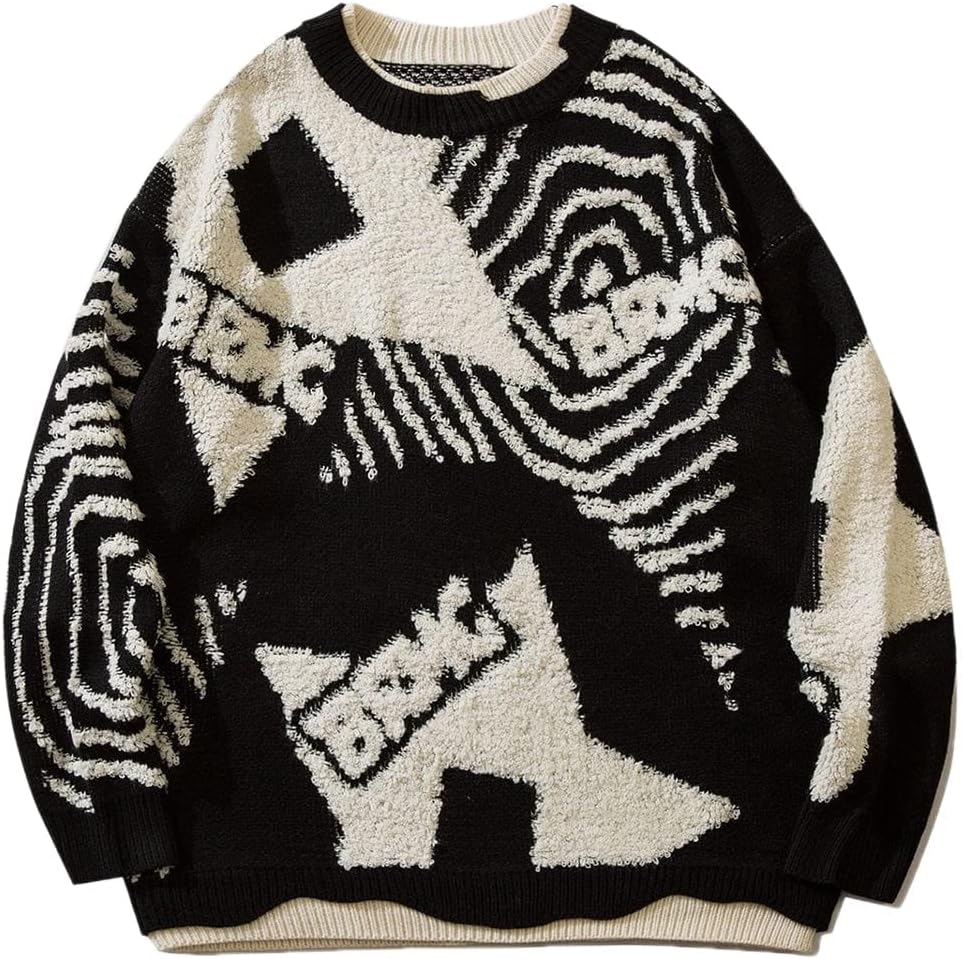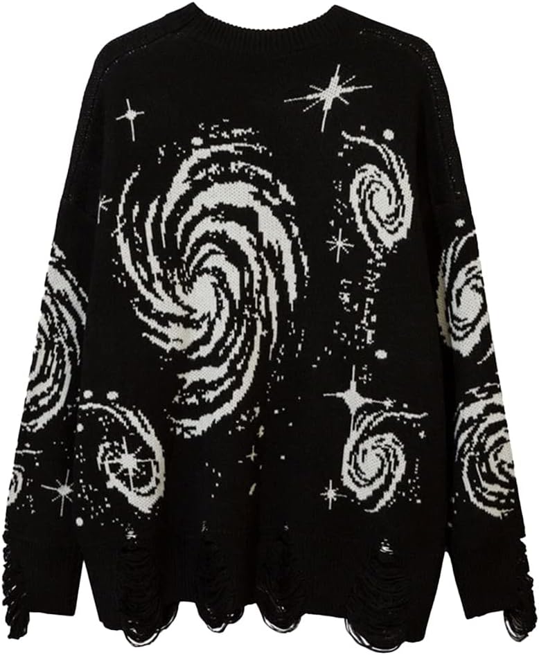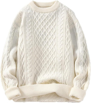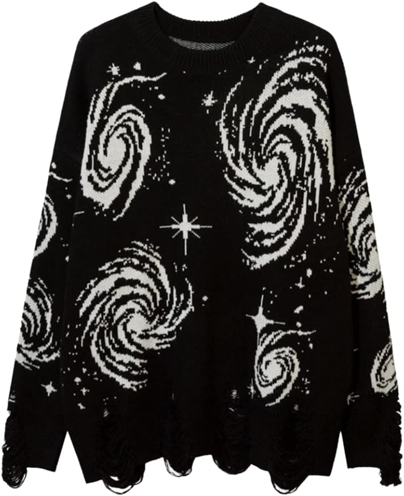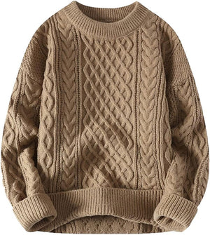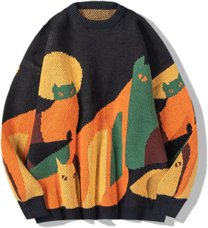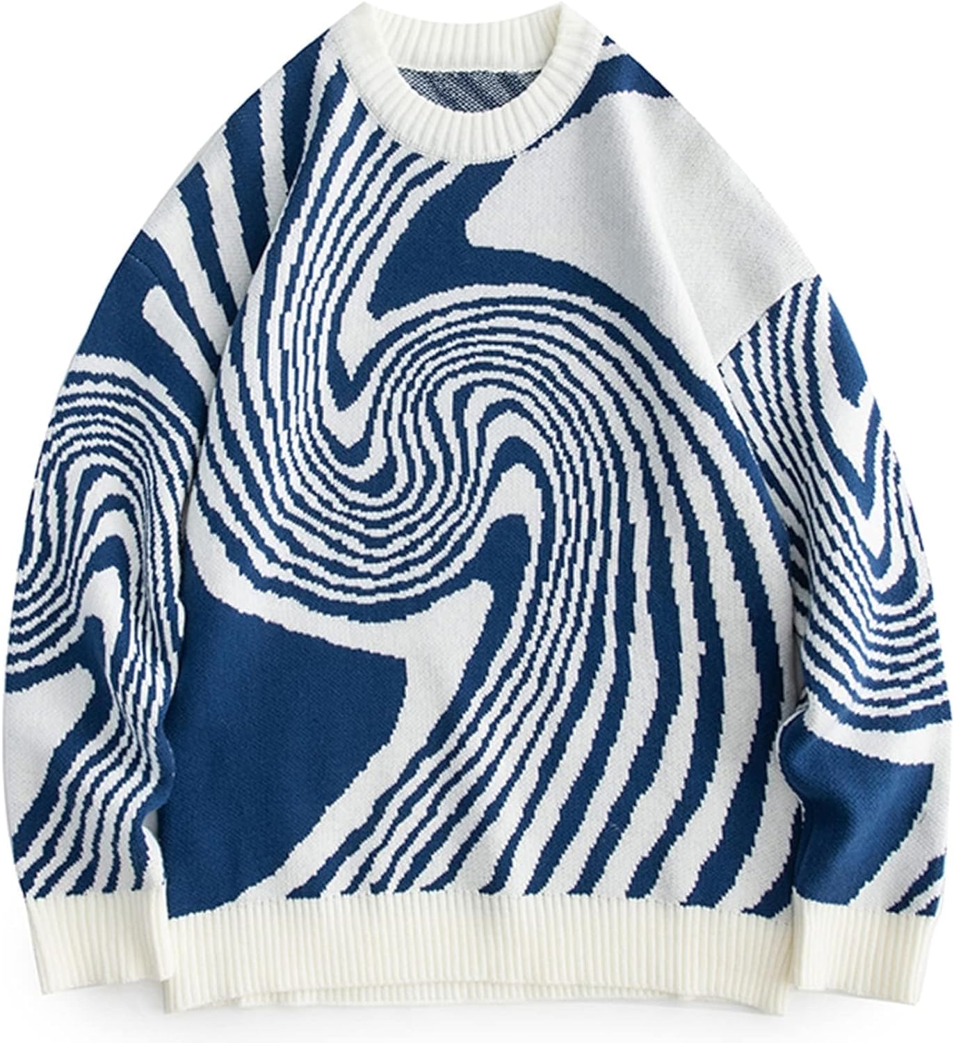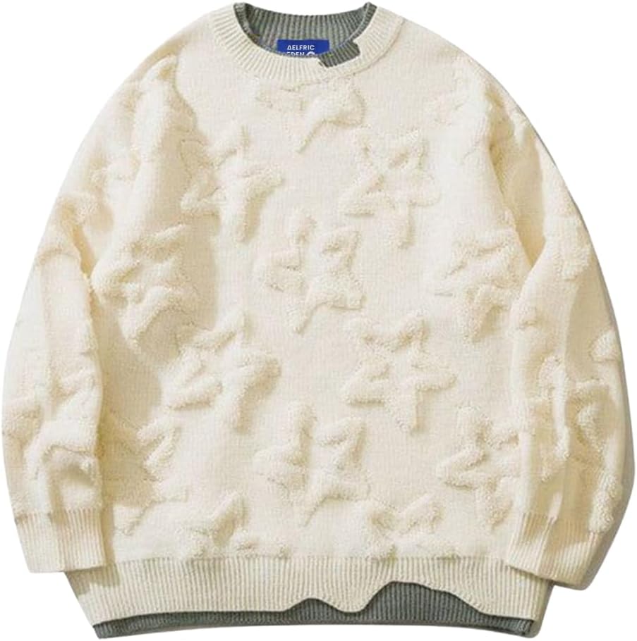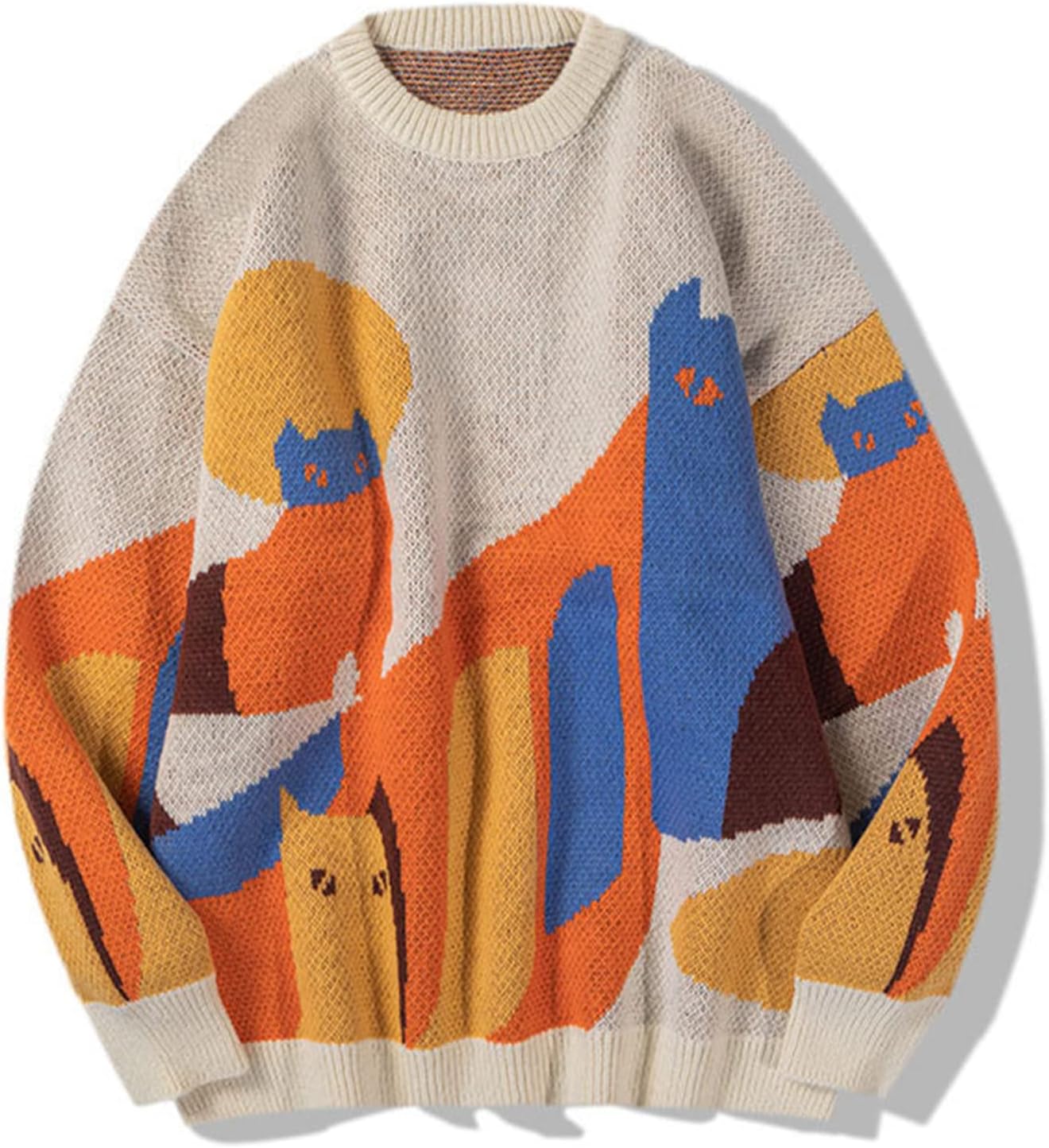 Aelfric Eden Mens Long Sleeve Van Gogh Printed Cable Knit Sweaters Casual Oversized Sweater Pullover