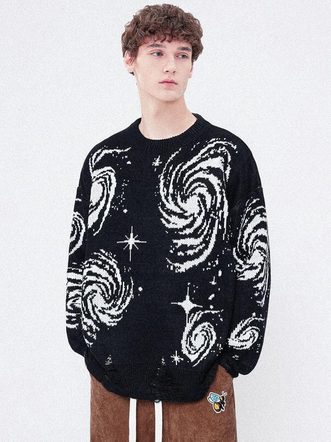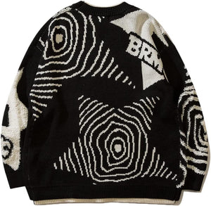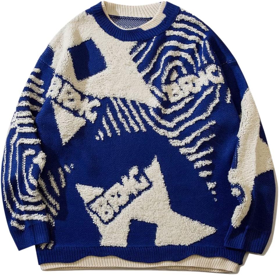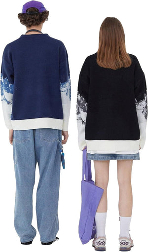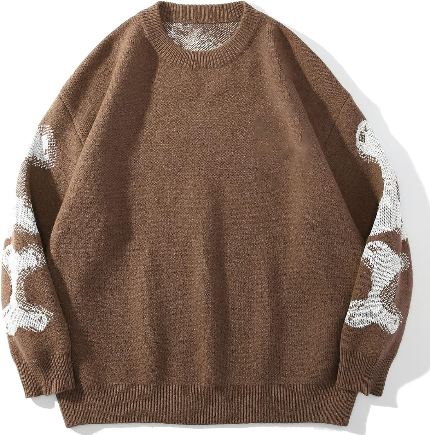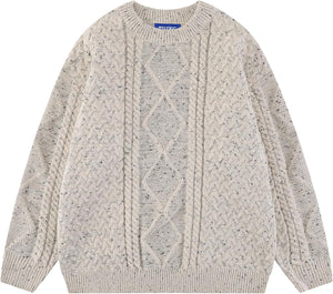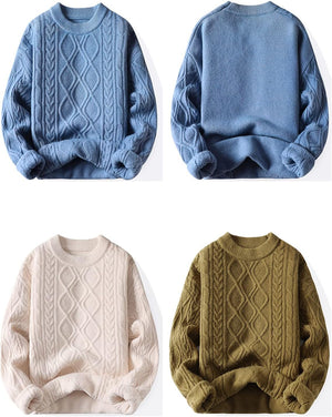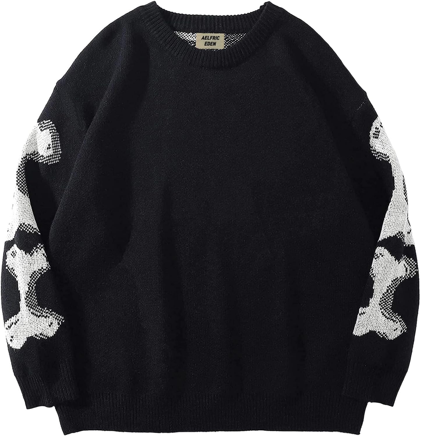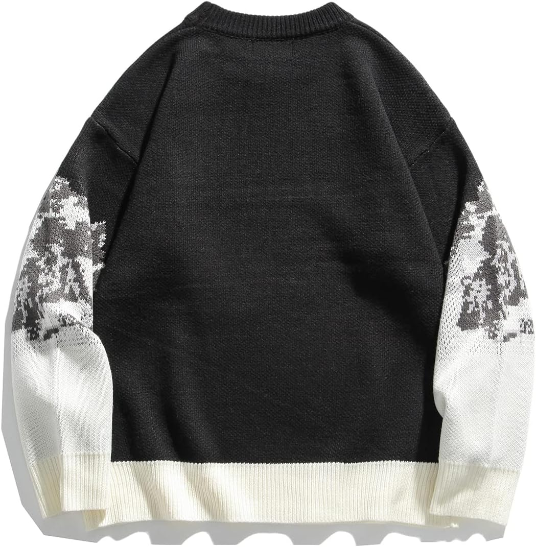 Aelfric Eden Mens Long Sleeve Van Gogh Printed Cable Knit Sweaters Casual Oversized Sweater Pullover