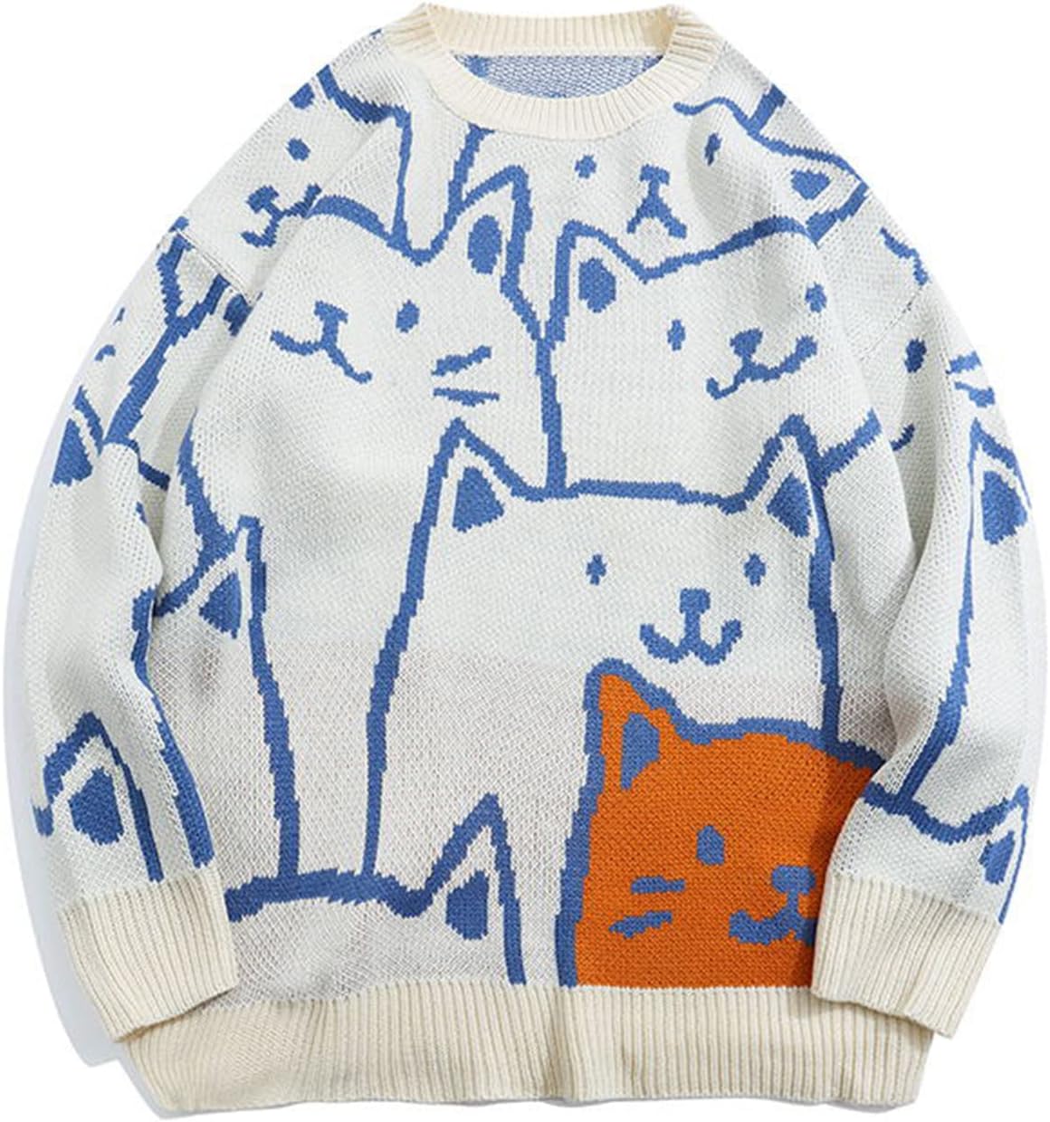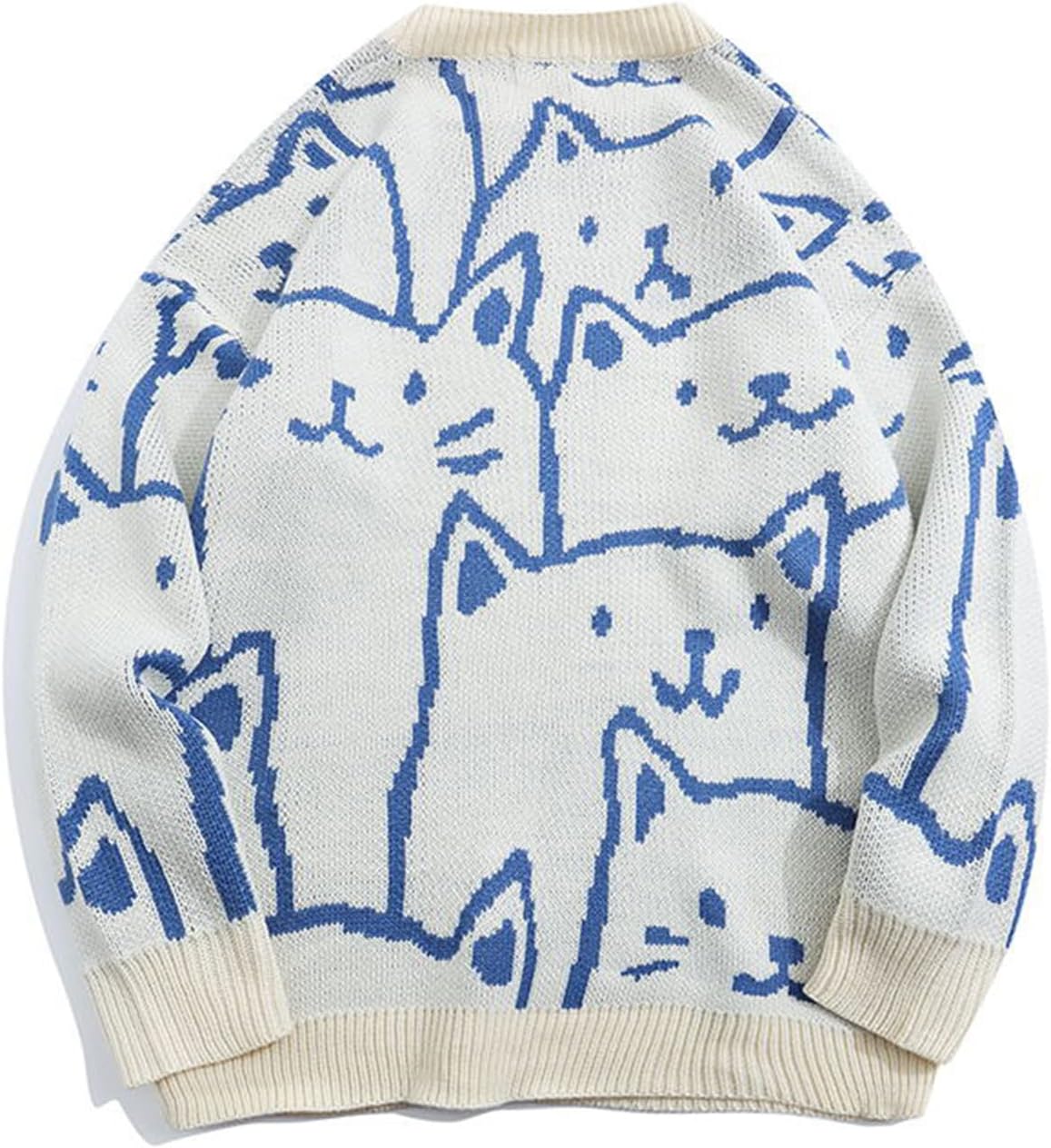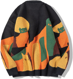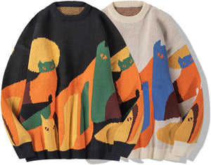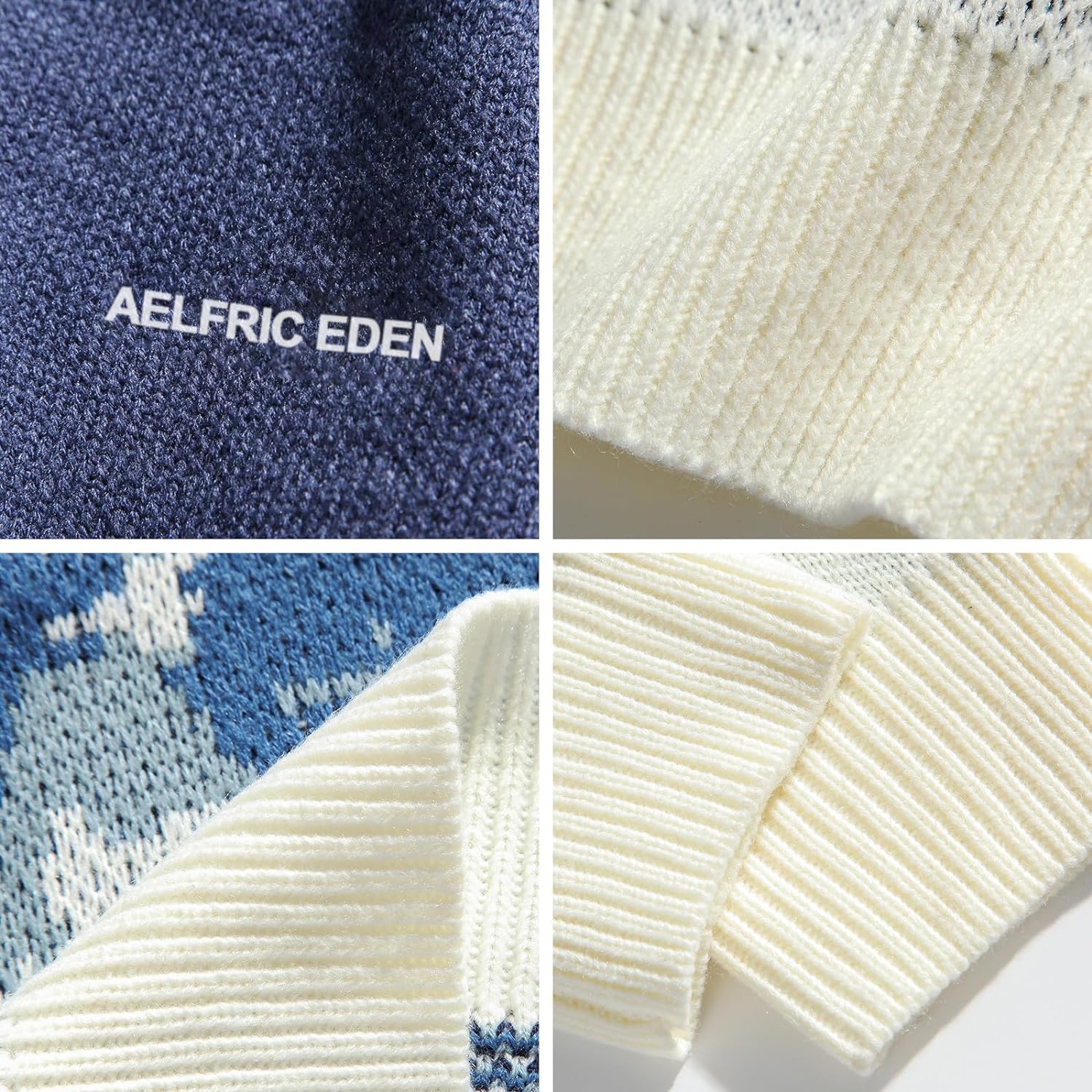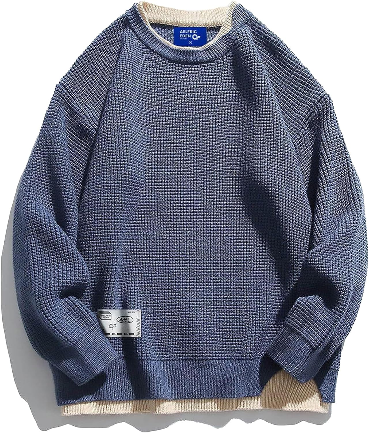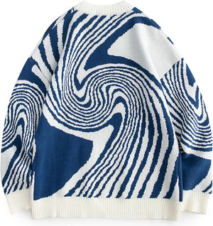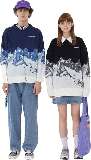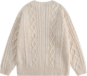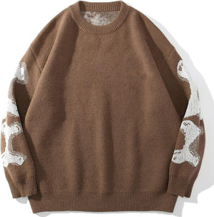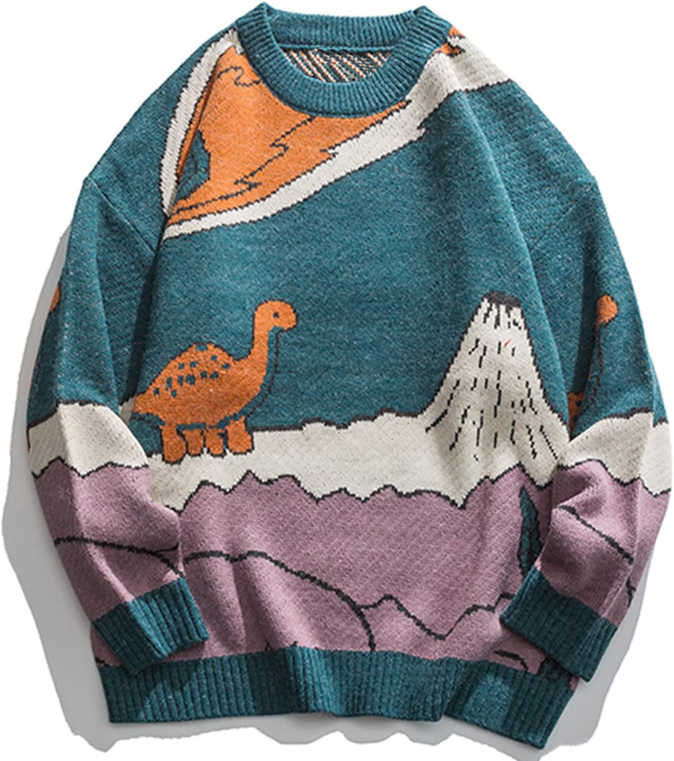 Aelfric Eden Mens Long Sleeve Van Gogh Printed Cable Knit Sweaters Casual Oversized Sweater Pullover