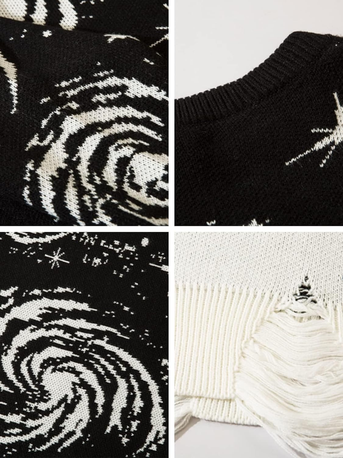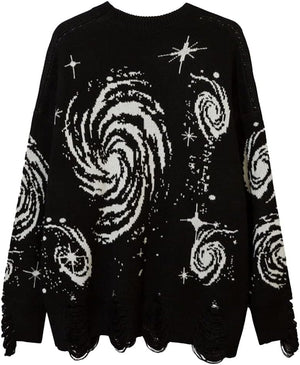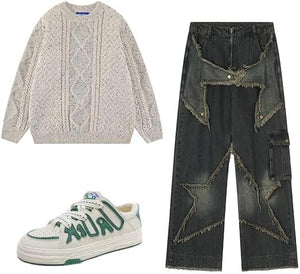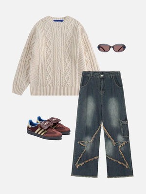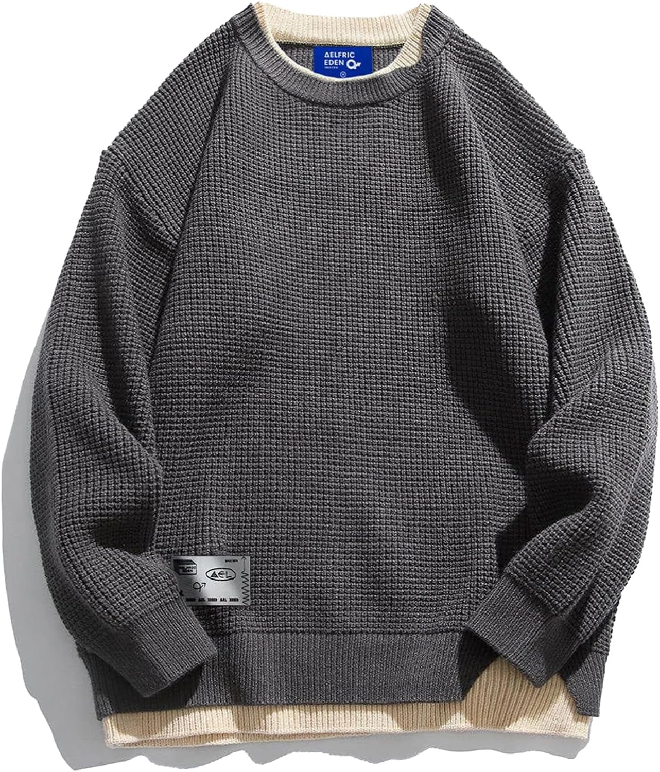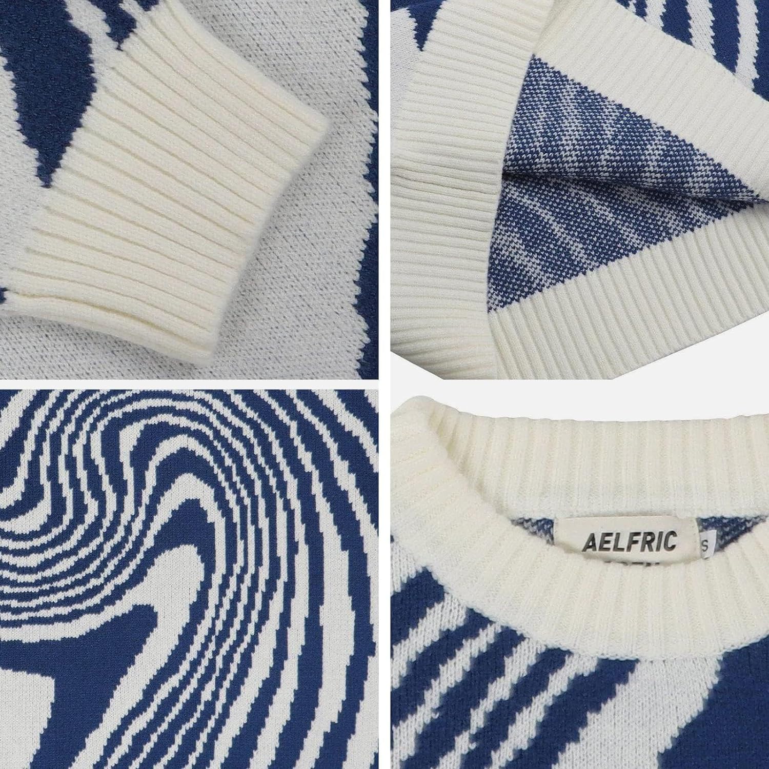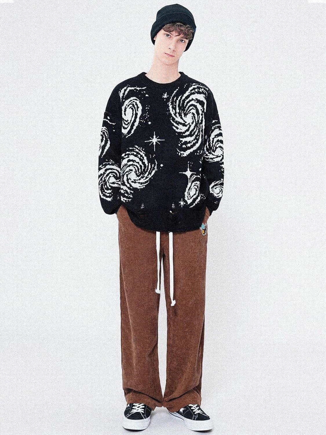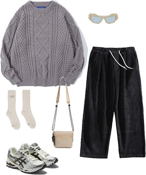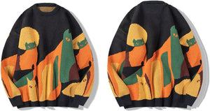 Aelfric Eden Mens Long Sleeve Van Gogh Printed Cable Knit Sweaters Casual Oversized Sweater Pullover