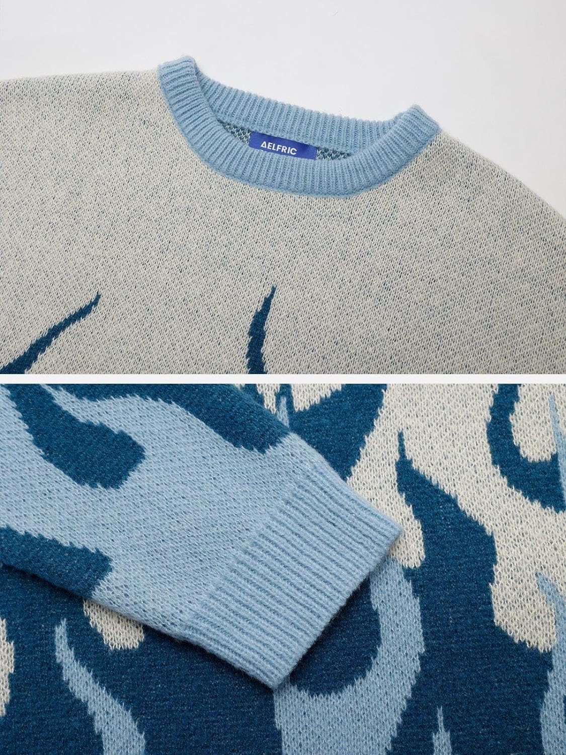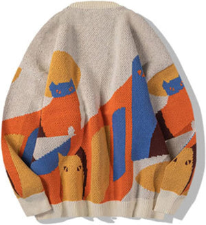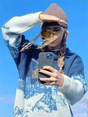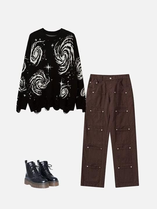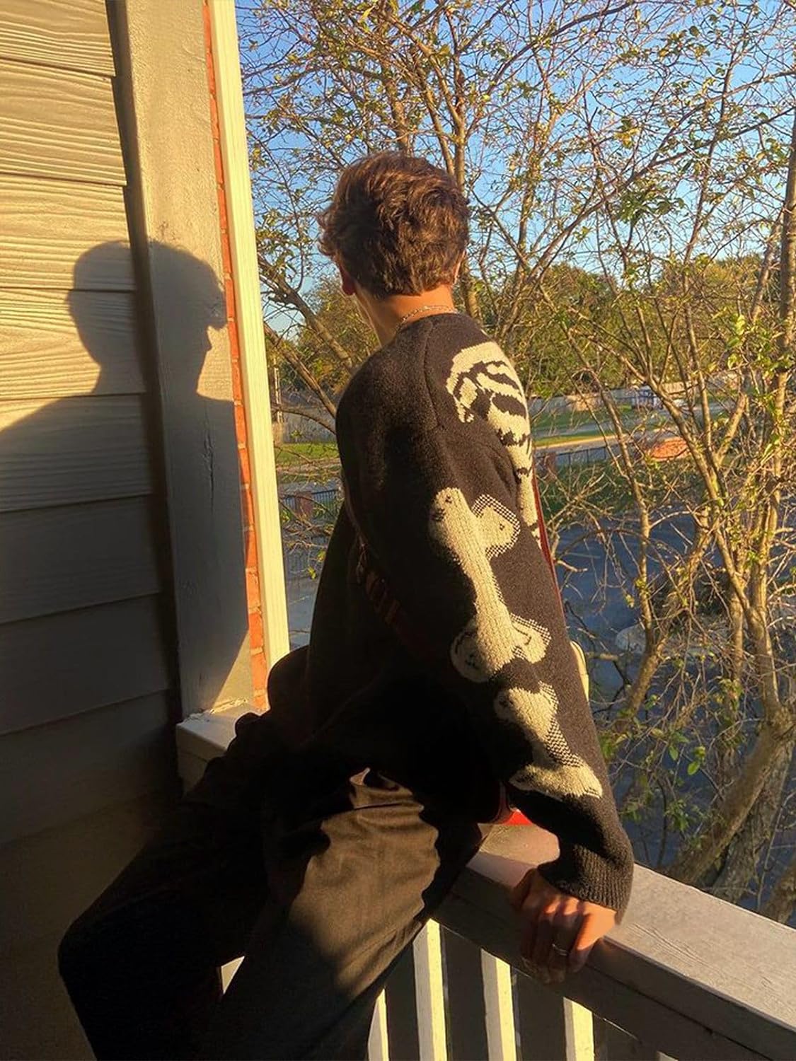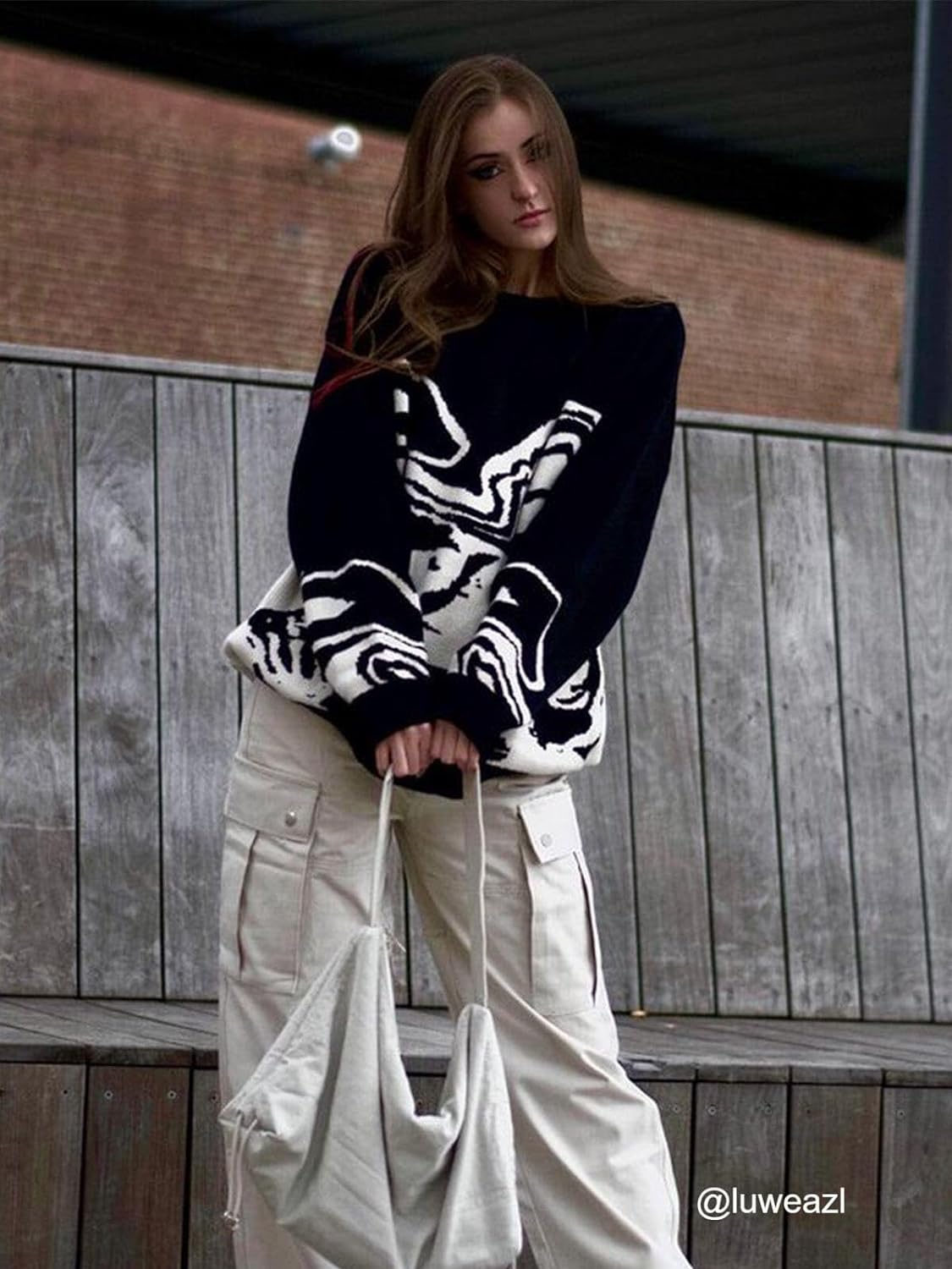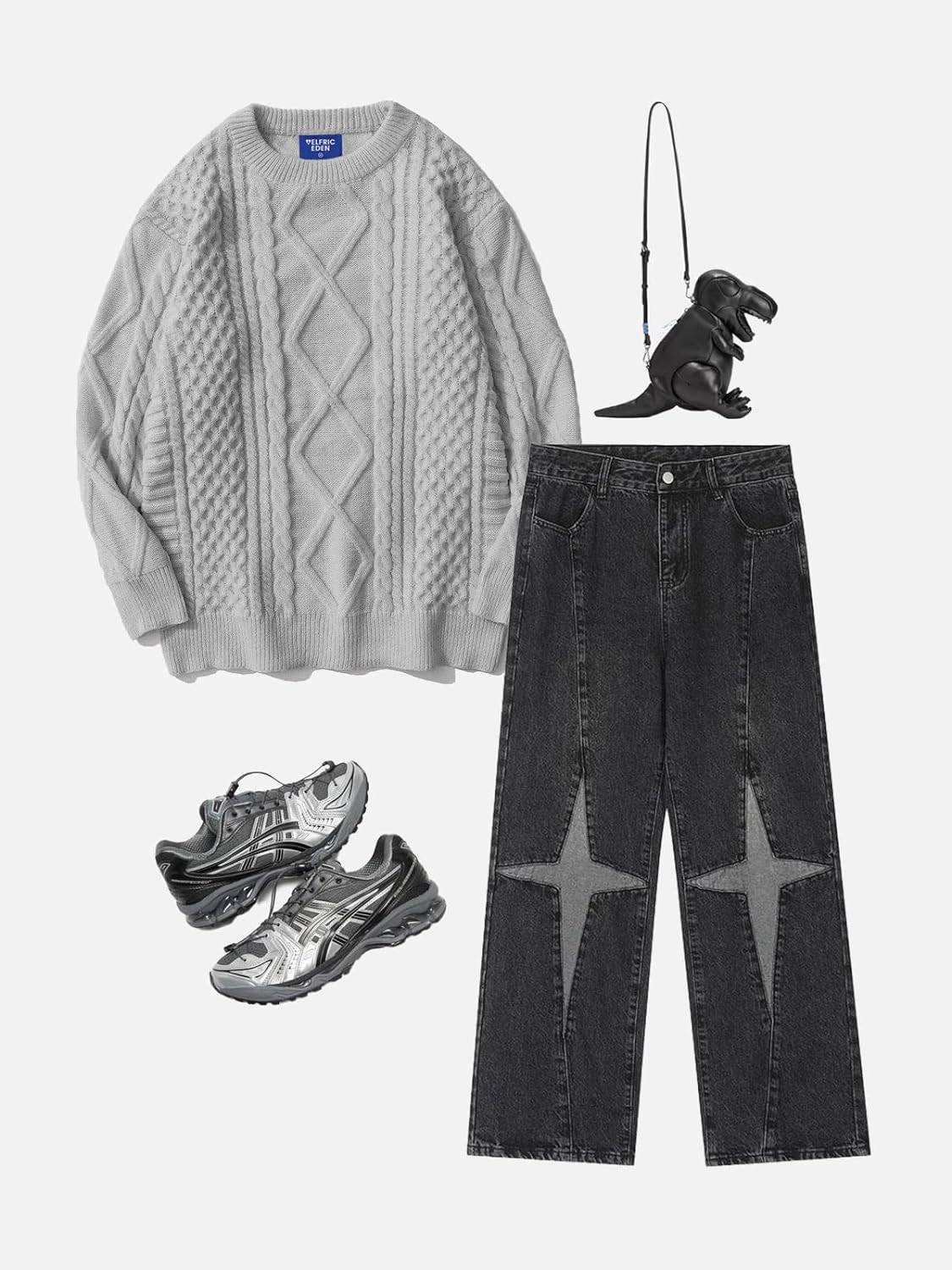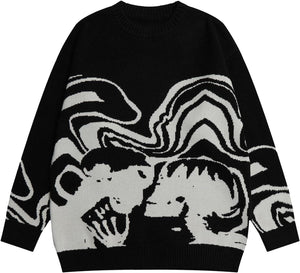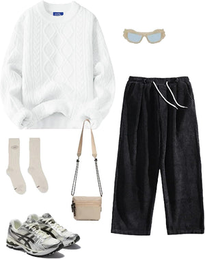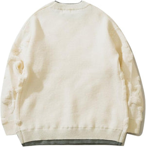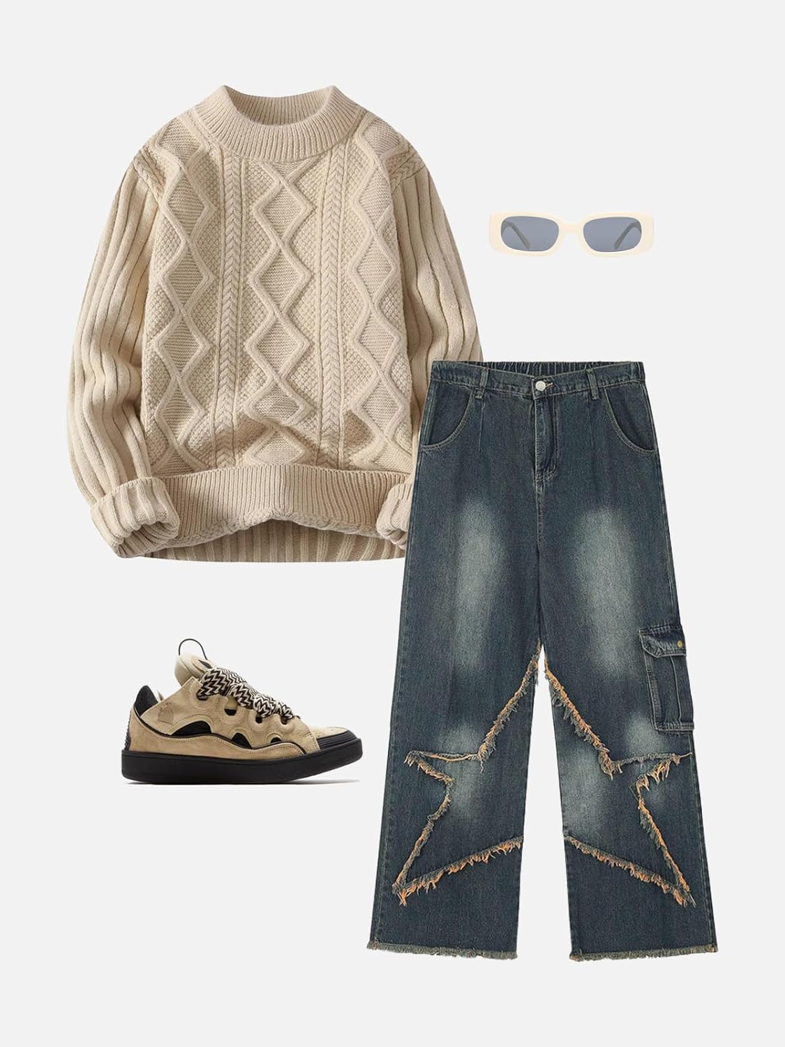 Aelfric Eden Mens Long Sleeve Van Gogh Printed Cable Knit Sweaters Casual Oversized Sweater Pullover
