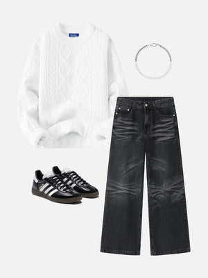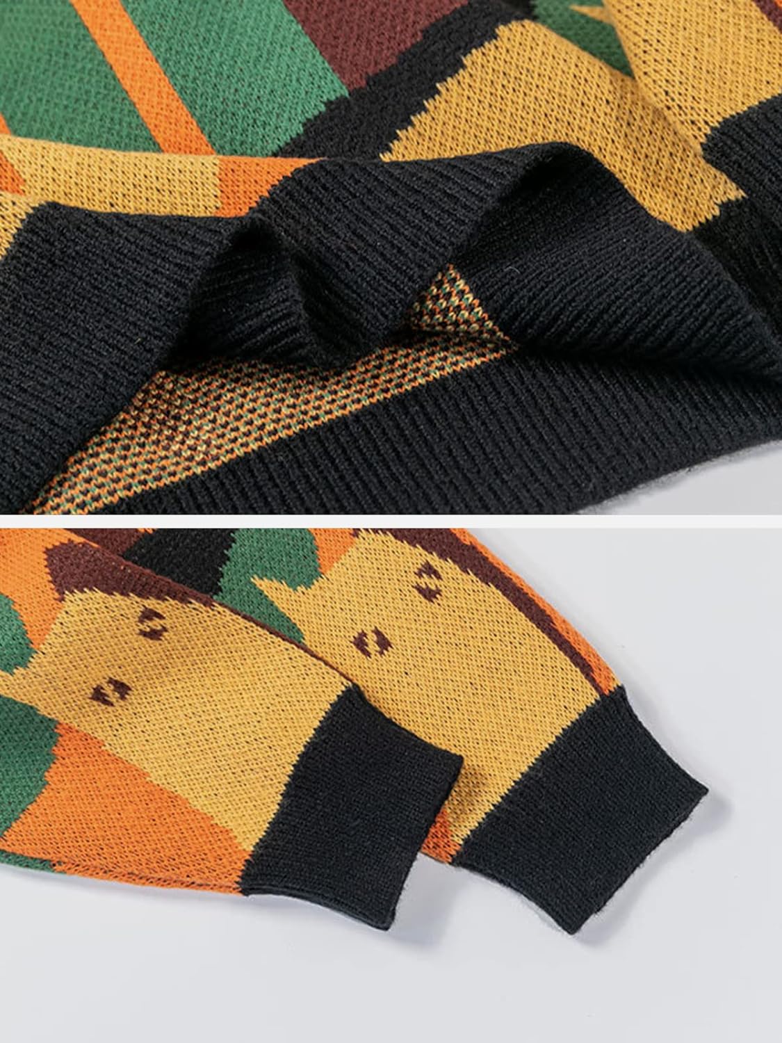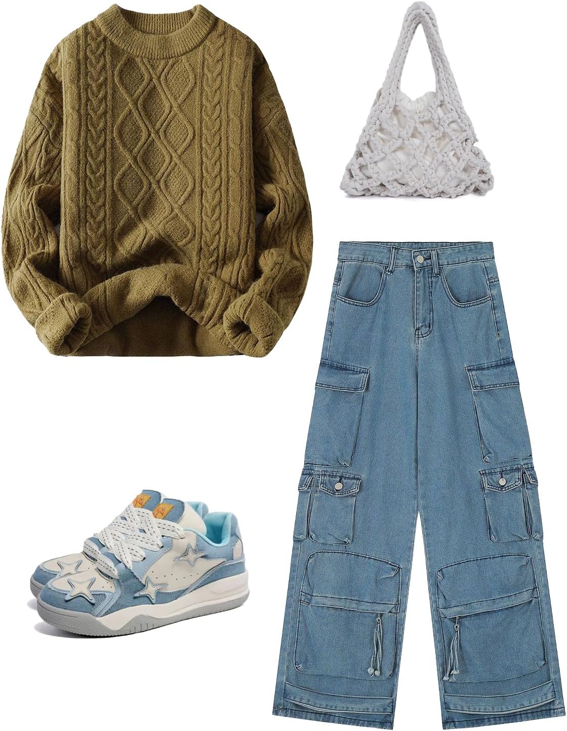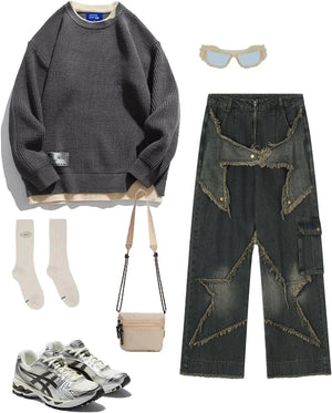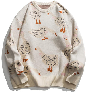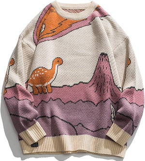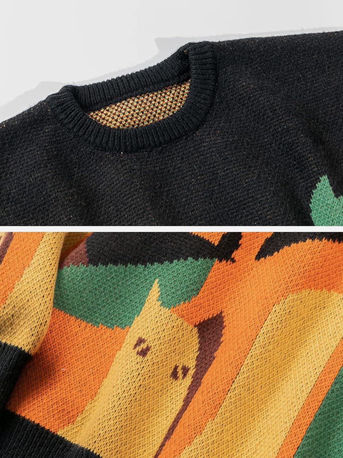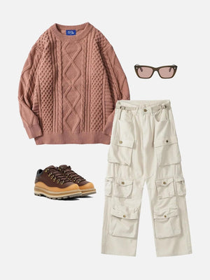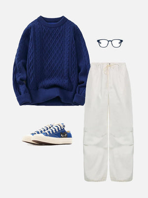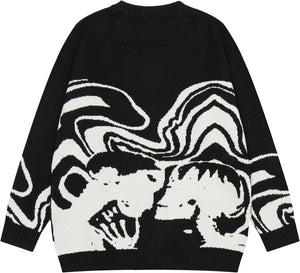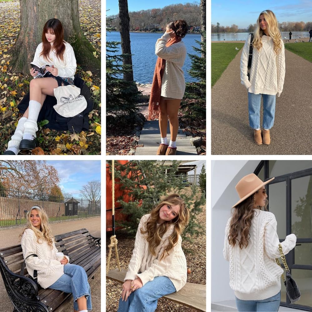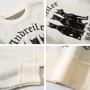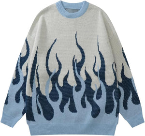 Aelfric Eden Mens Long Sleeve Van Gogh Printed Cable Knit Sweaters Casual Oversized Sweater Pullover