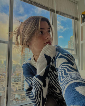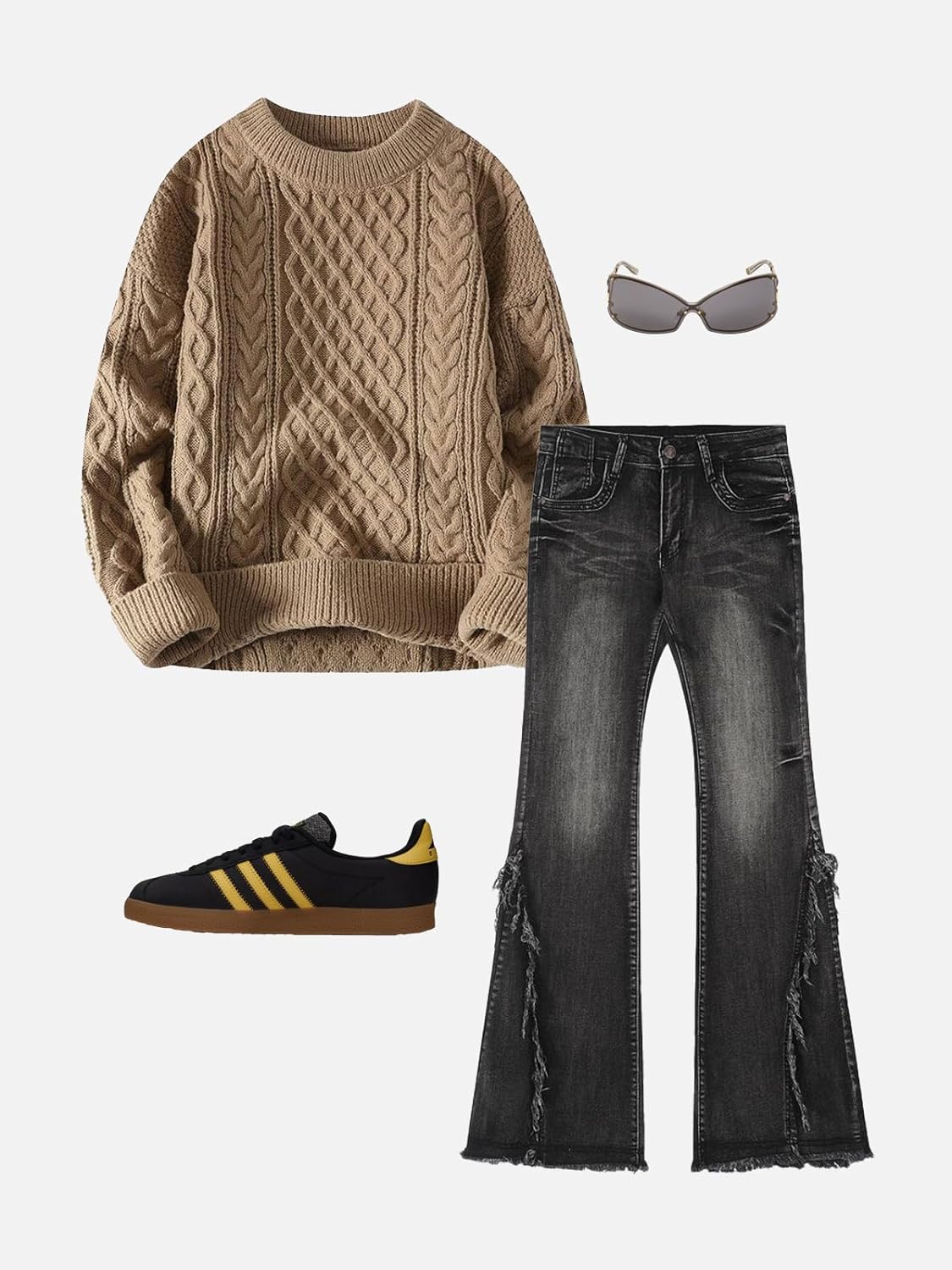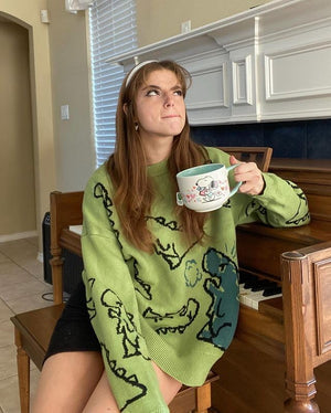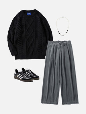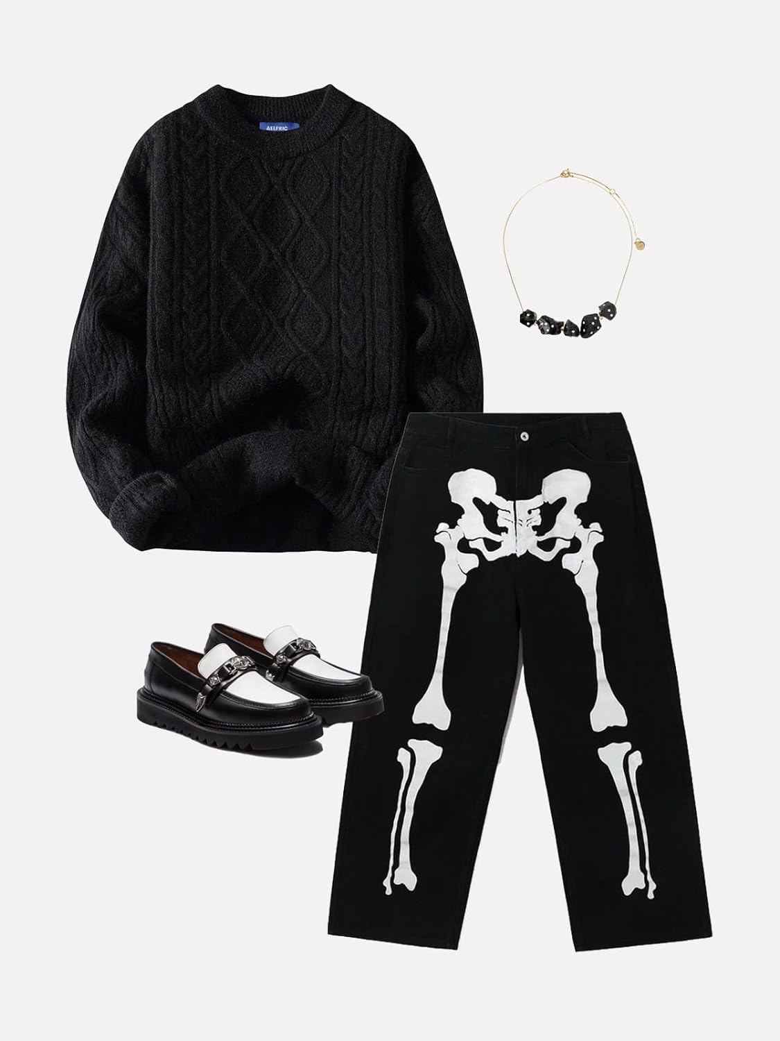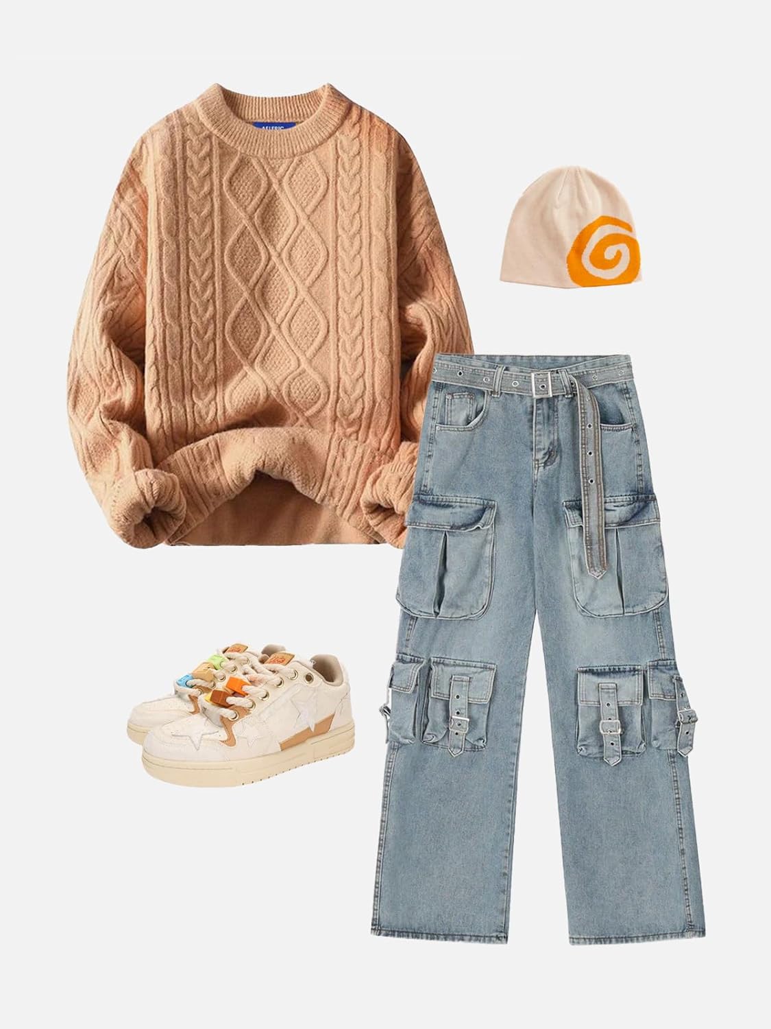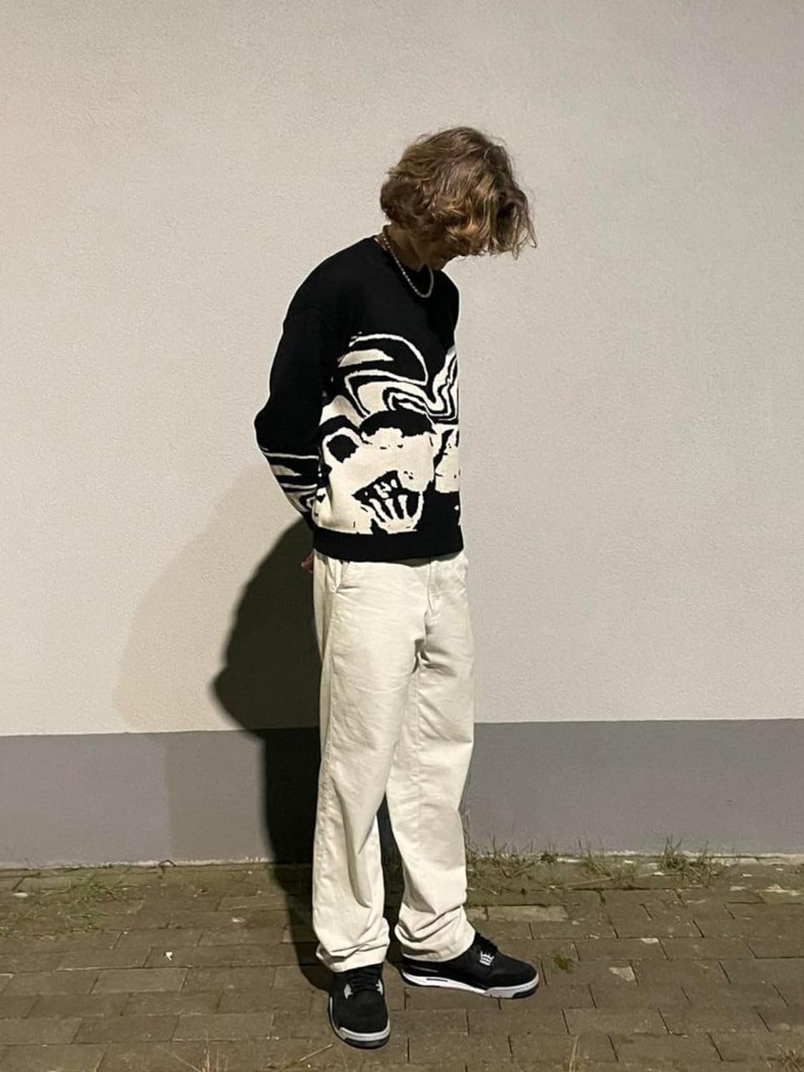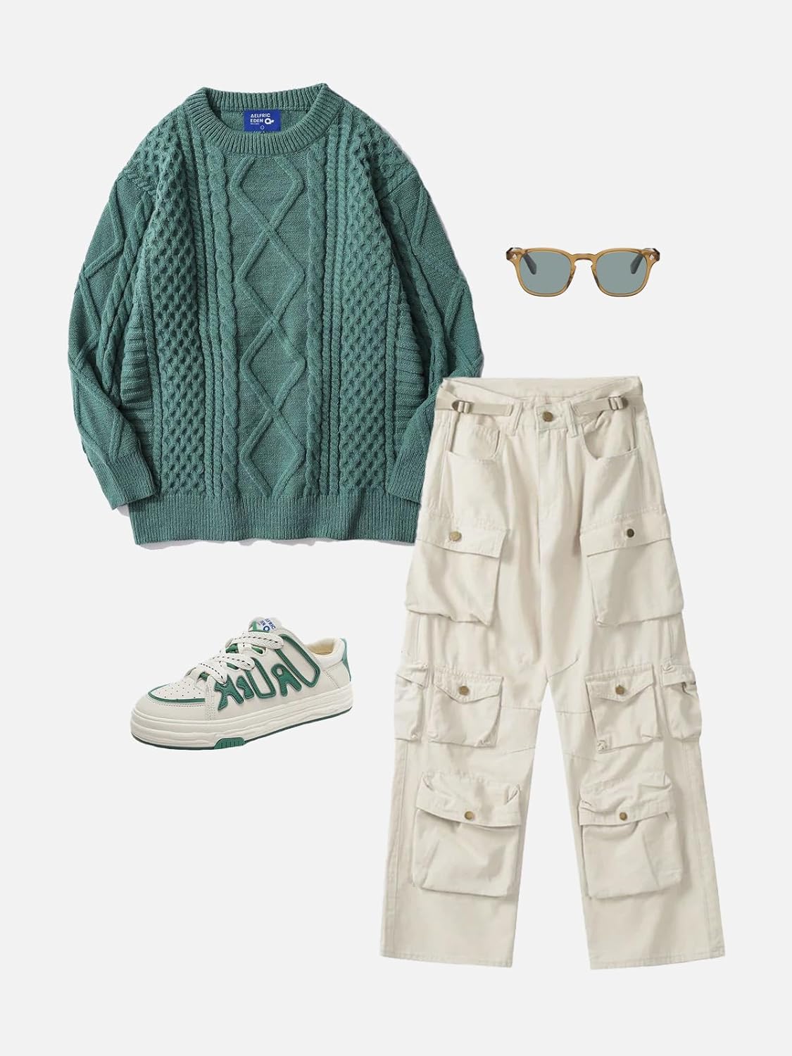 Aelfric Eden Mens Long Sleeve Van Gogh Printed Cable Knit Sweaters Casual Oversized Sweater Pullover