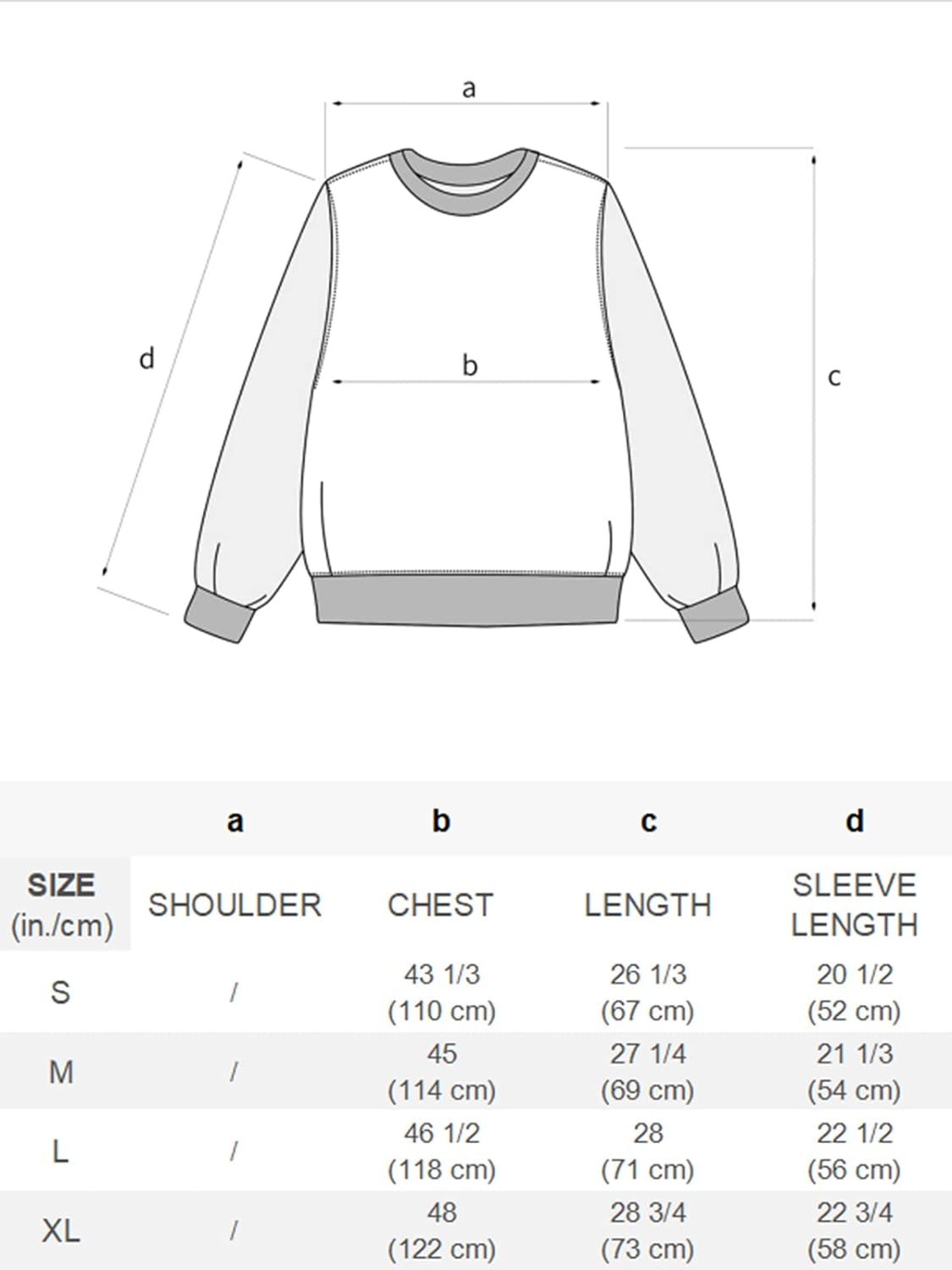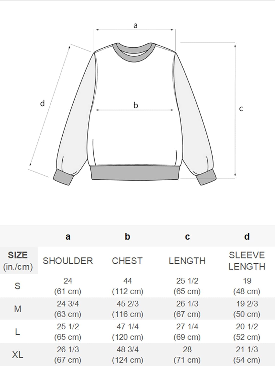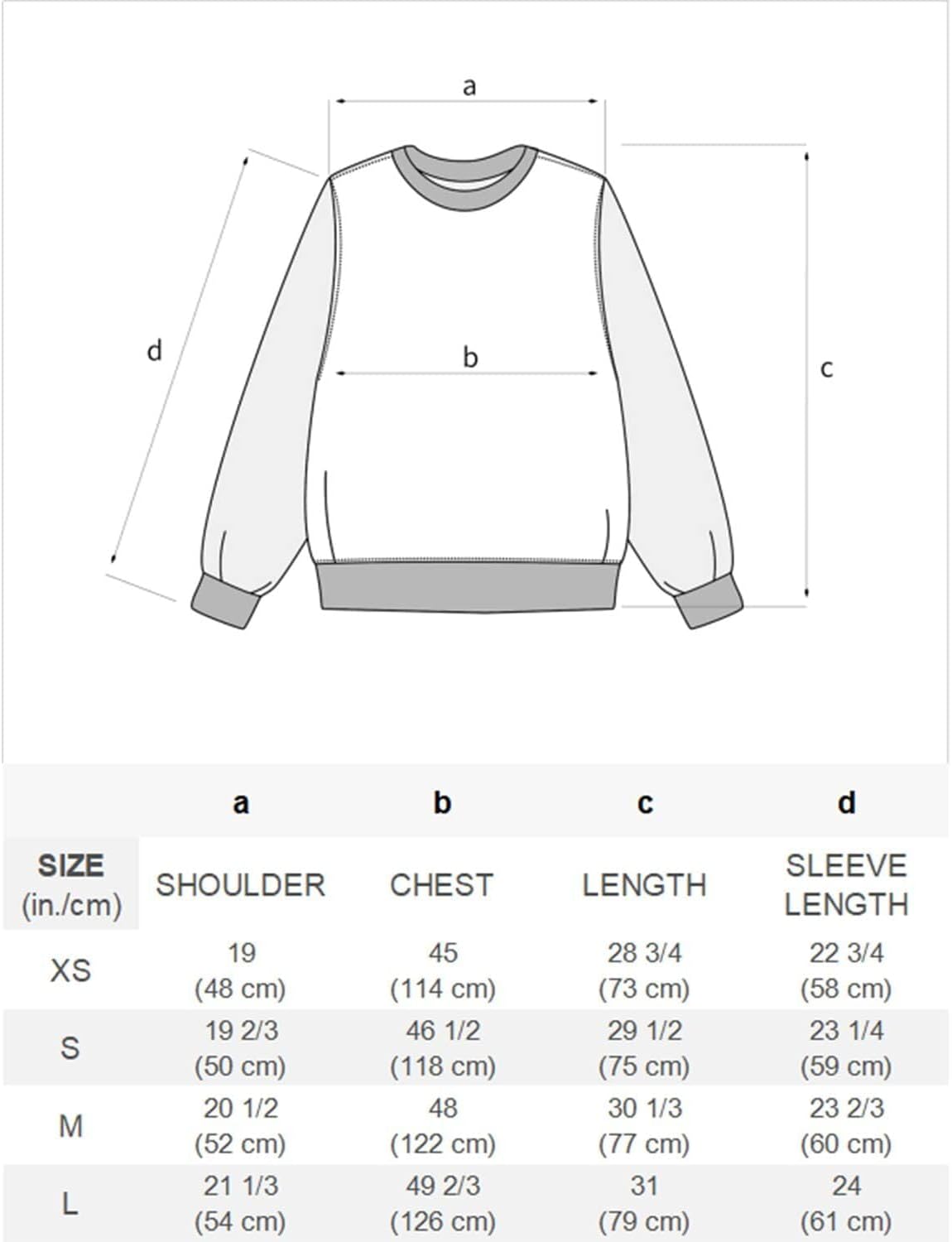 Size L: Bust: 120cm/47.2"---Sleeve: 50cm/19.7"---Length: 63cm/24.8"
