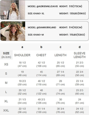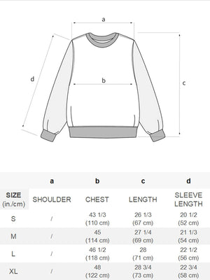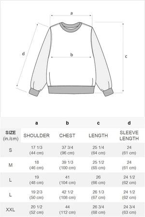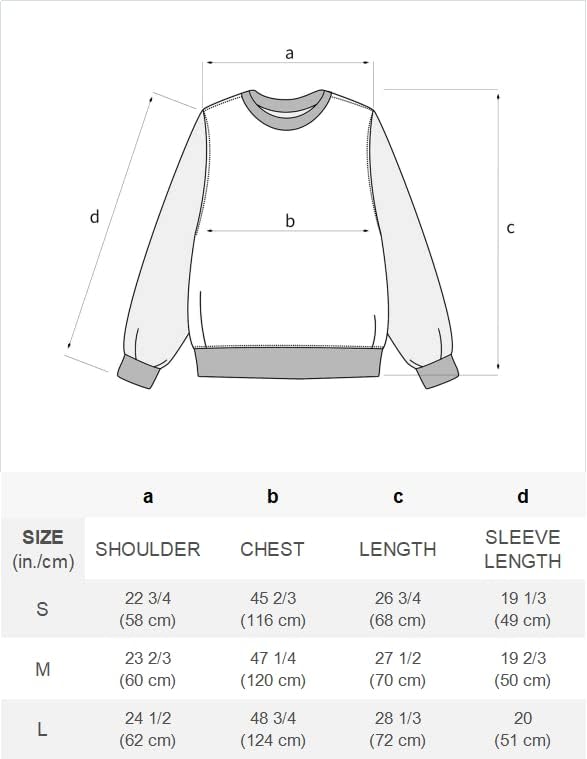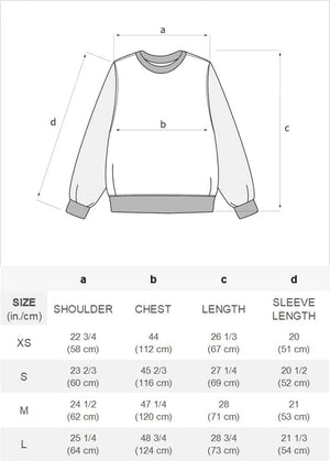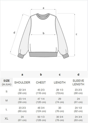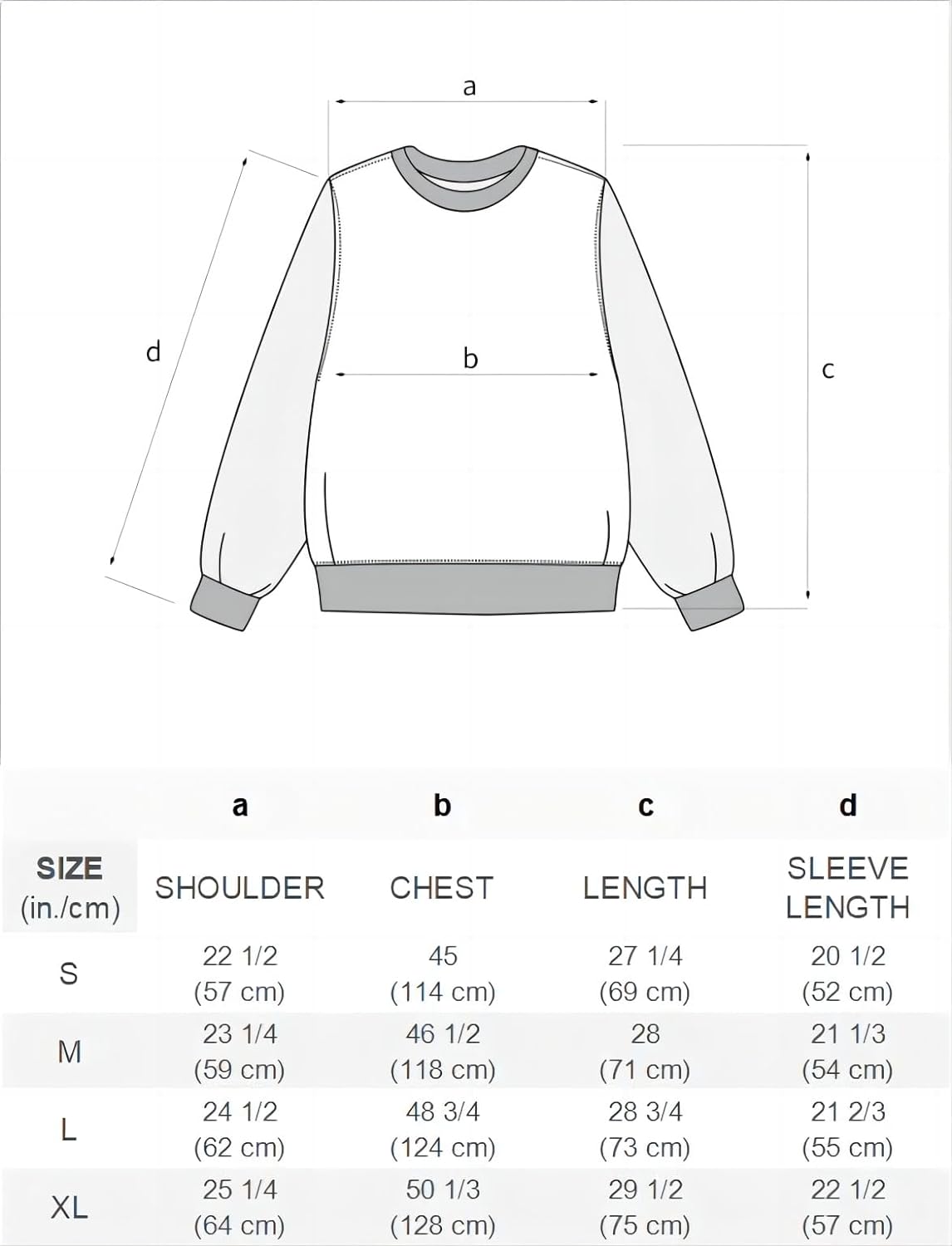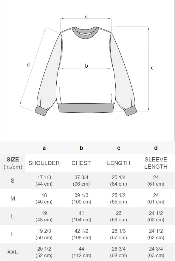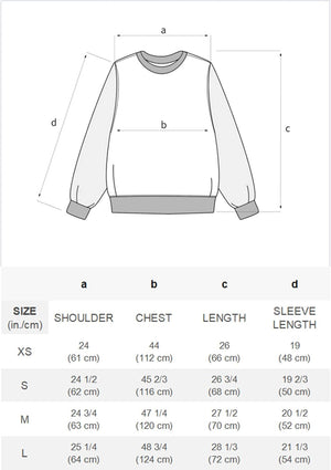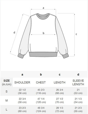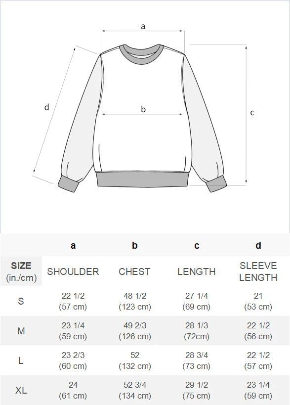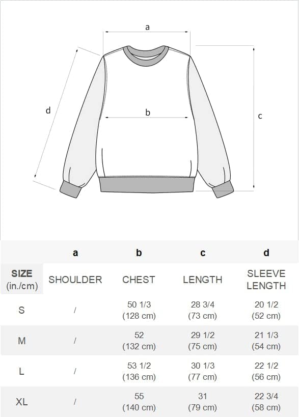 Size L: Bust: 120cm/47.2"---Sleeve: 50cm/19.7"---Length: 63cm/24.8"