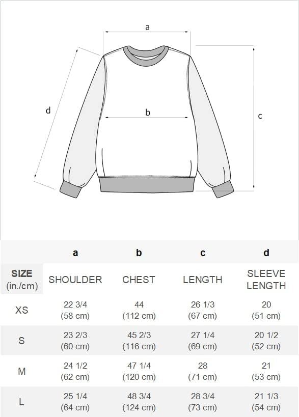 Size S: Bust: 112cm/44.1" Sleeve:48 cm Length: 61 cm.