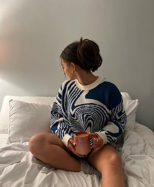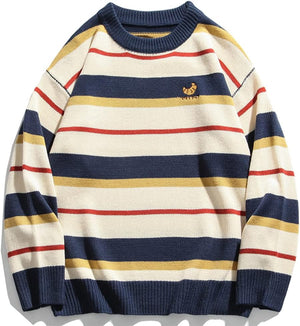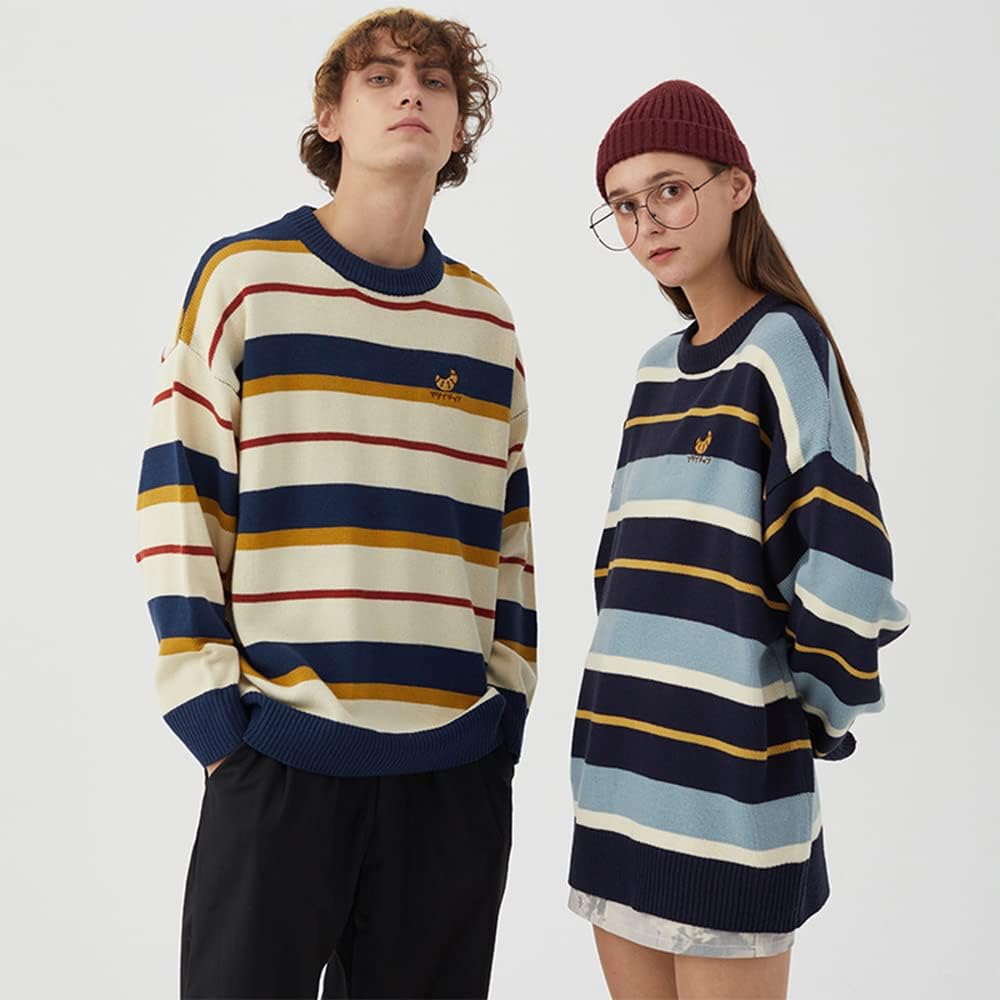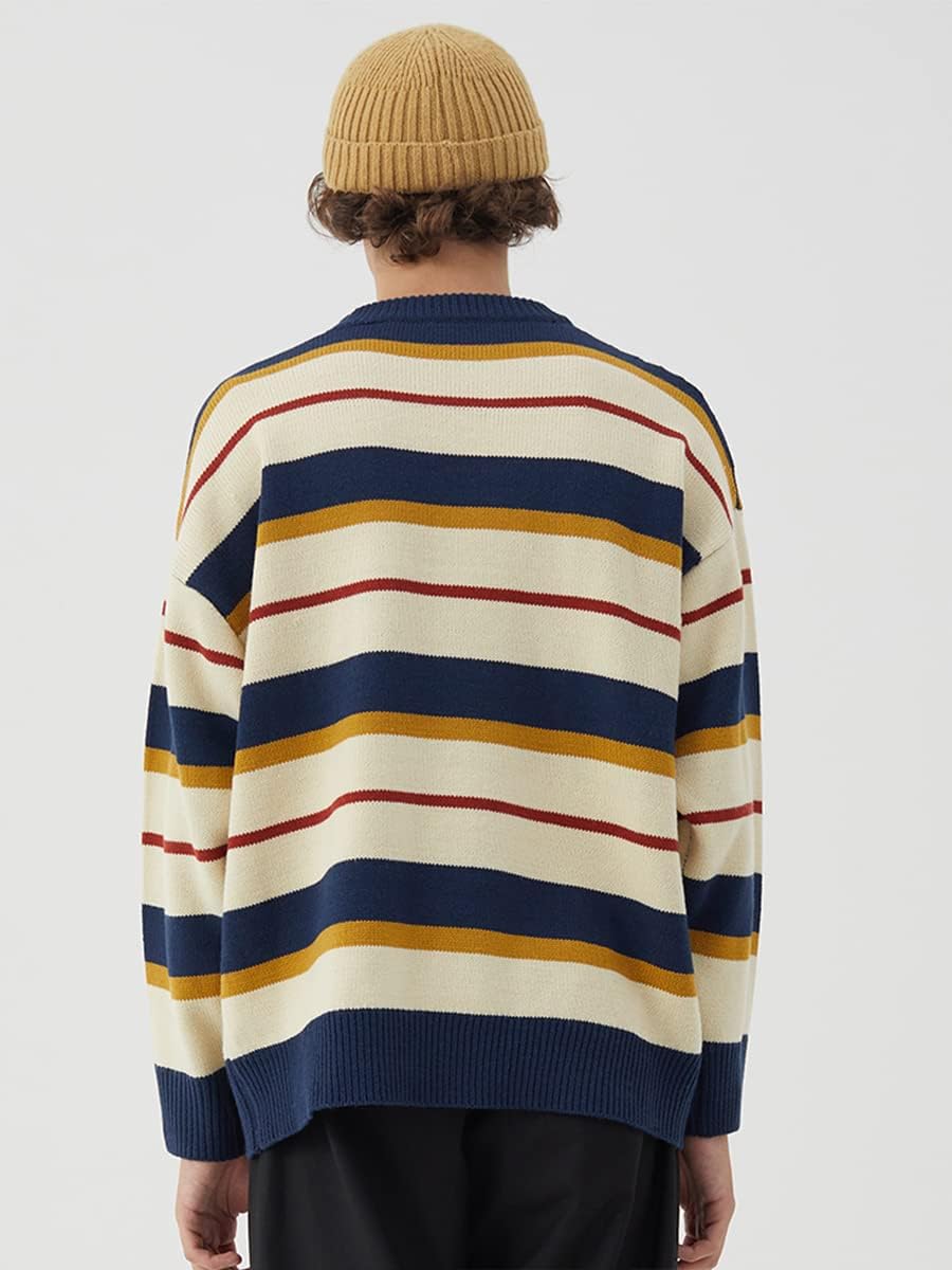 Round neck, long sleeve, loose fit, color block, stripes, super soft, knitted fabric, comfortable to wear.