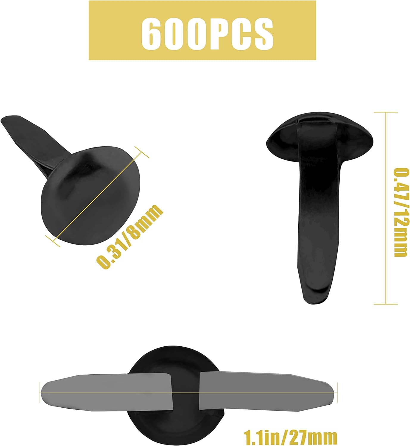 - [Package Content]: You will receive 600pcs black paper fasteners,12mm/ 0.47inch in length, 8mm/0.3inch of round head in diameter. Comes with enough quantity for use.