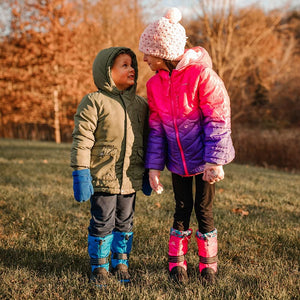 A quick cinch and your little one is out the door in this basic weatherproof snow boot from ALEADER. The Rocket features a bungee cord snow collar and a hook-and-loop band over the foot for an easy adjustable fit. A thermal insole, removable moisture-wicking liner, and waterproof bottom with rubber outsole keep kids warm, dry, and comfortable as they tramp through the snow and slush. these boots will keep your child warm and dry all the way down to -25 degrees.