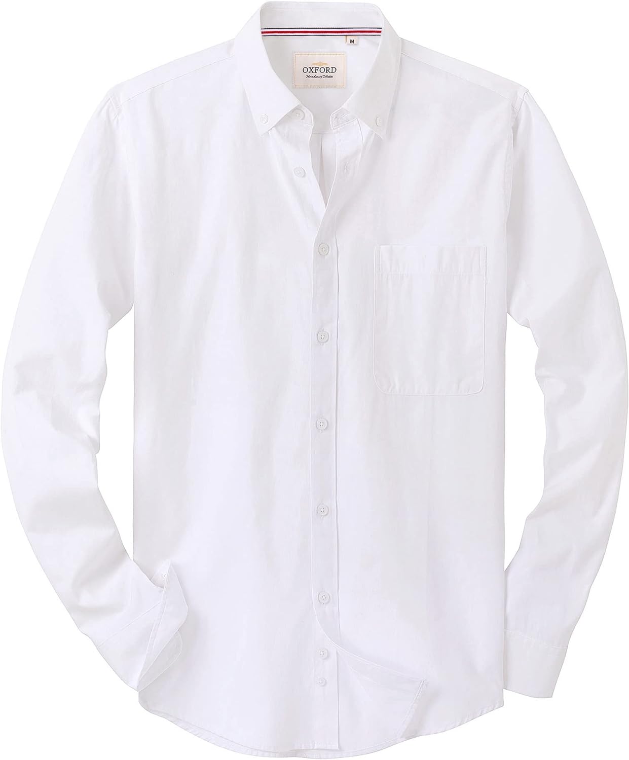 Alimens & Gentle Men's Solid Oxford Shirt Regular Fit Long Sleeve Button Down Shirts with Pocket White