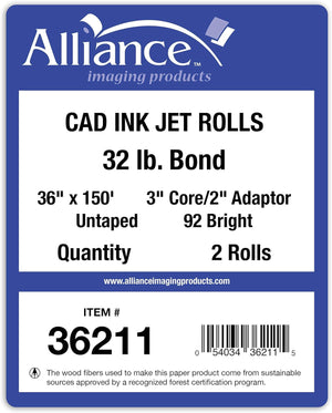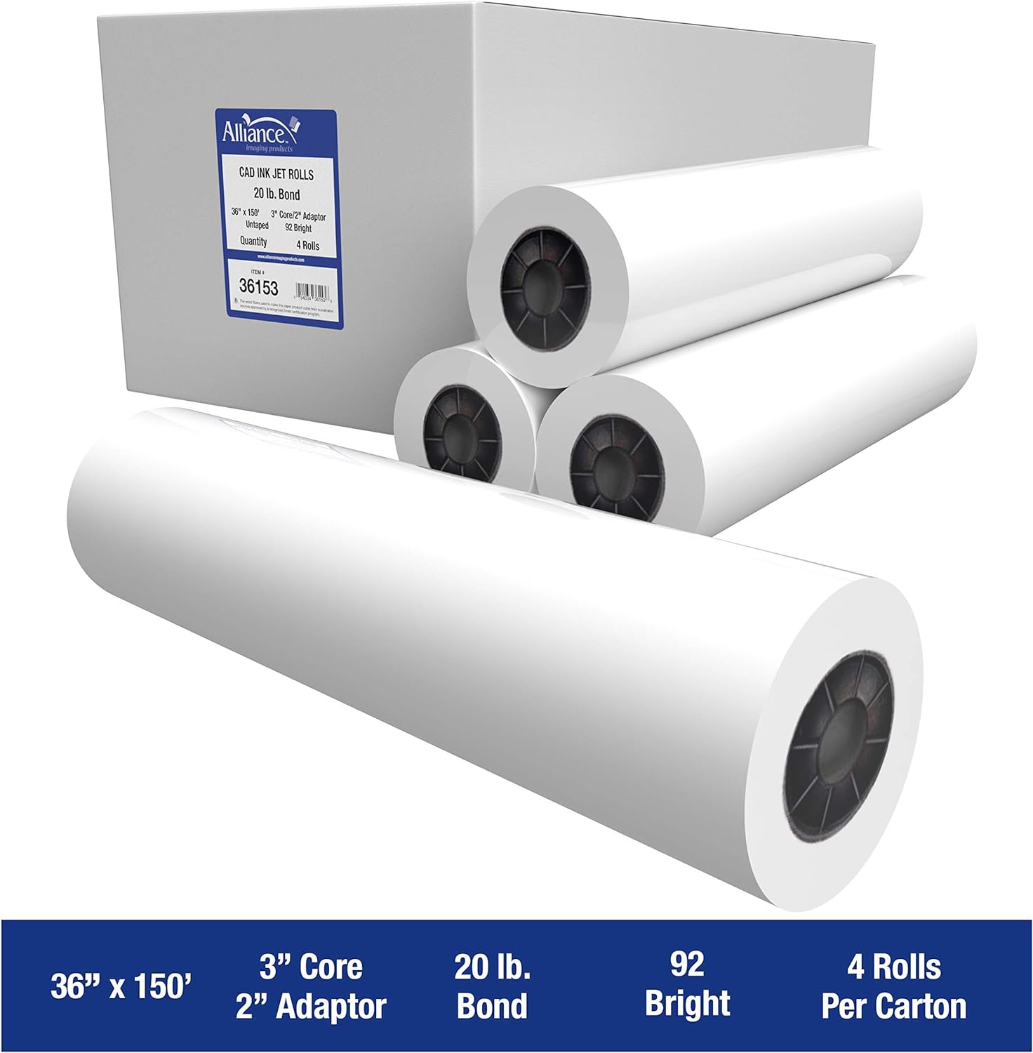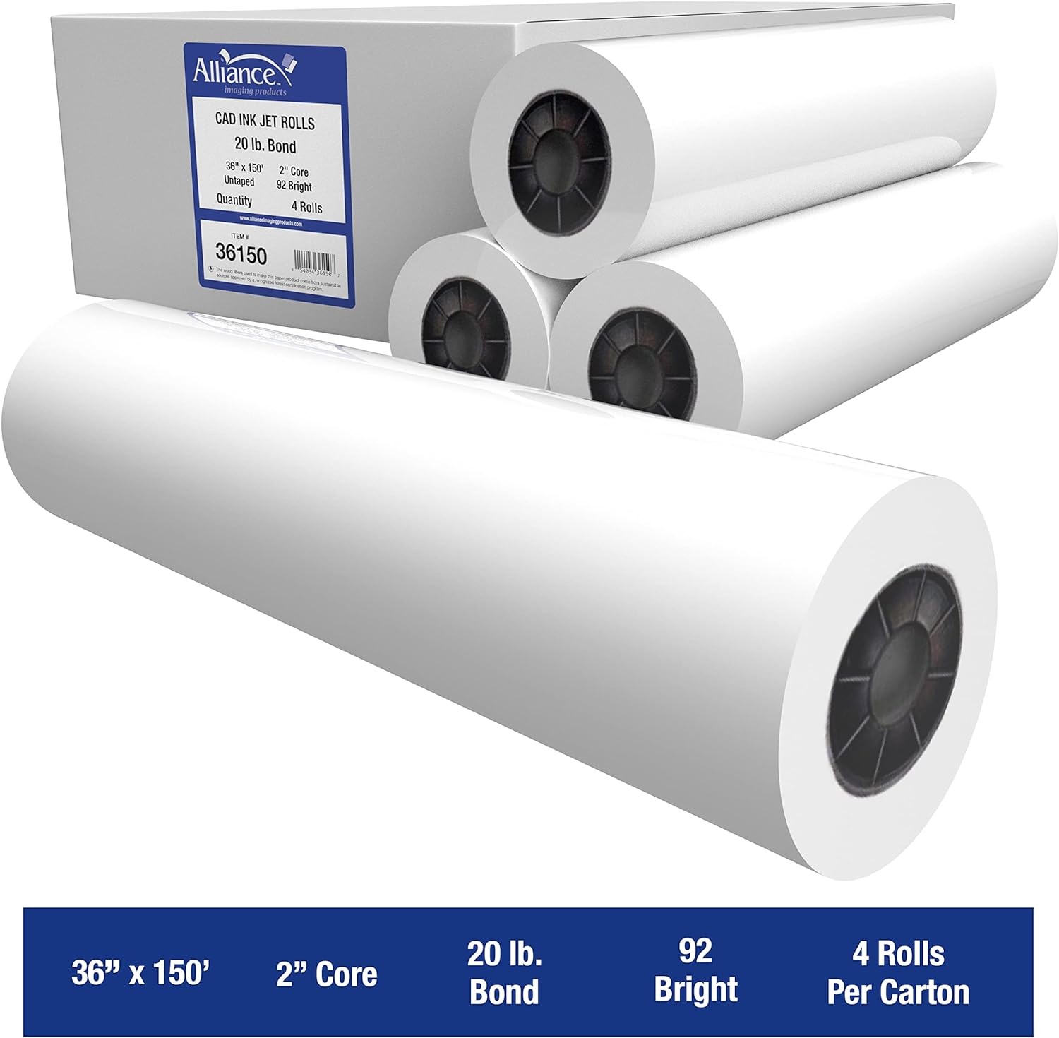 Alliance Wide Format Paper CAD Bond Rolls (20lb | 4 Rolls, 36 In x 150 Ft | 2" Core)