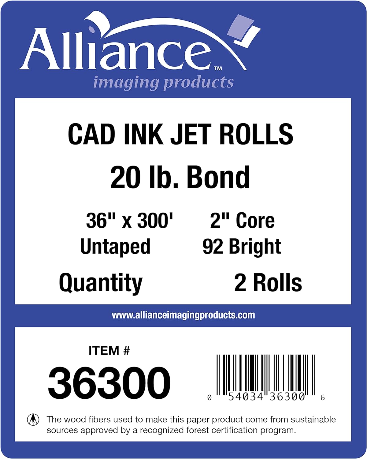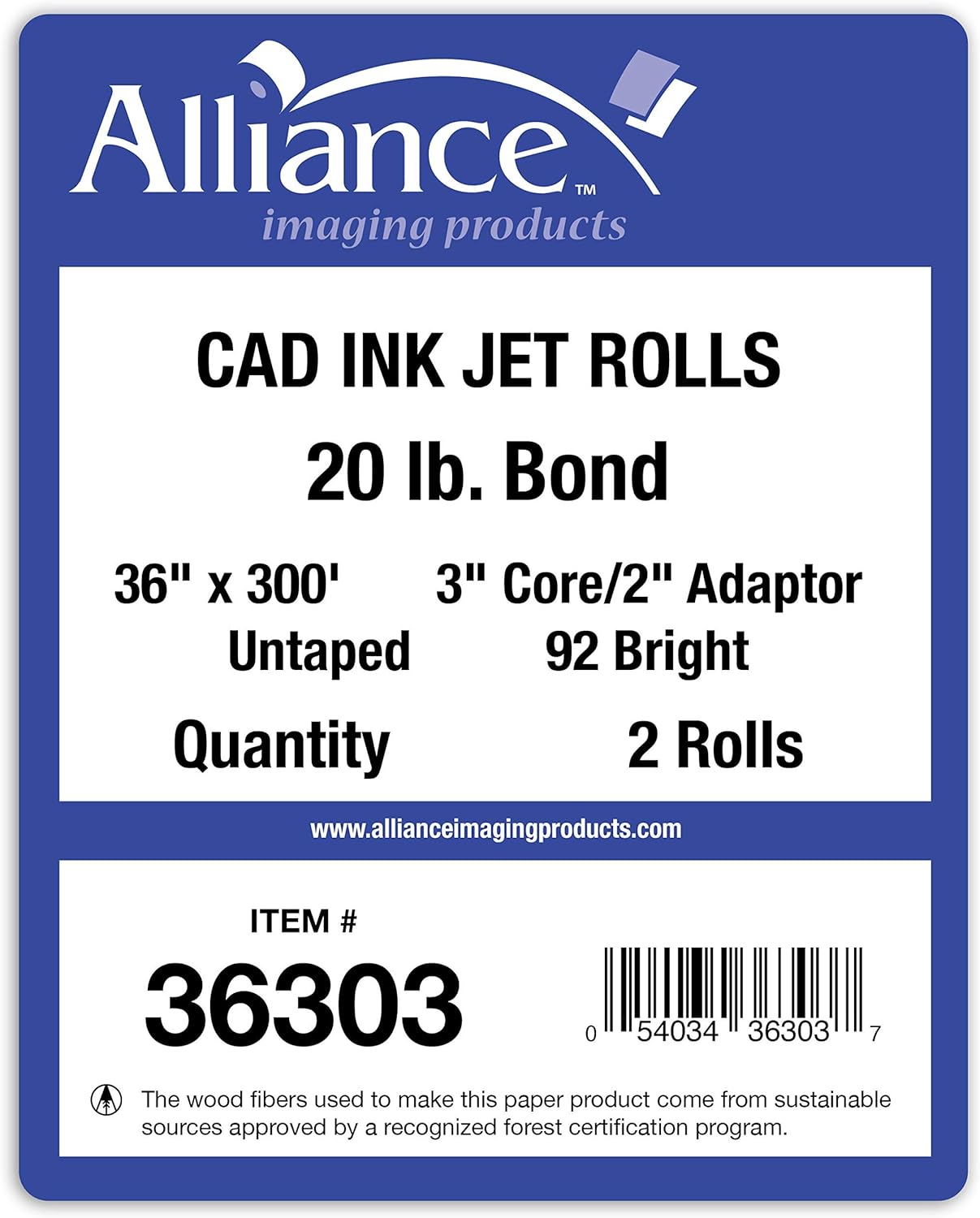 - OPTIMAL FOR INKJET PRINTERS: Works on all inkjet plotter printers so you will not run into problems; Alliance CAD Bond rolls are optimized for inkjet printers