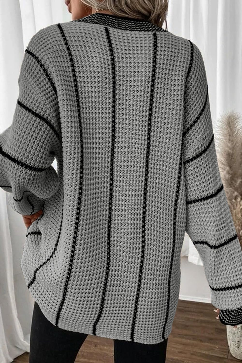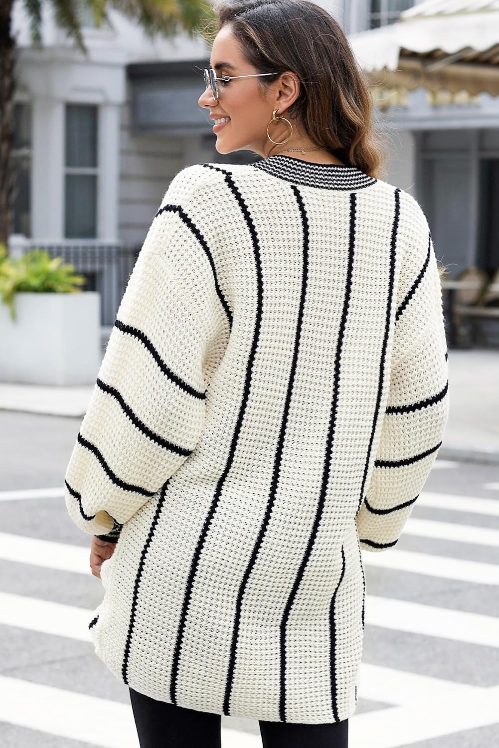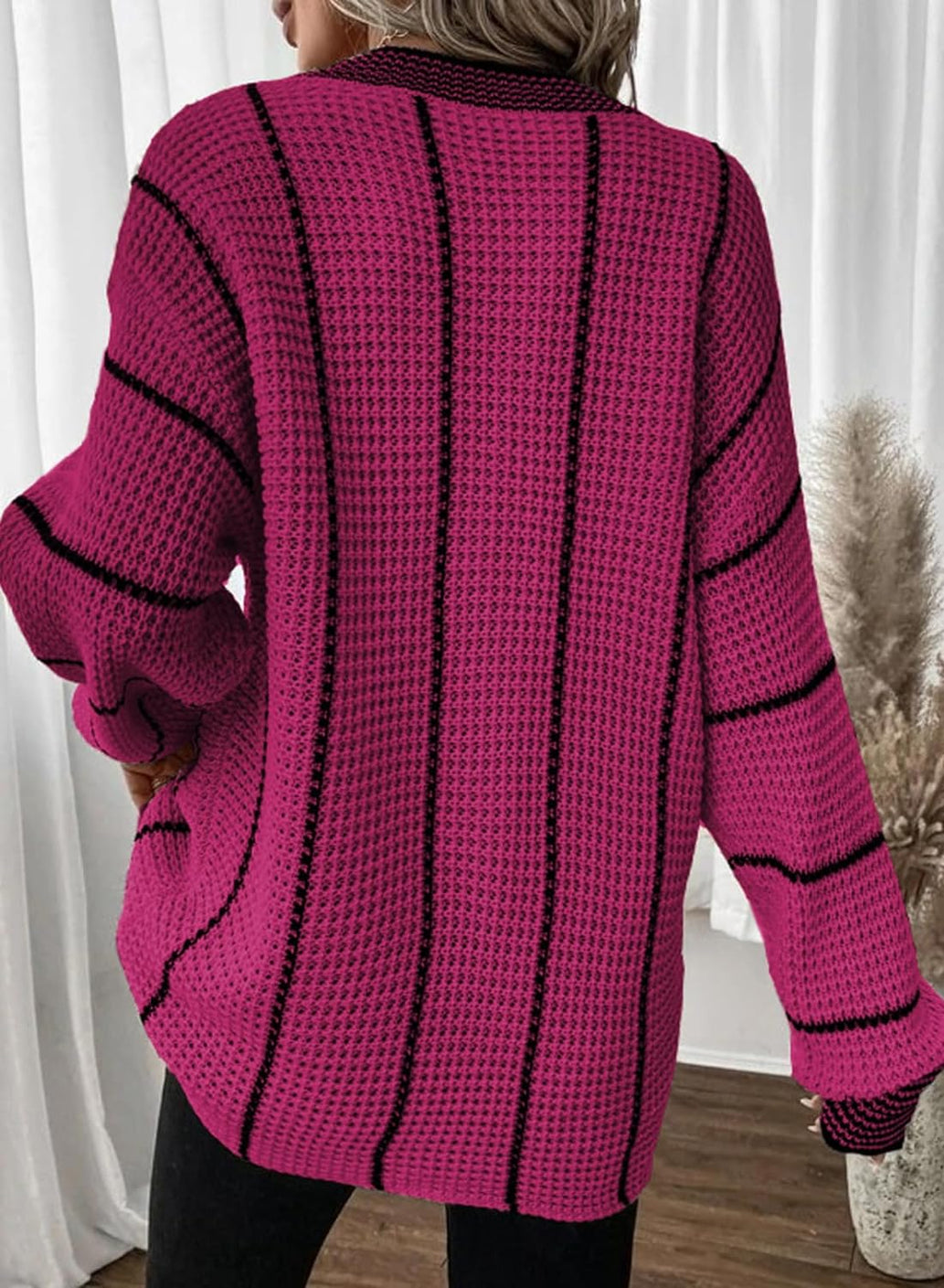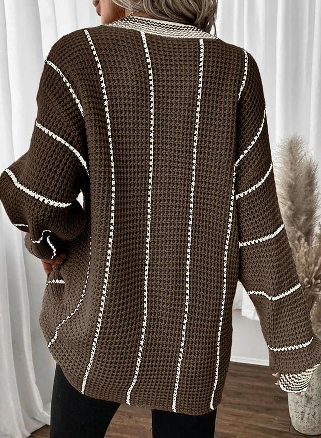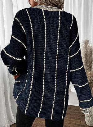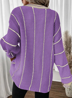 AlvaQ Women Winter Long Sleeve V Neck Color Block Striped Sweater Casual Oversized Pullover Knitted Jumper Tops