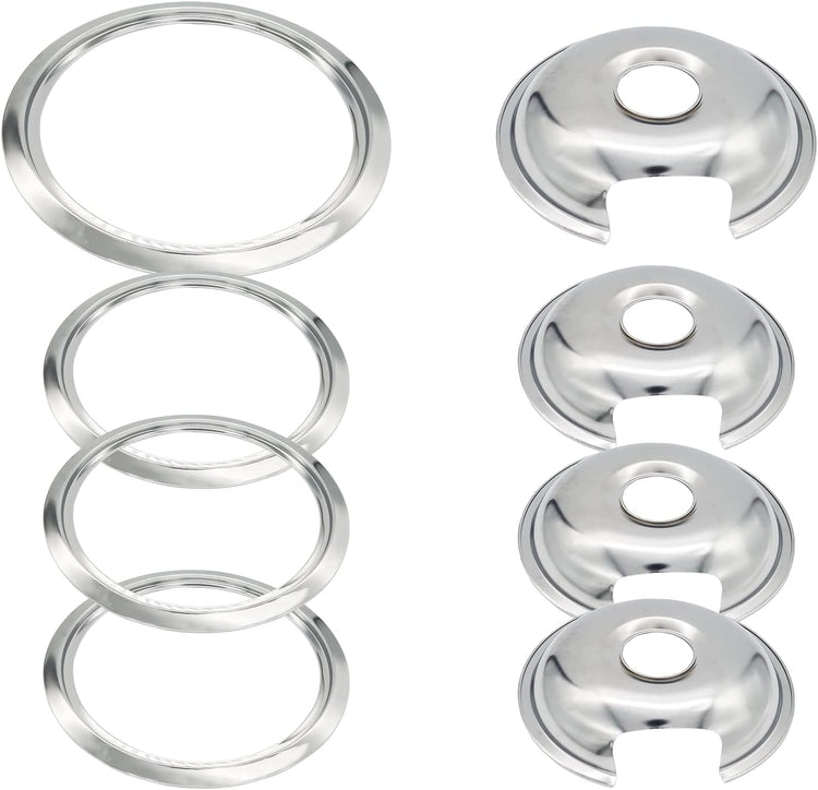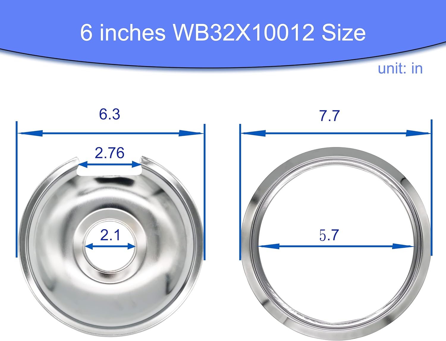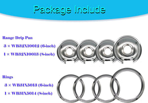 ✅Package Include:3 × WB32X10012 (6-inch) Burner Pans, 1 × WB32X10013 (8-inch) Range Drip Pan,3 × WB31X5013 (6-inch) rings,1 × WB31X5014 (8-inch) ring