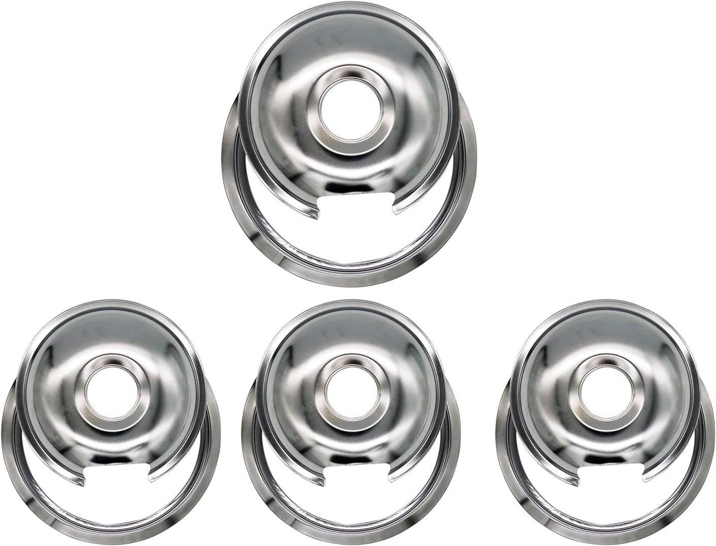 Amazinpure Electric Stove Chrome Drip Pans 1 Large 8'' WB32X10013 & 3 Small 6'' WB32X10012 Gas Stove Burner Drip Pans and Rings for GE Hotpoint & Kenmore