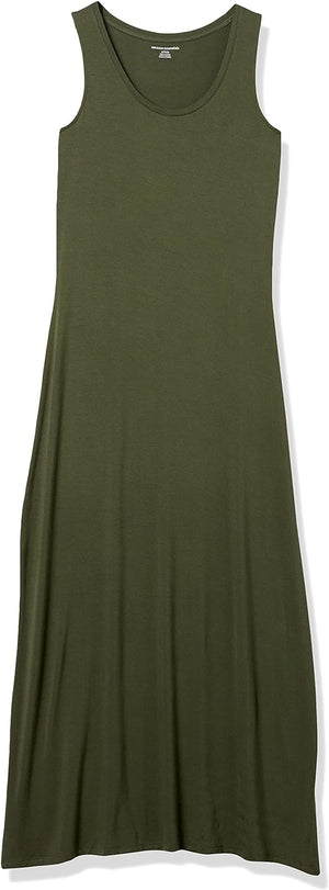 Amazon Essentials Women's Tank Maxi Dress, Dark Olive, Medium