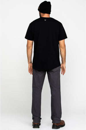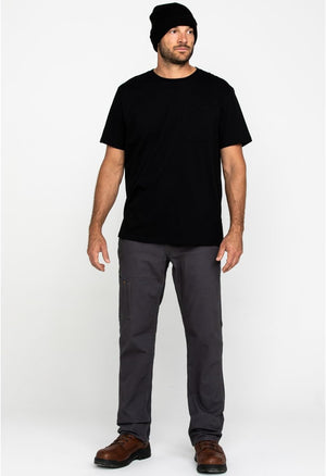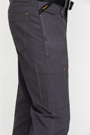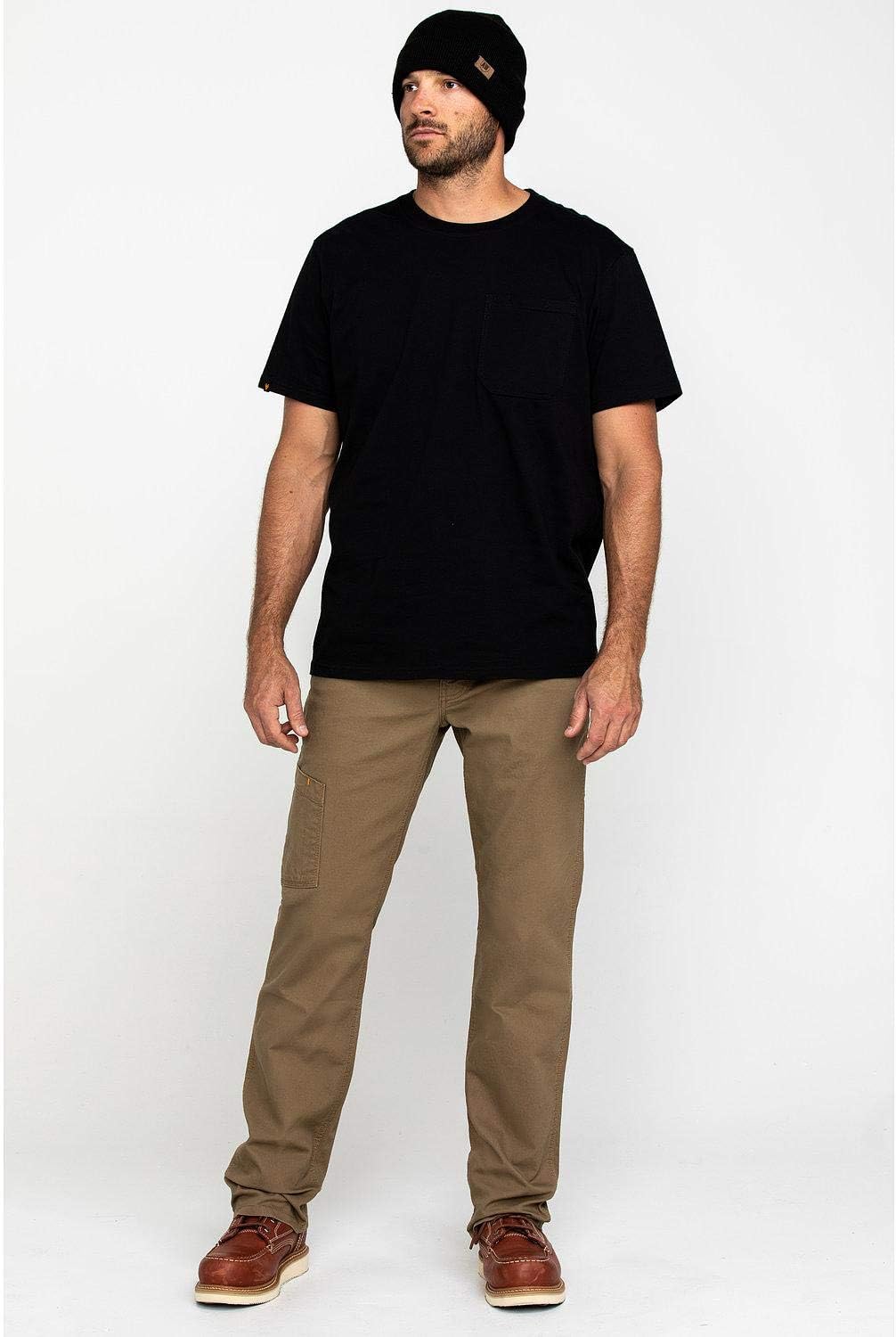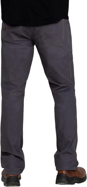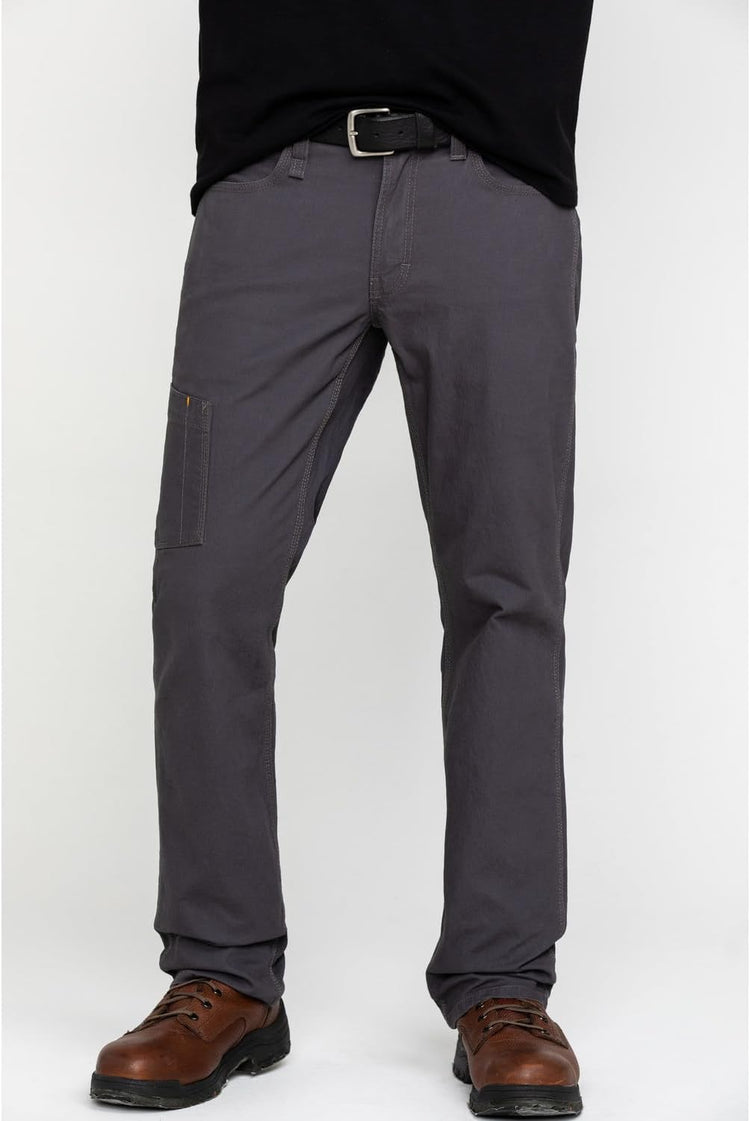 Rebar M4 Low Rise DuraStretch Made Tough Stackable Straight Leg Pant Rebarâ„ Made Tough DuraStretch Work Pants deliver strength minus the stiffness or bulk. Built-in stretch provides exceptional comfort and mobility. Our straight leg style features triple-needle stitching for added durability. 9 oz DuraStretch canvas Utility pocket and pen slot Carabiner loop Triple needle stitching at stress points 99% cotton, 1% spandex.
