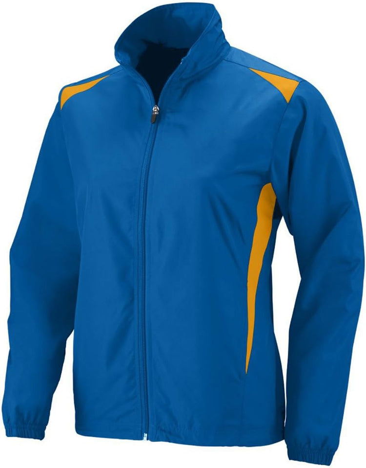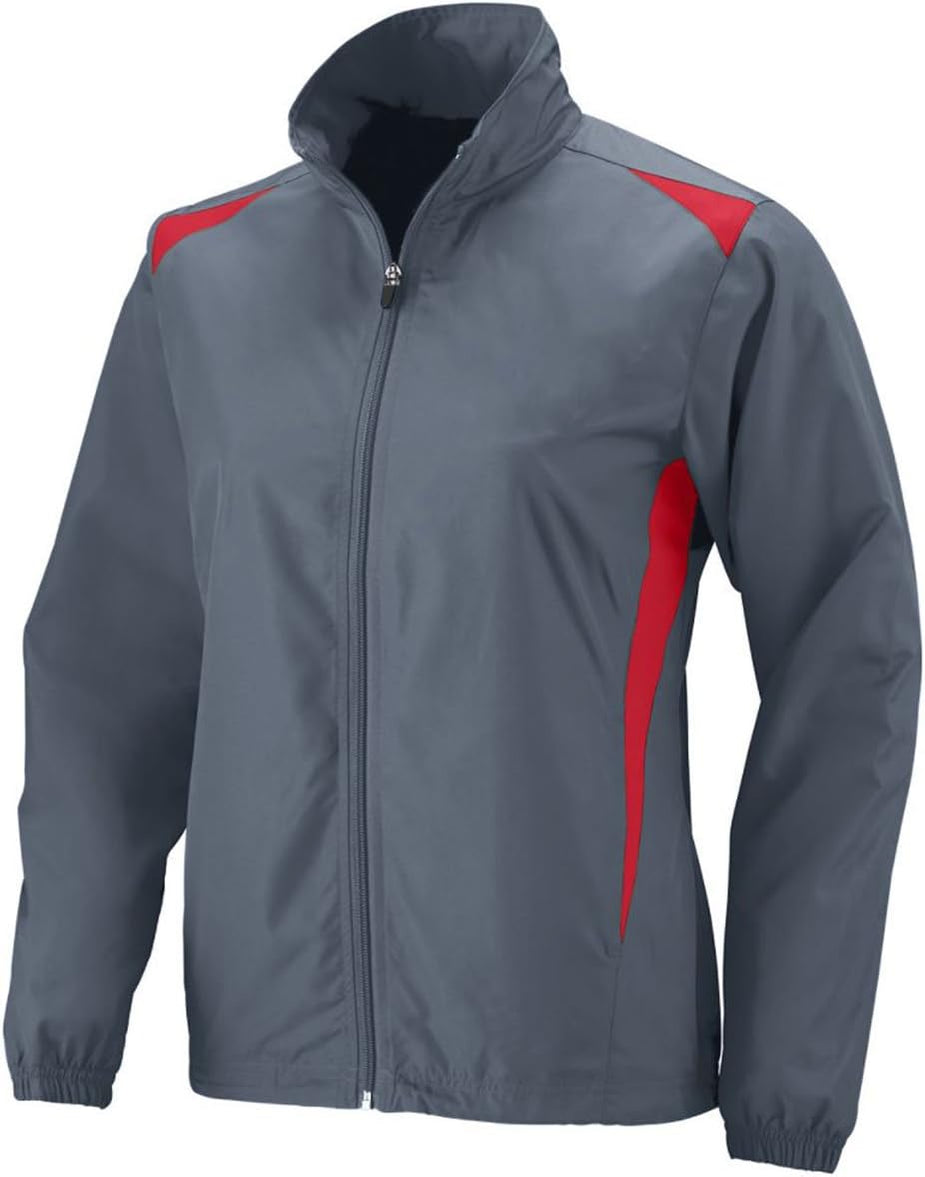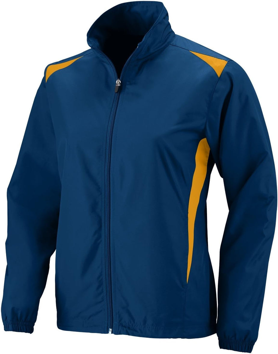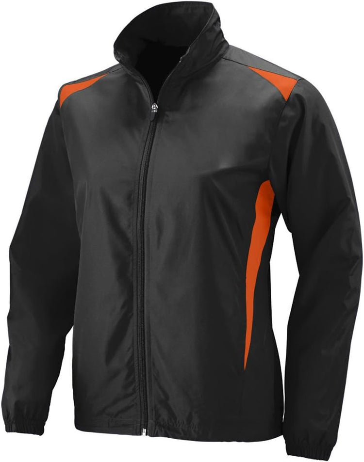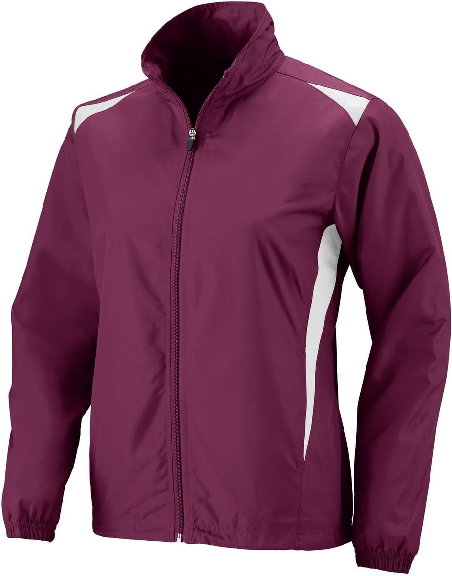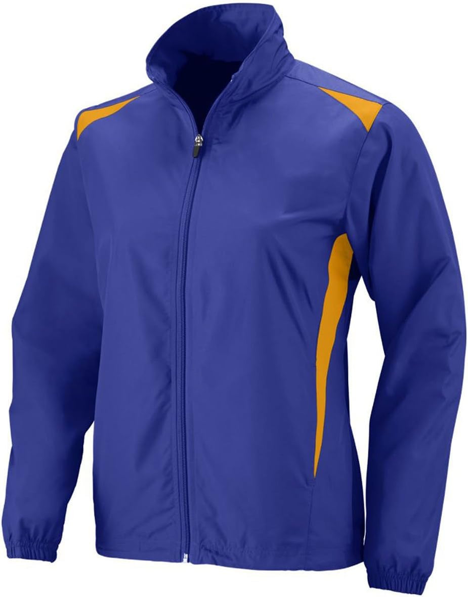 Outer shell of 100% polyester diamond tech * Lined with 100% polyestertaffeta * Ladies fit * Center front zipper * Contrast color shoulderand front inserts * Set-in sleeves * Front pockets * Elastic cuffs * Open bottom * Water-resistant * Machine-washable * Individually polybagged