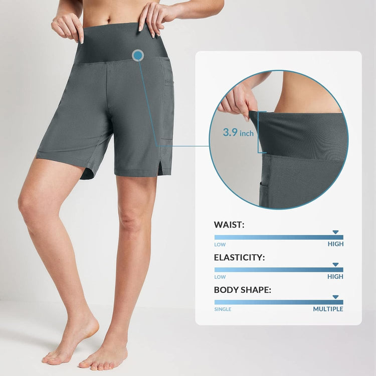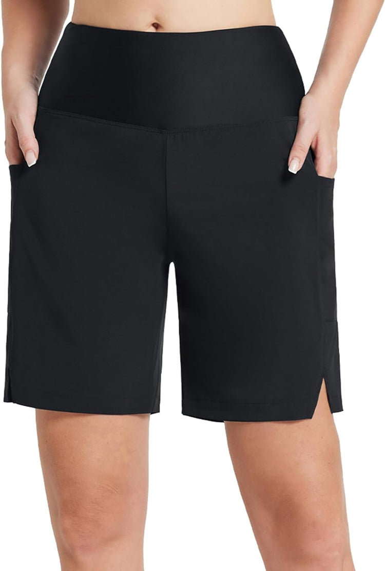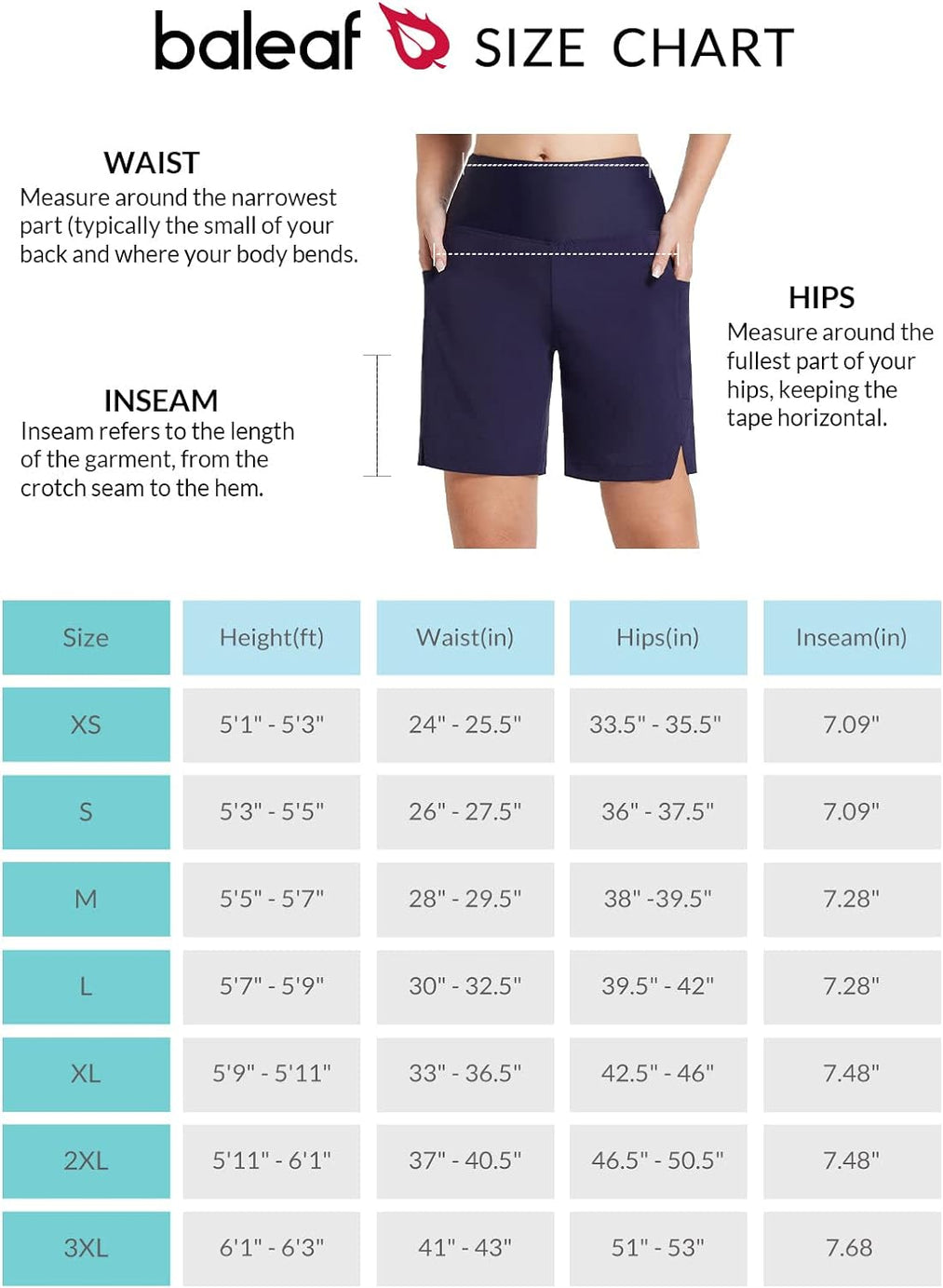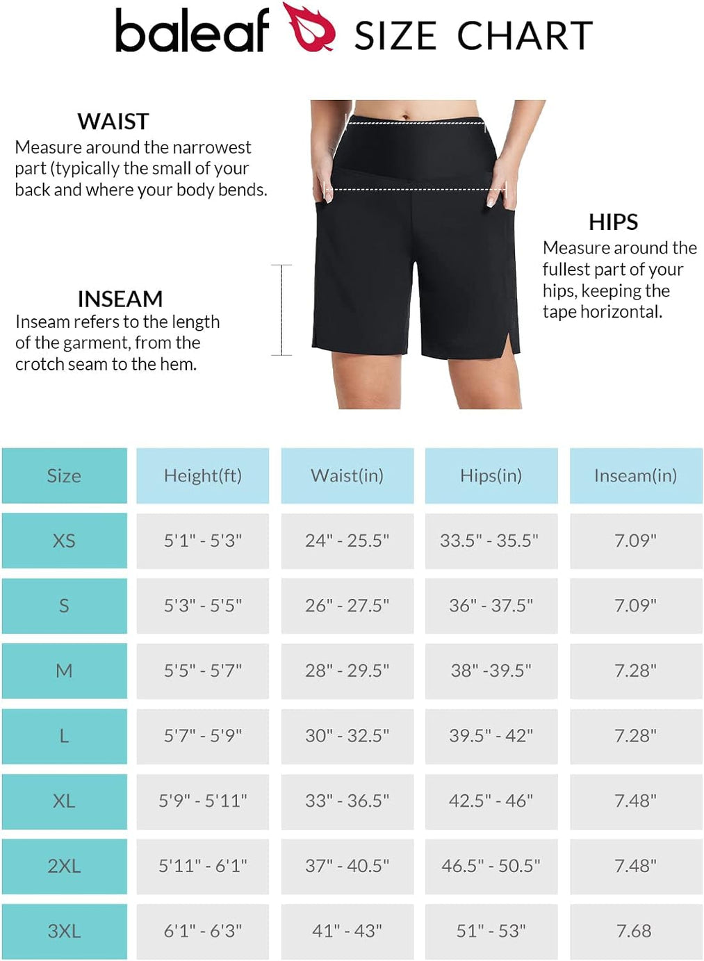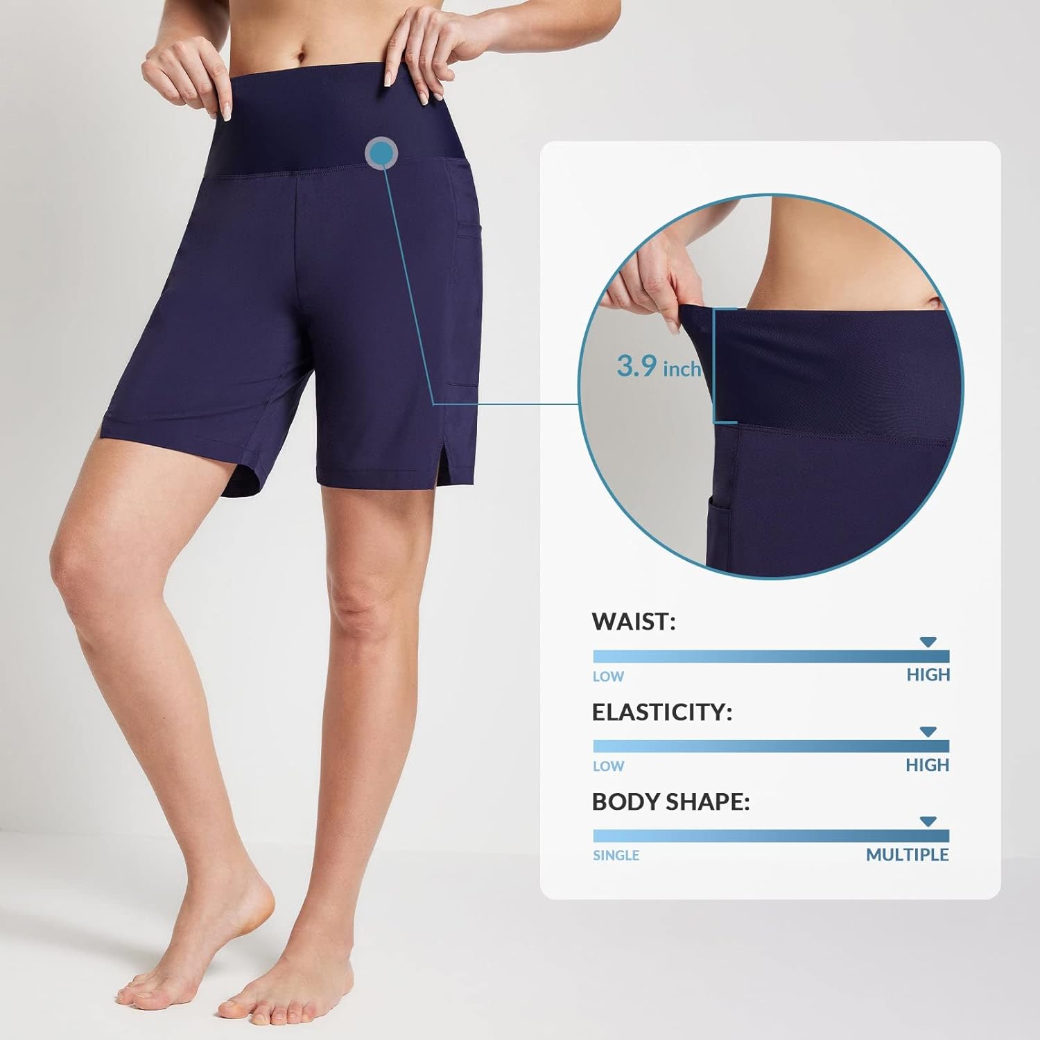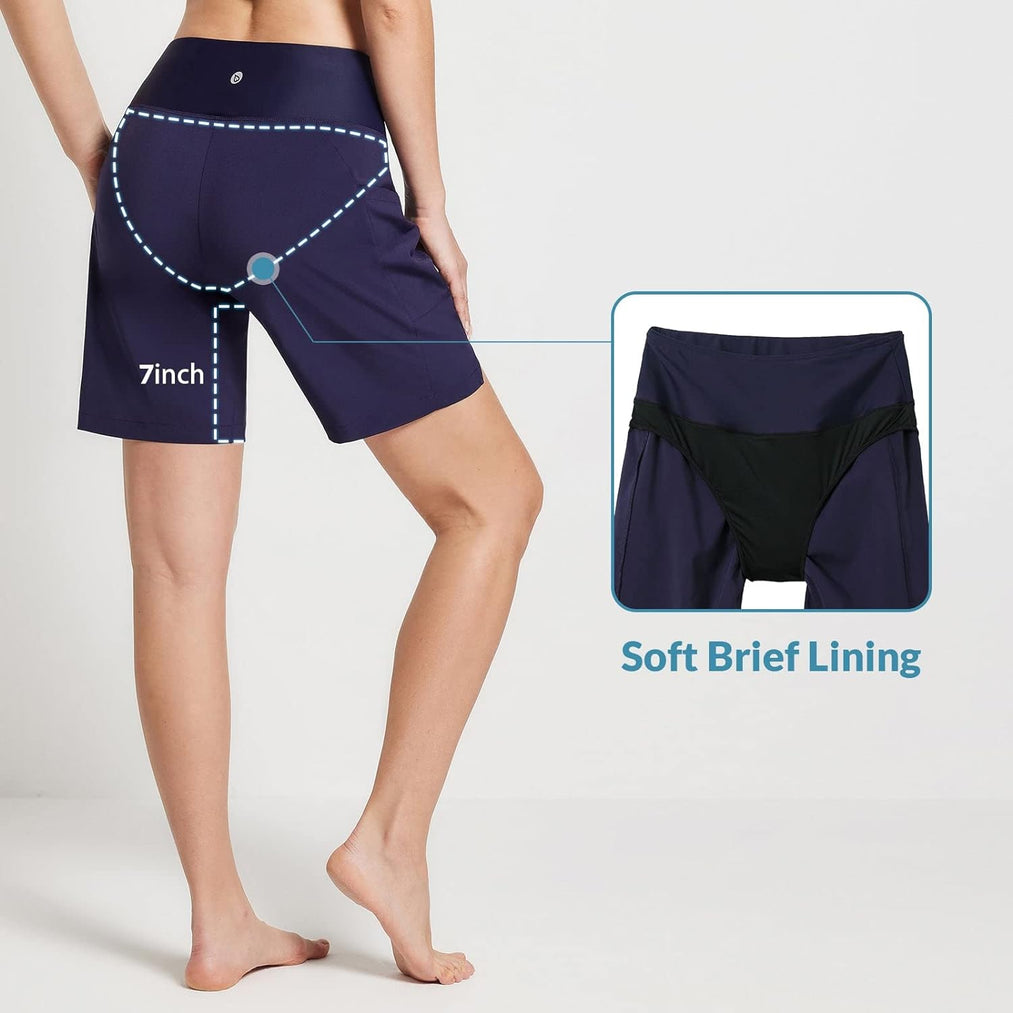 BALEAF Women's 7" Long Swim Board Shorts High Waisted Quick Dry Swimming Bottoms with Liner Pockets Beach Water Surf