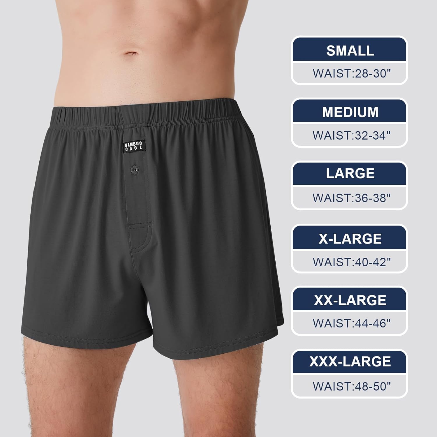 BAMBOO COOL Men's Boxers Underwear Bamboo Viscose Boxer Shorts for Men Classic Lounge Loose Stretch Short (3 Pack)