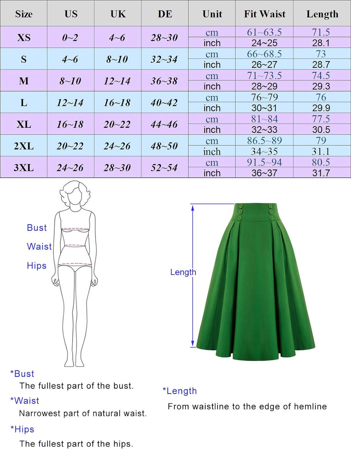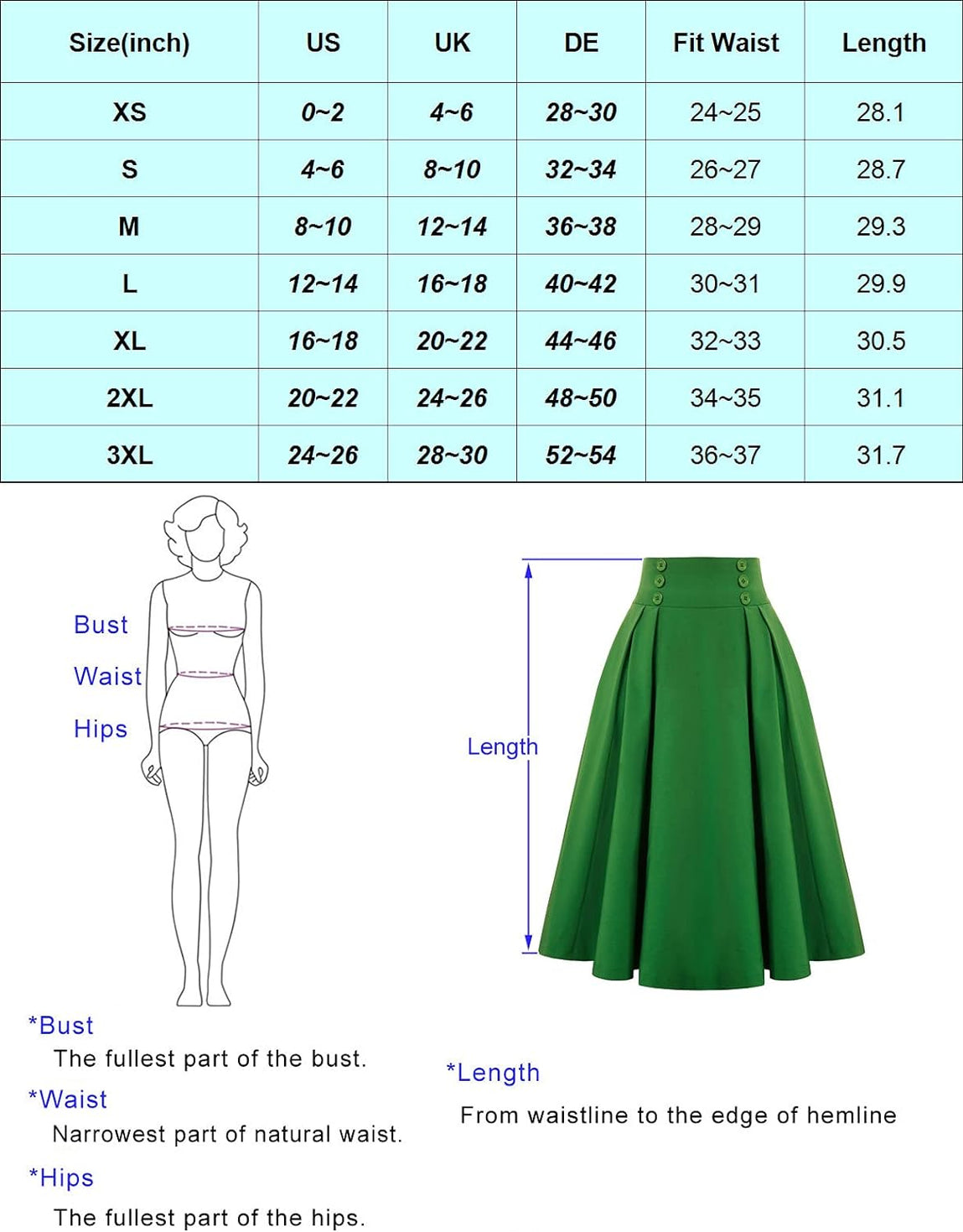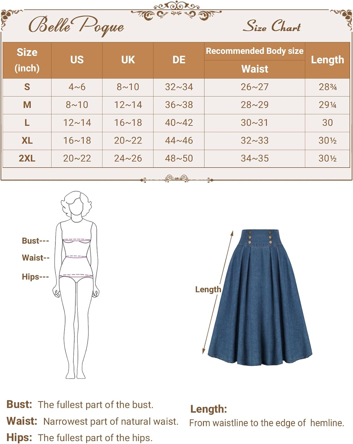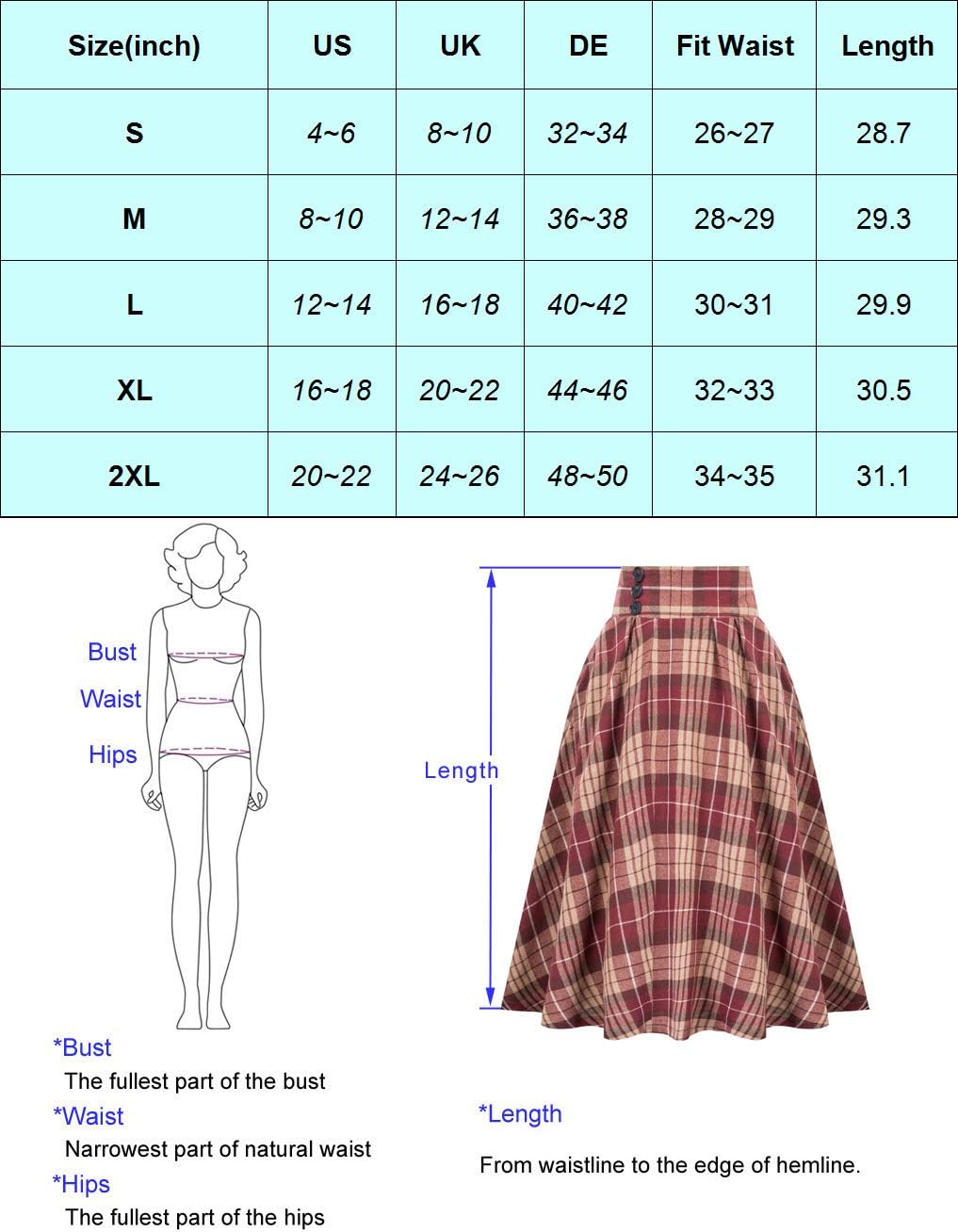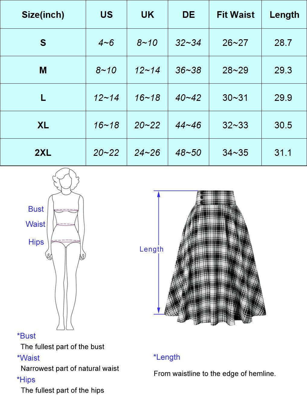 Superior in Quality: This women's A Line skirt made from soft cotton with a classic model, which ensures the high quality of the skirt.