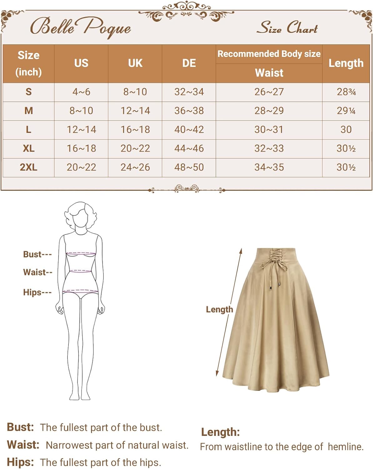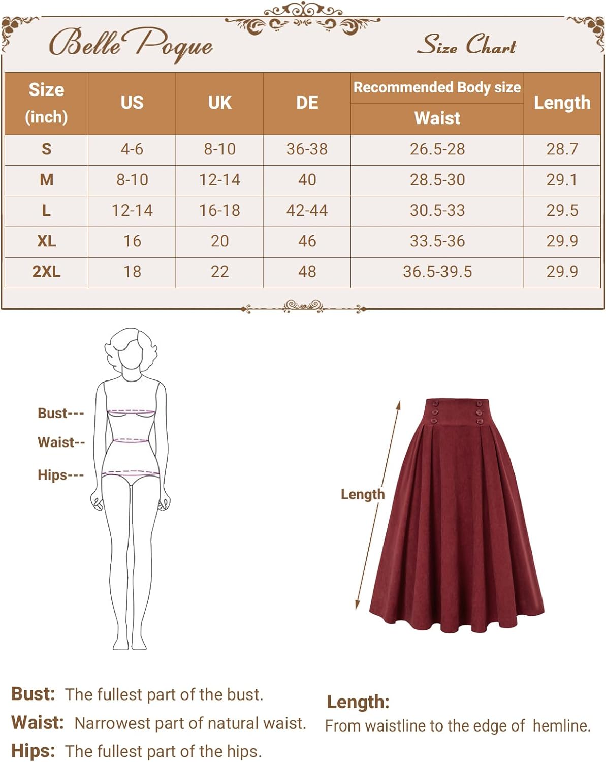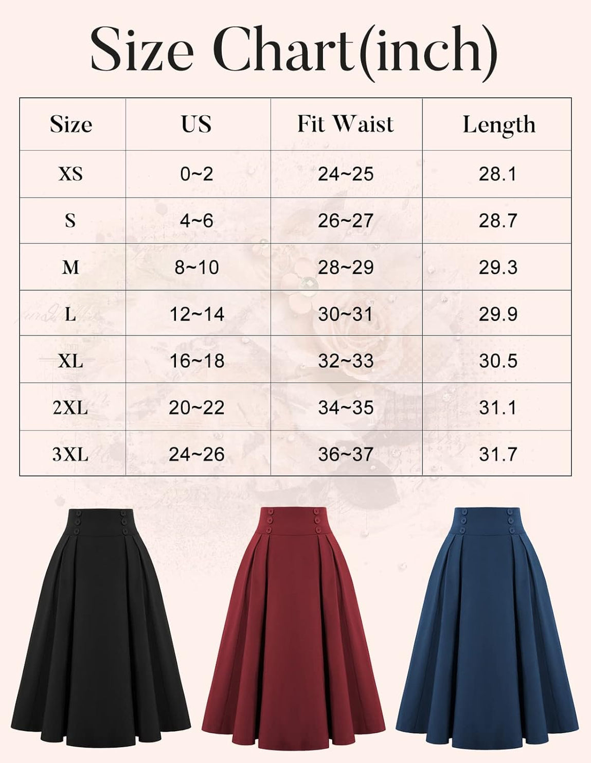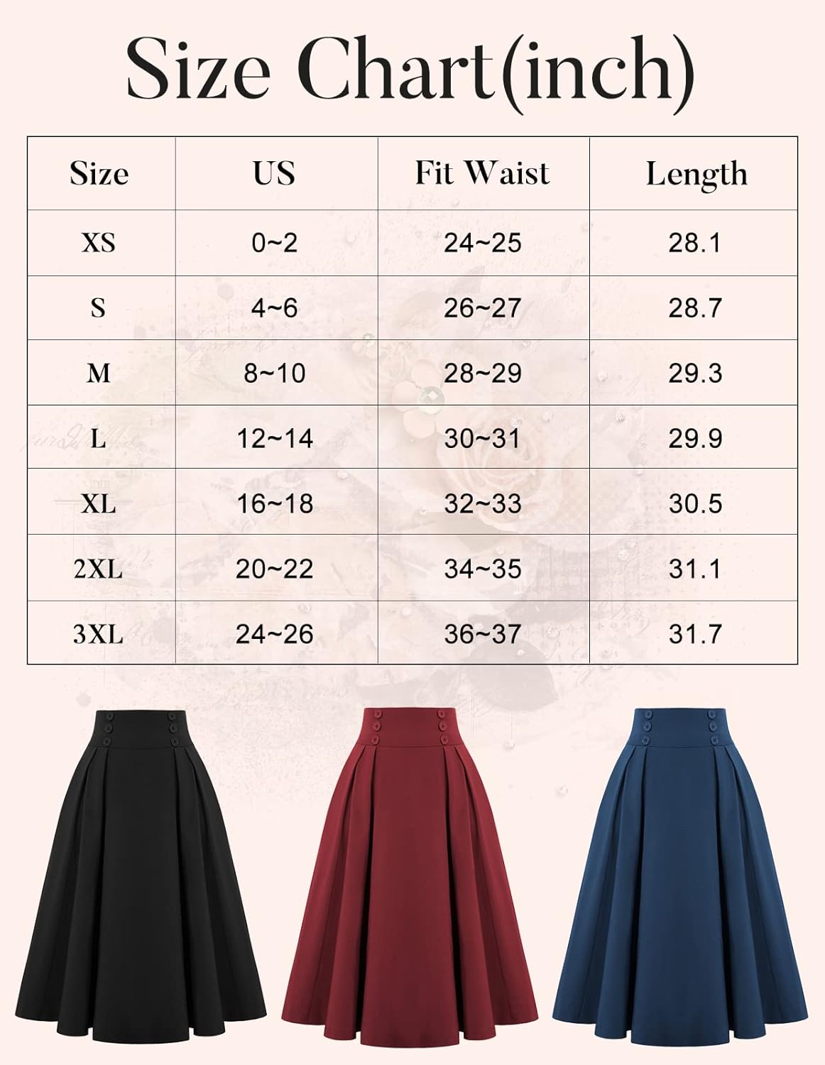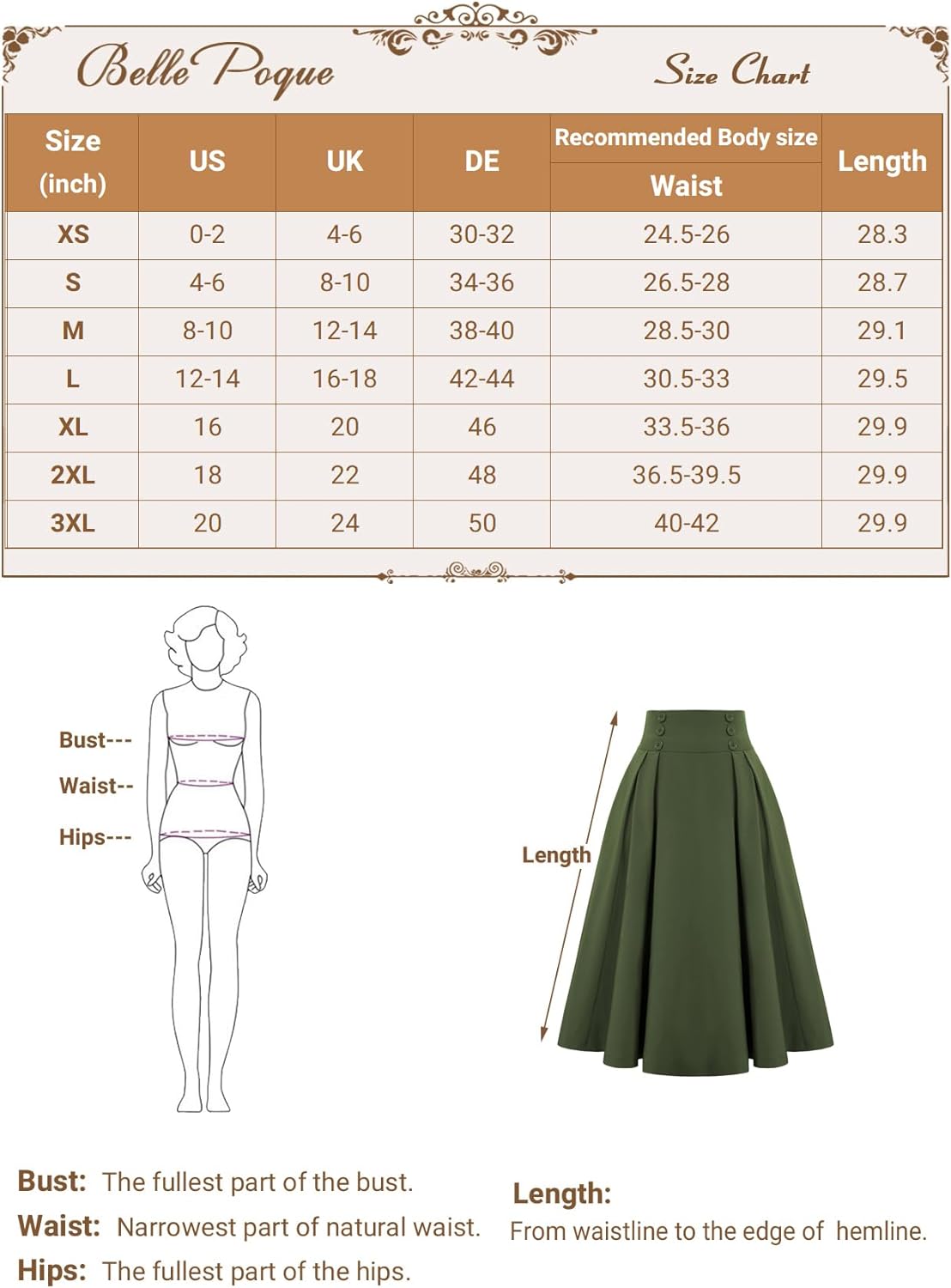 Superior in Quality: This women's A Line skirt made from soft cotton with a classic model, which ensures the high quality of the skirt.