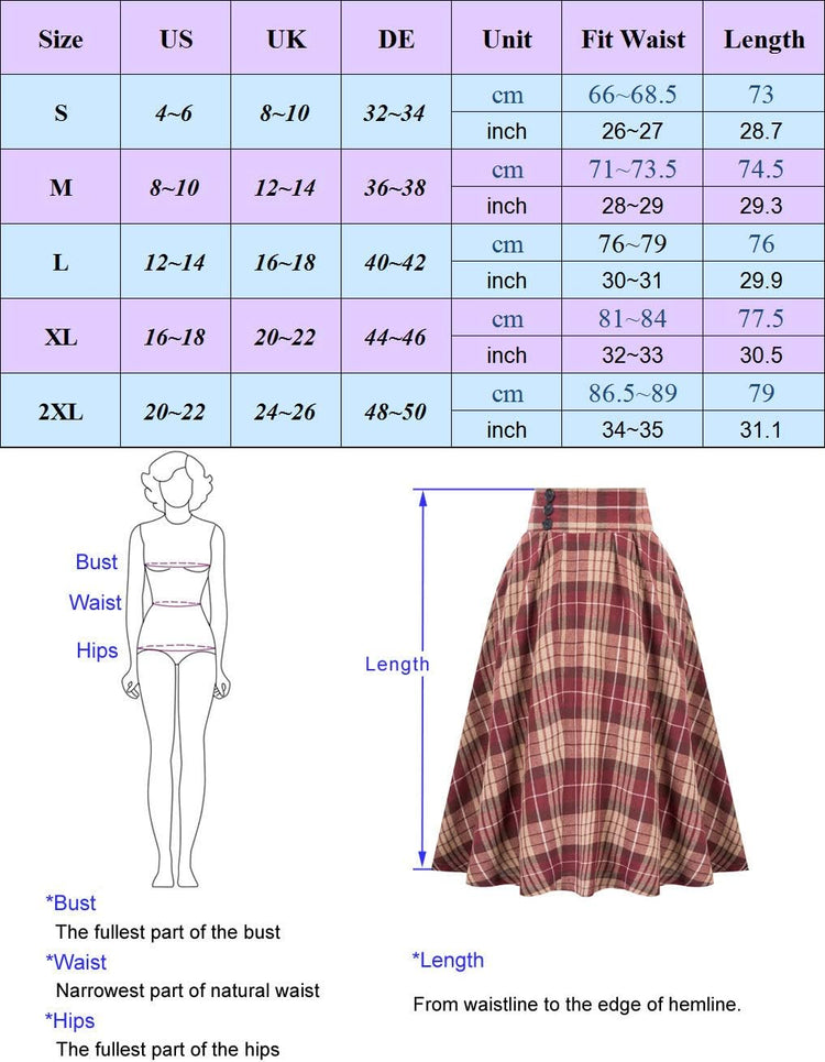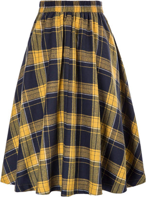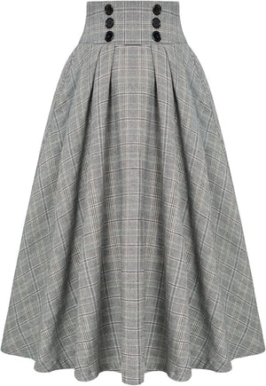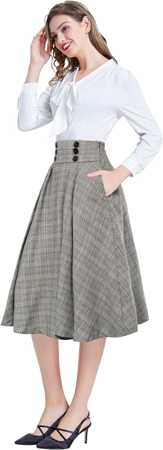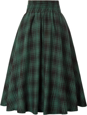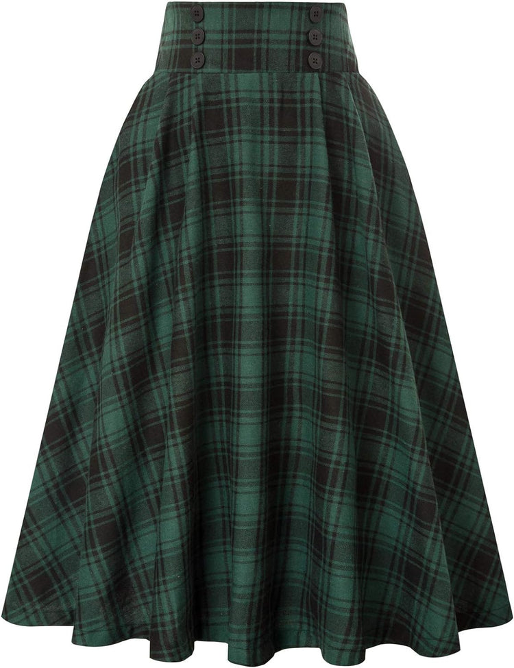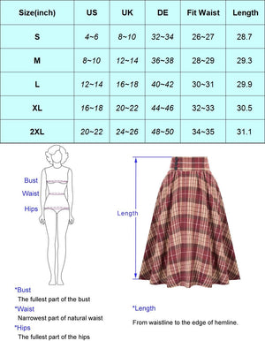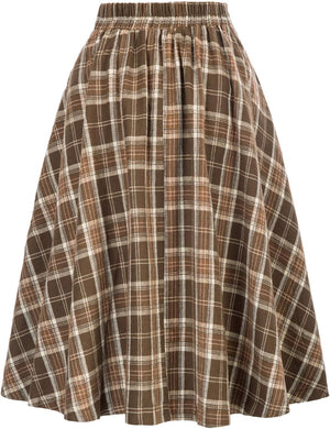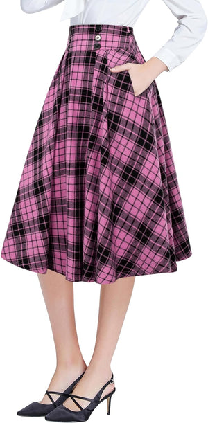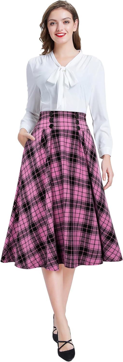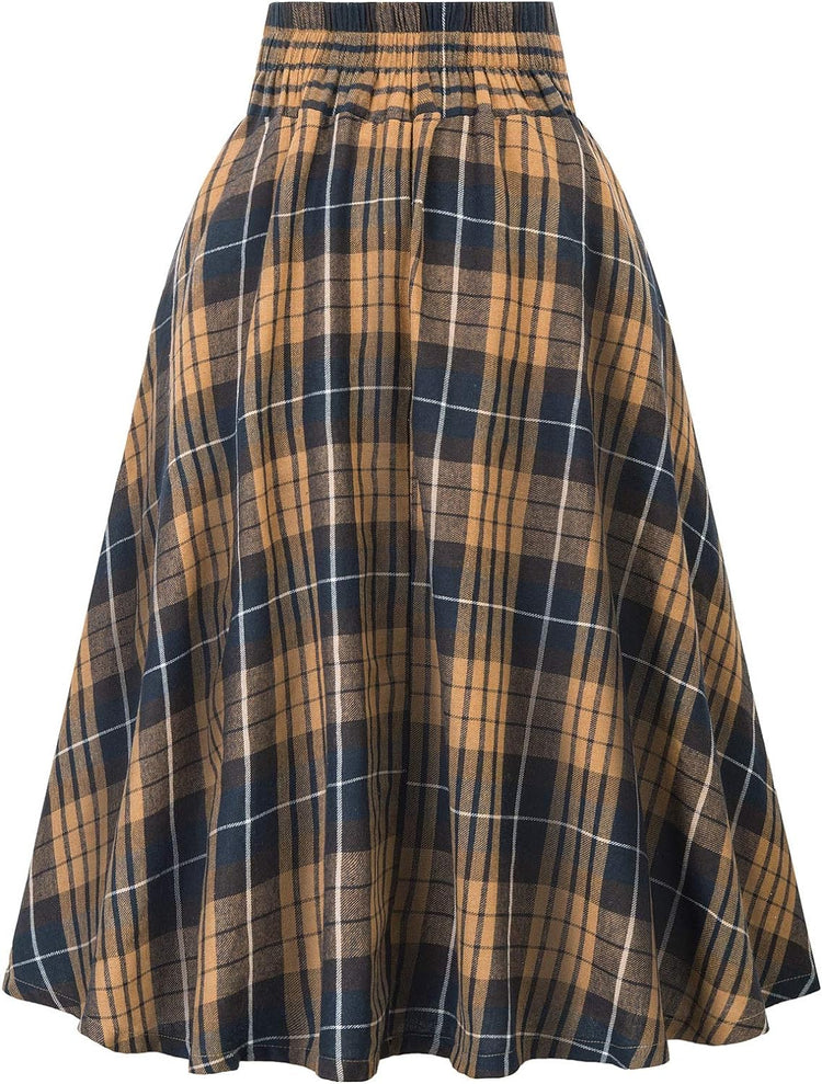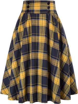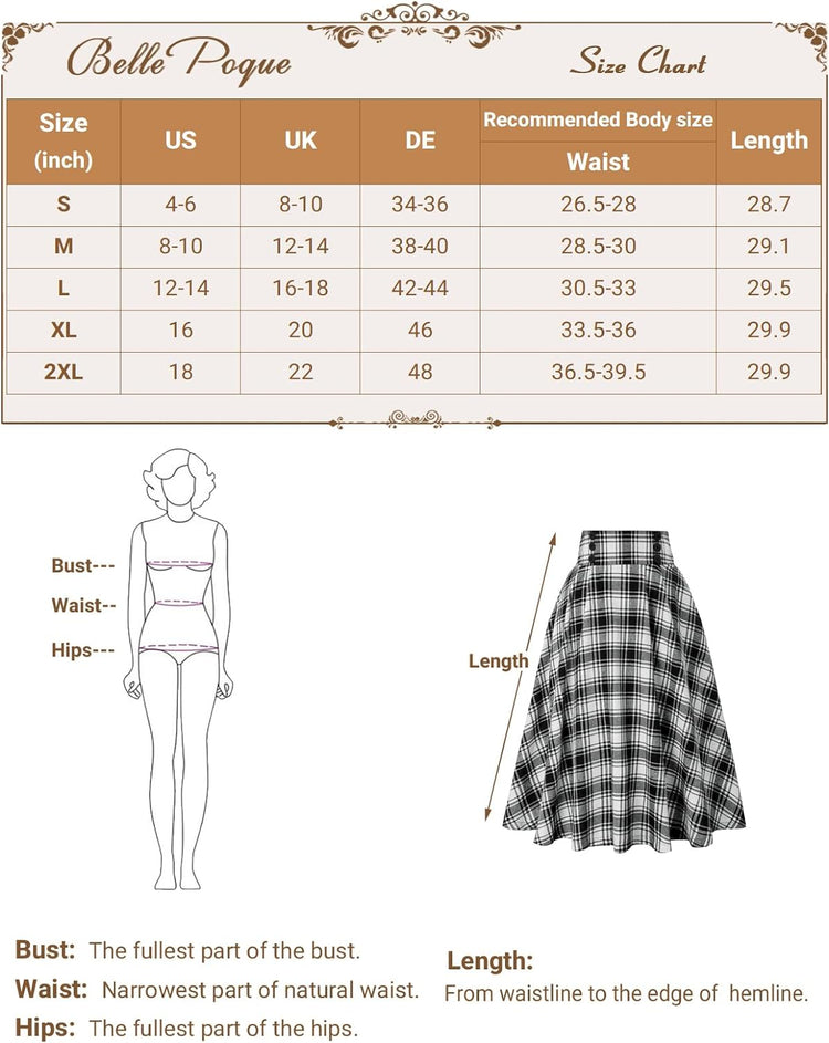 Belle Poque Women Plaid Skirt Vintage High Waist Pleated Skirt with Pockets BPA020