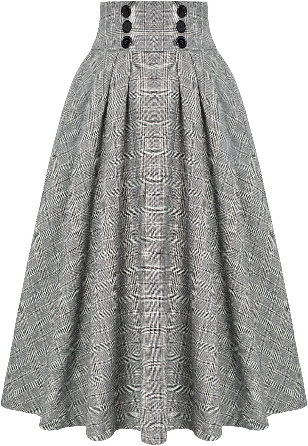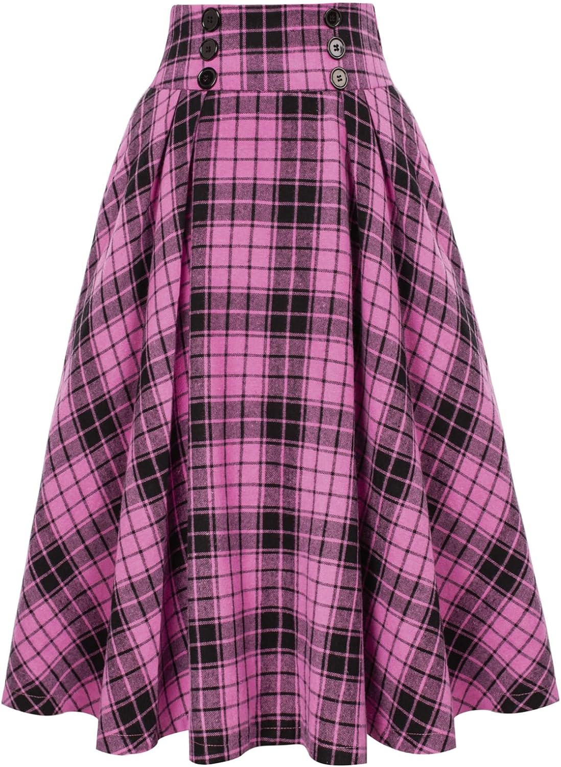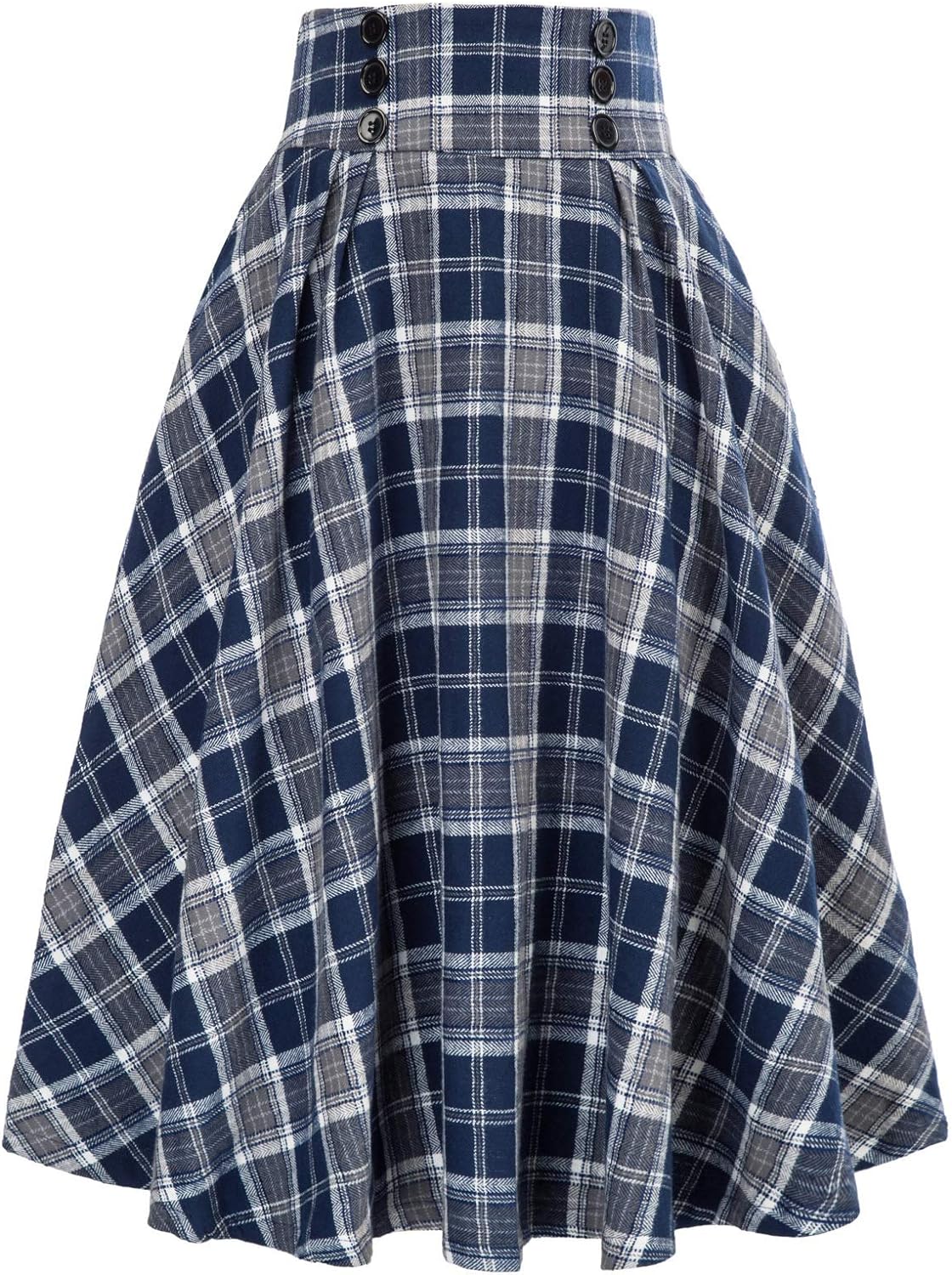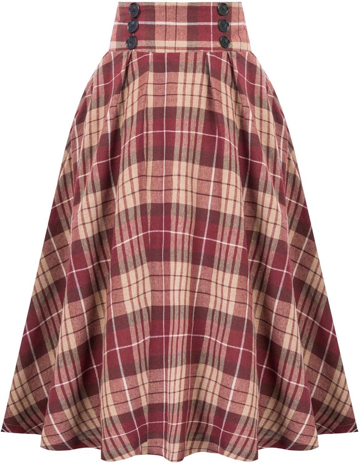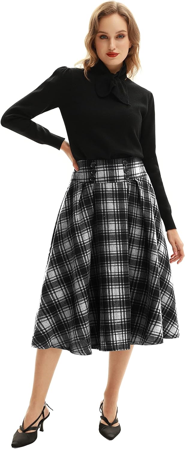 Belle Poque Women Plaid Skirt Vintage High Waist Pleated Skirt with Pockets BPA020