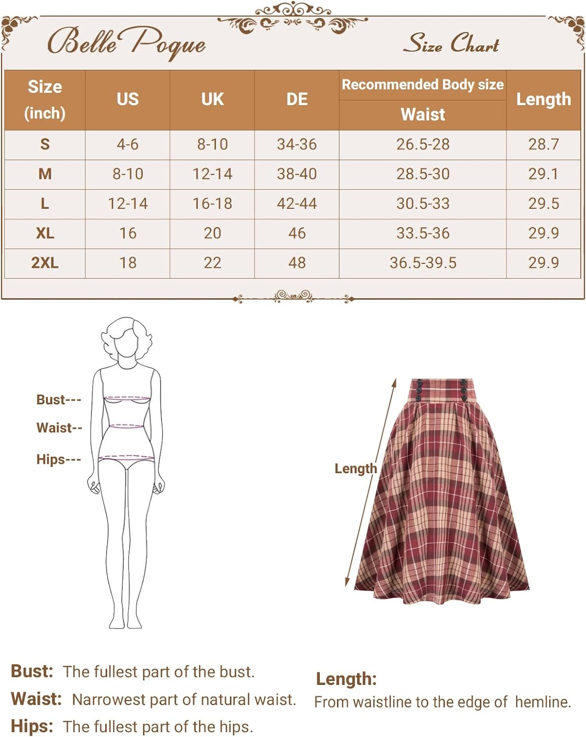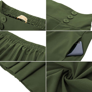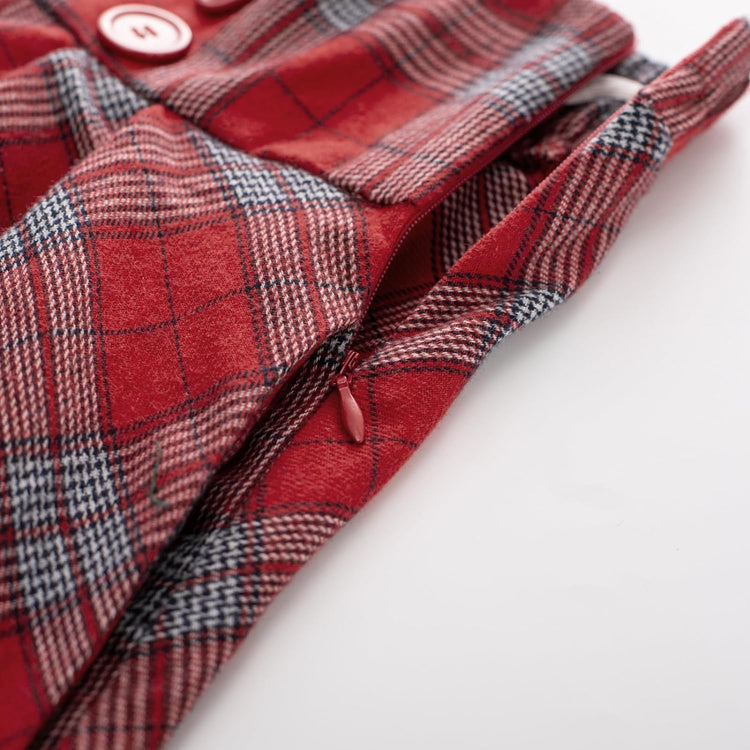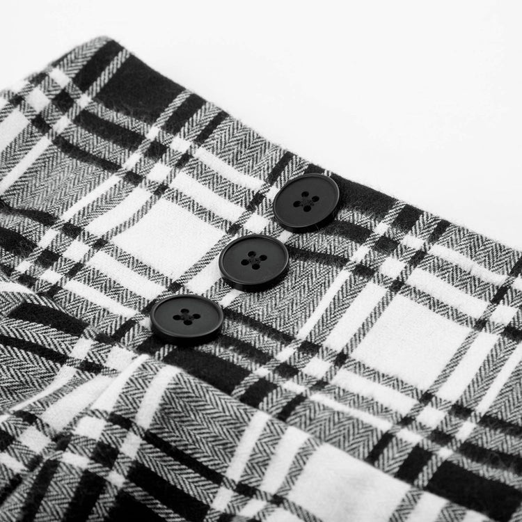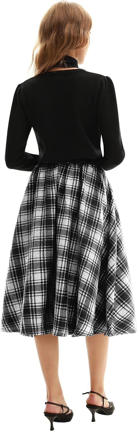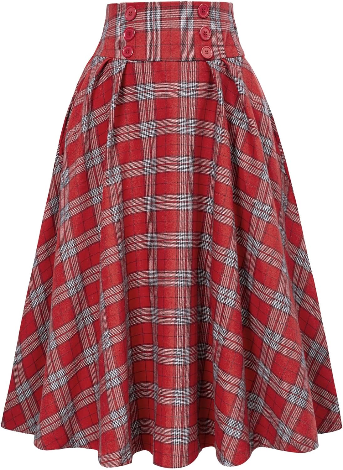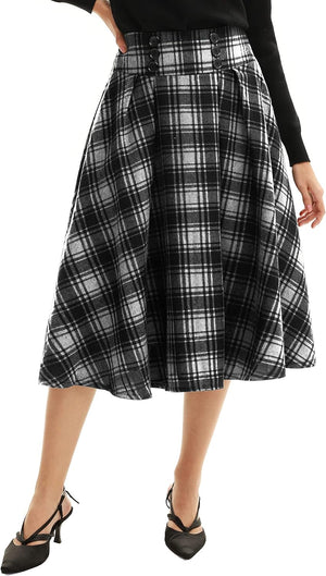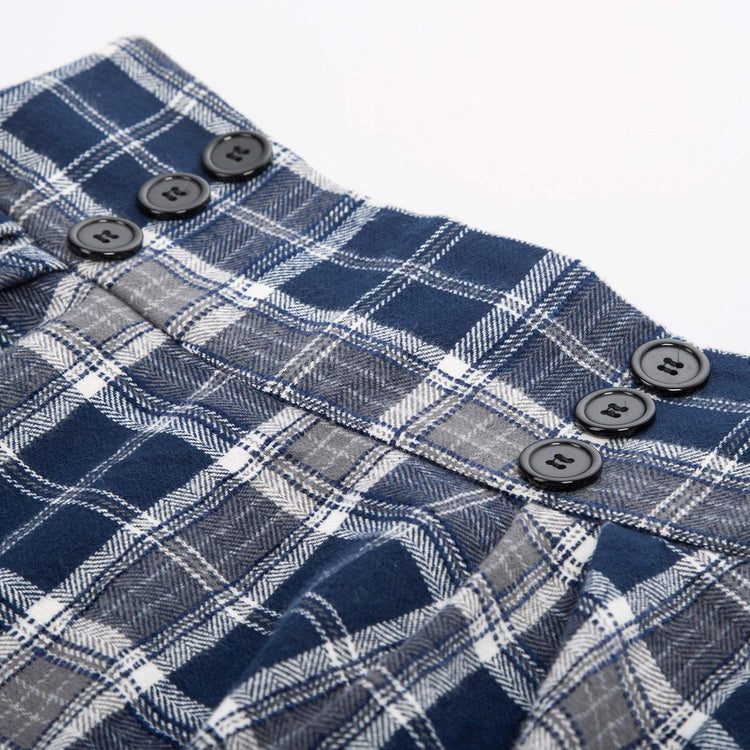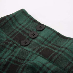 Belle Poque Women Plaid Skirt Vintage High Waist Pleated Skirt with Pockets BPA020