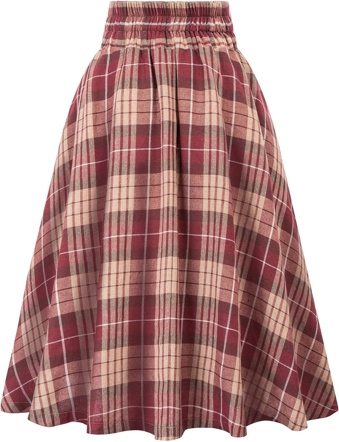 Belle Poque Women's Elastic Waist Plaid Skirt: