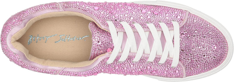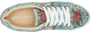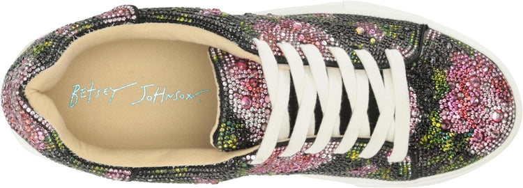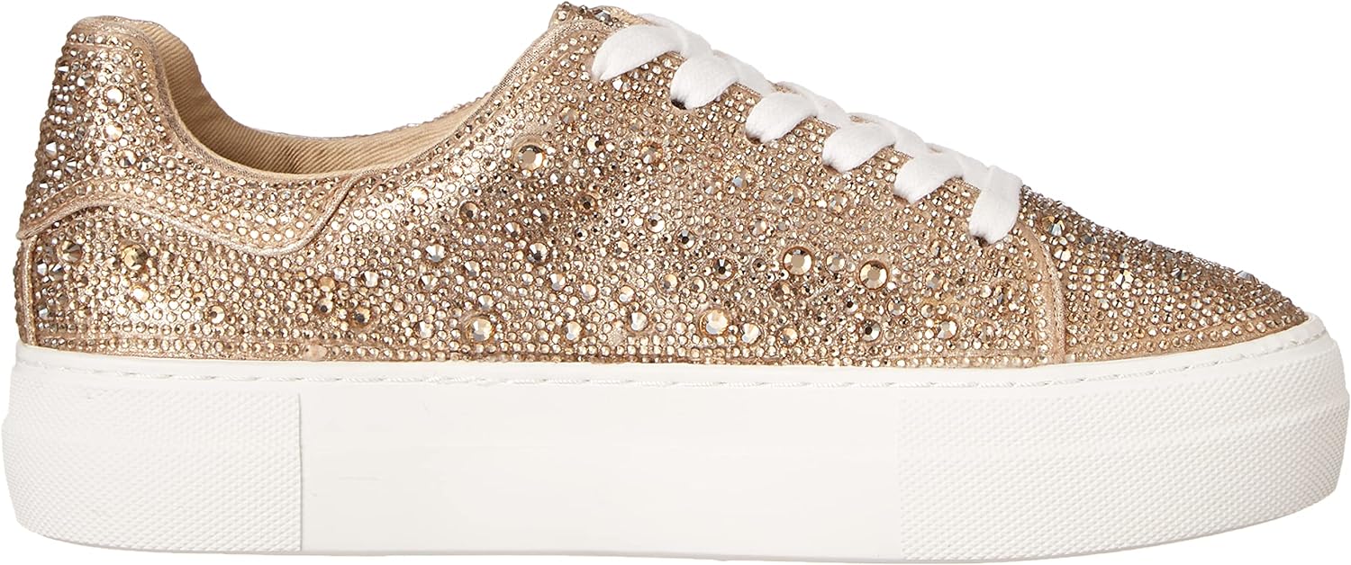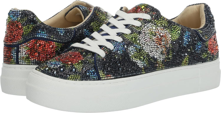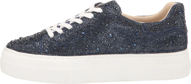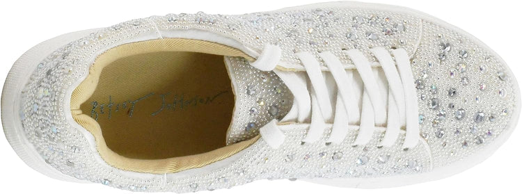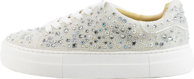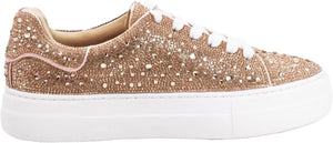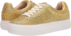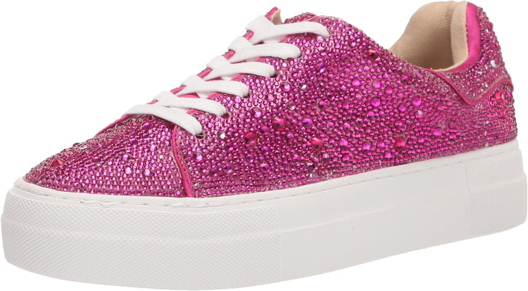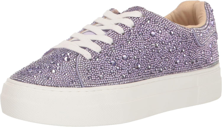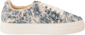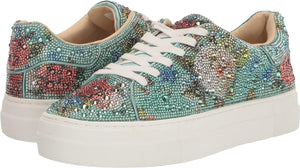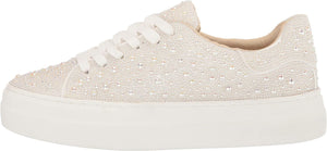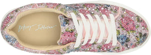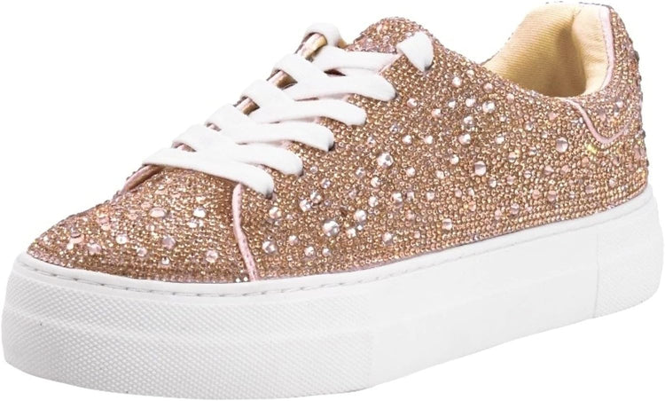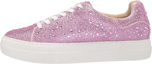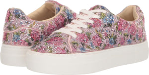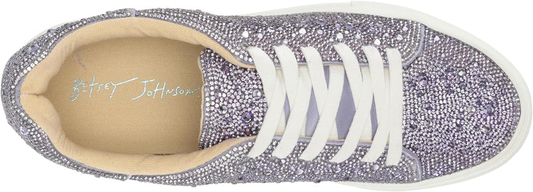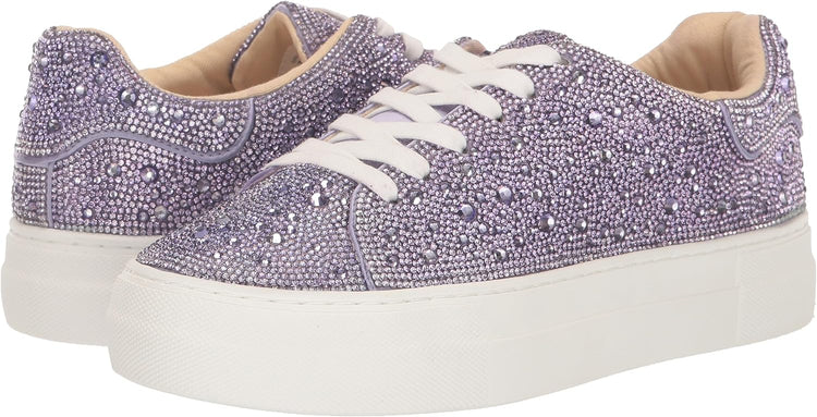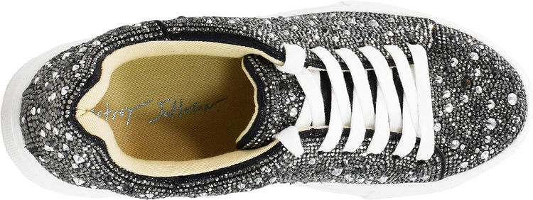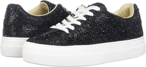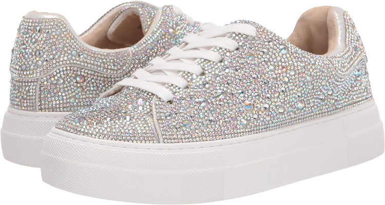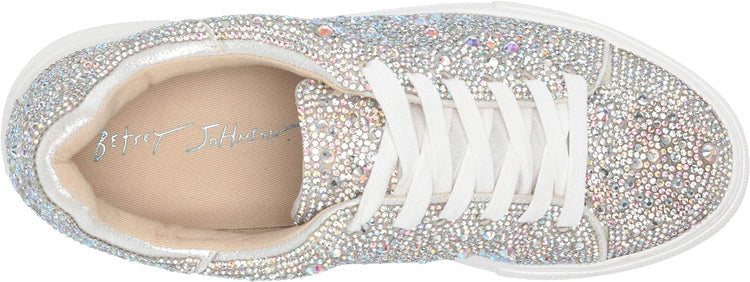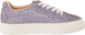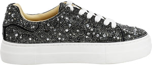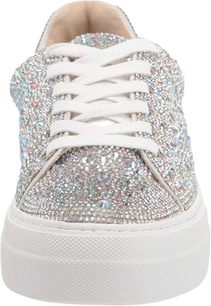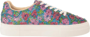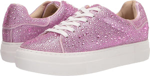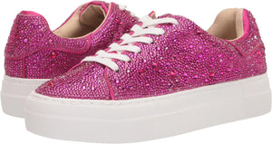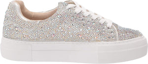 Betsey Johnson's SIDNY is a stand out sneaker! This all over rhinestone sneaker, featuring a platform sole and lace up closure, can be paired with your best dress or favorite jeans!