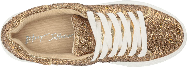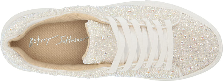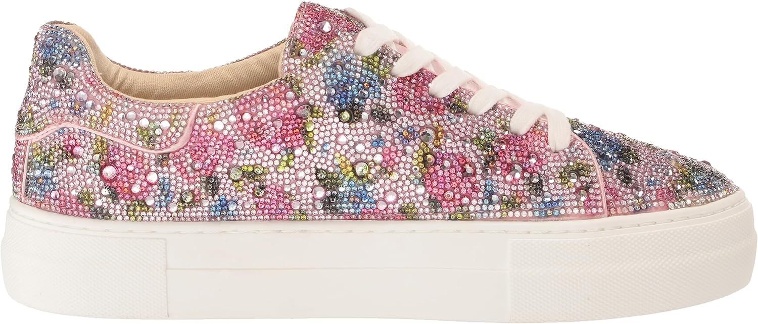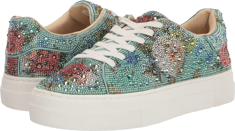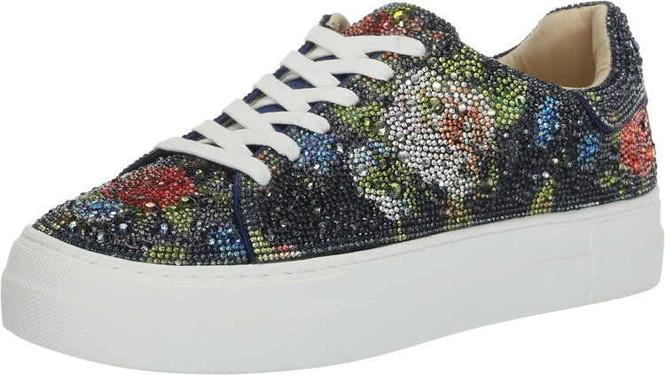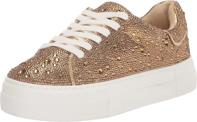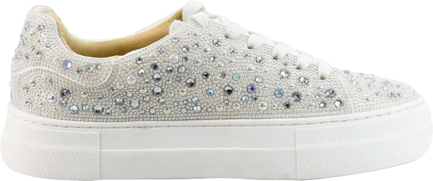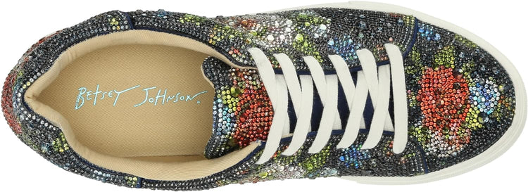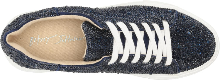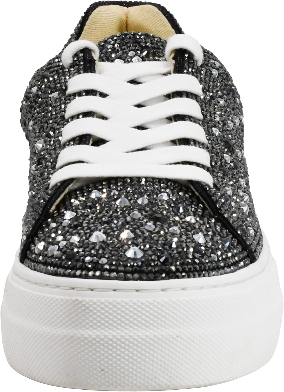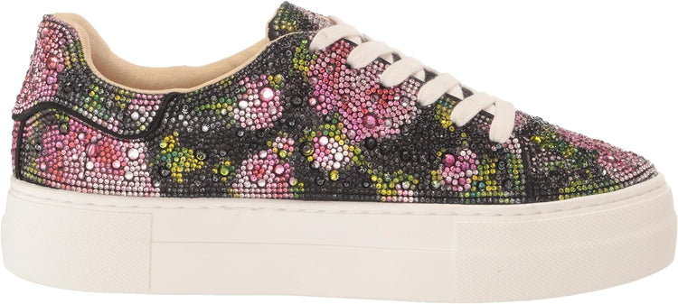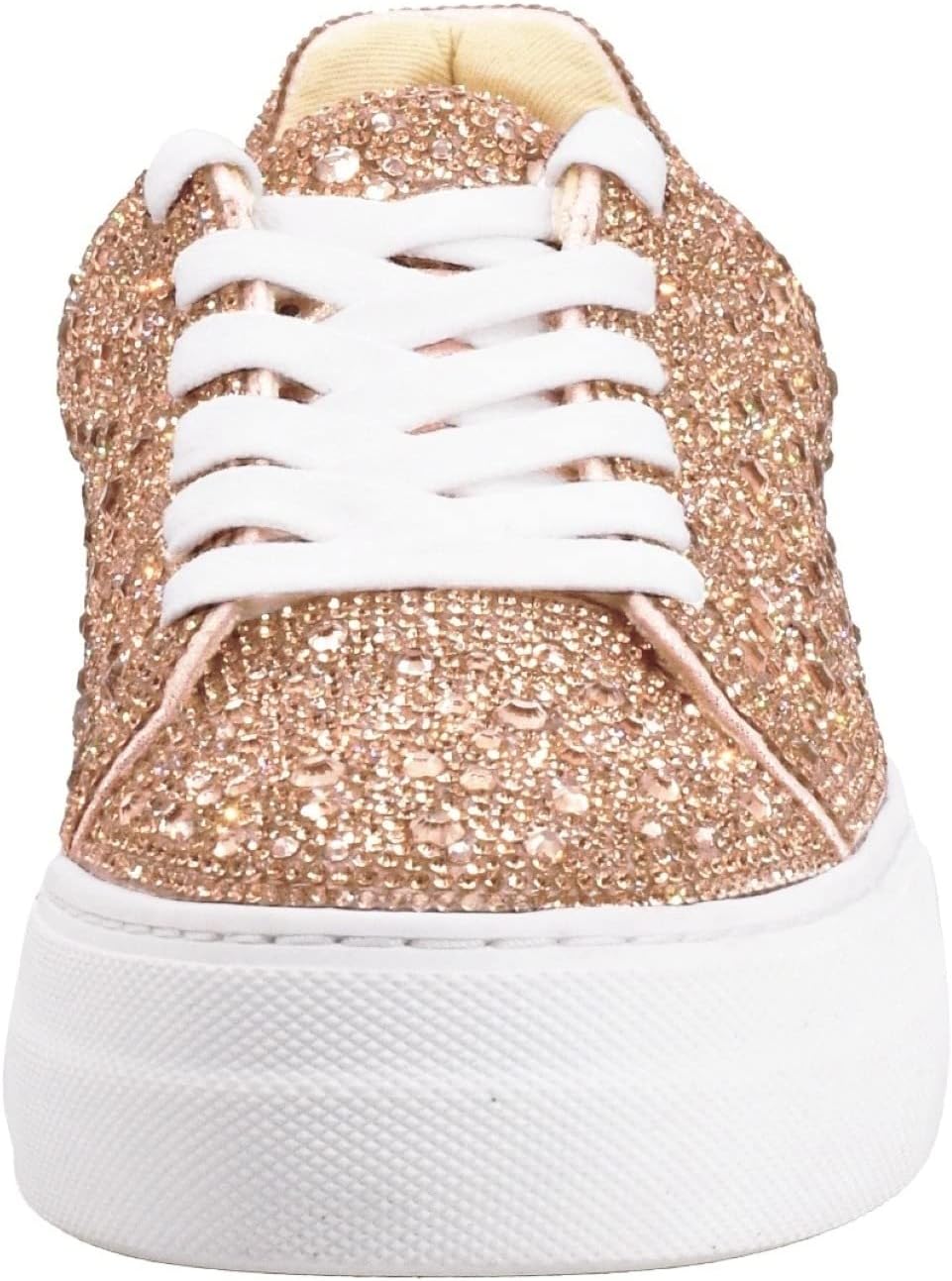 Betsey Johnson's SIDNY is a stand out sneaker! This all over rhinestone sneaker, featuring a platform sole and lace up closure, can be paired with your best dress or favorite jeans!