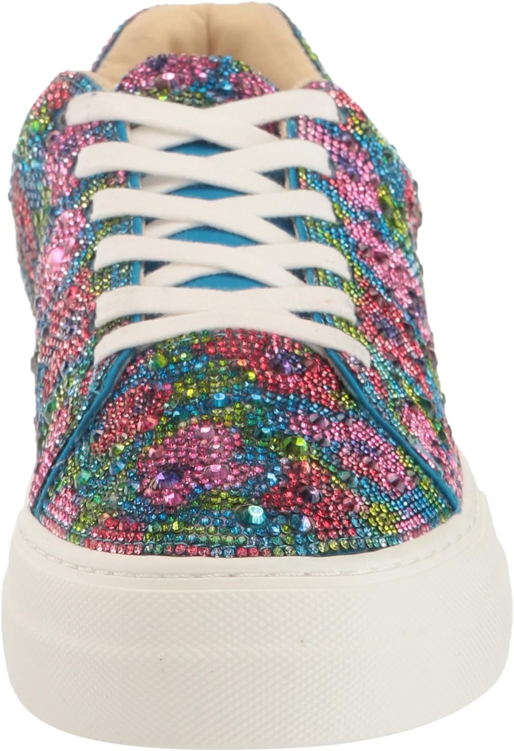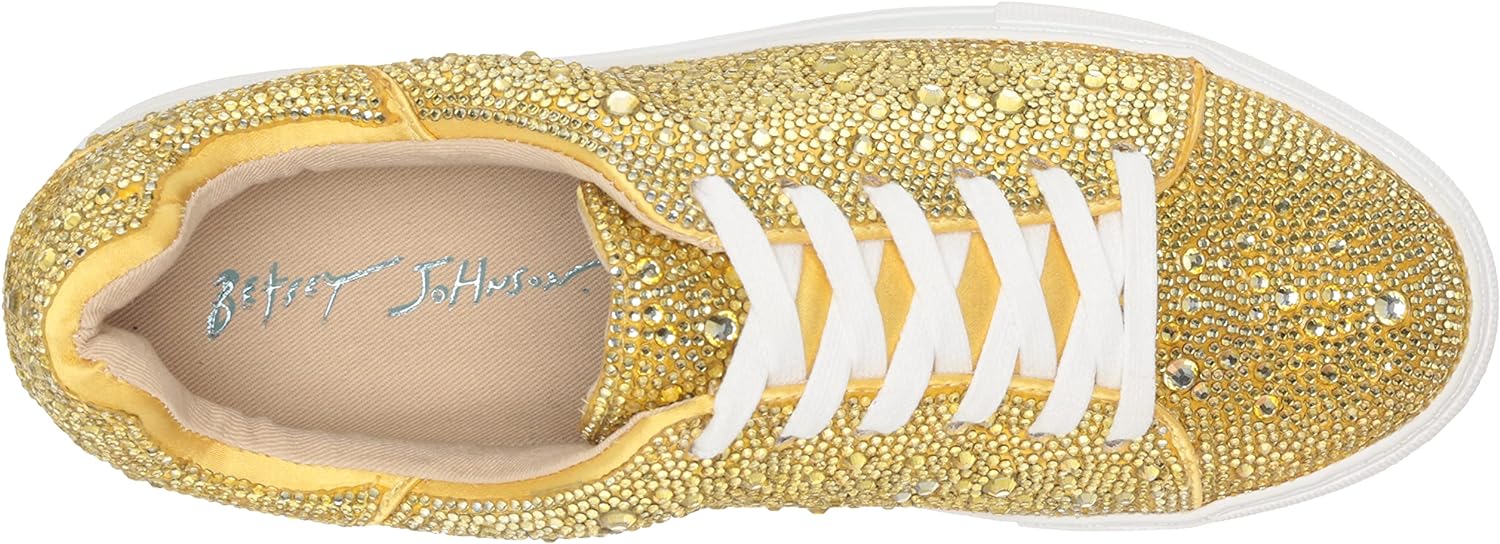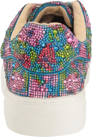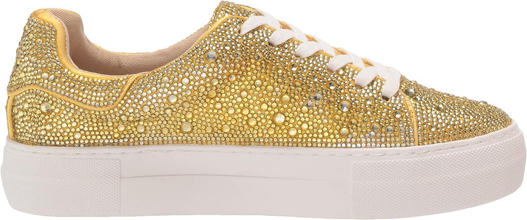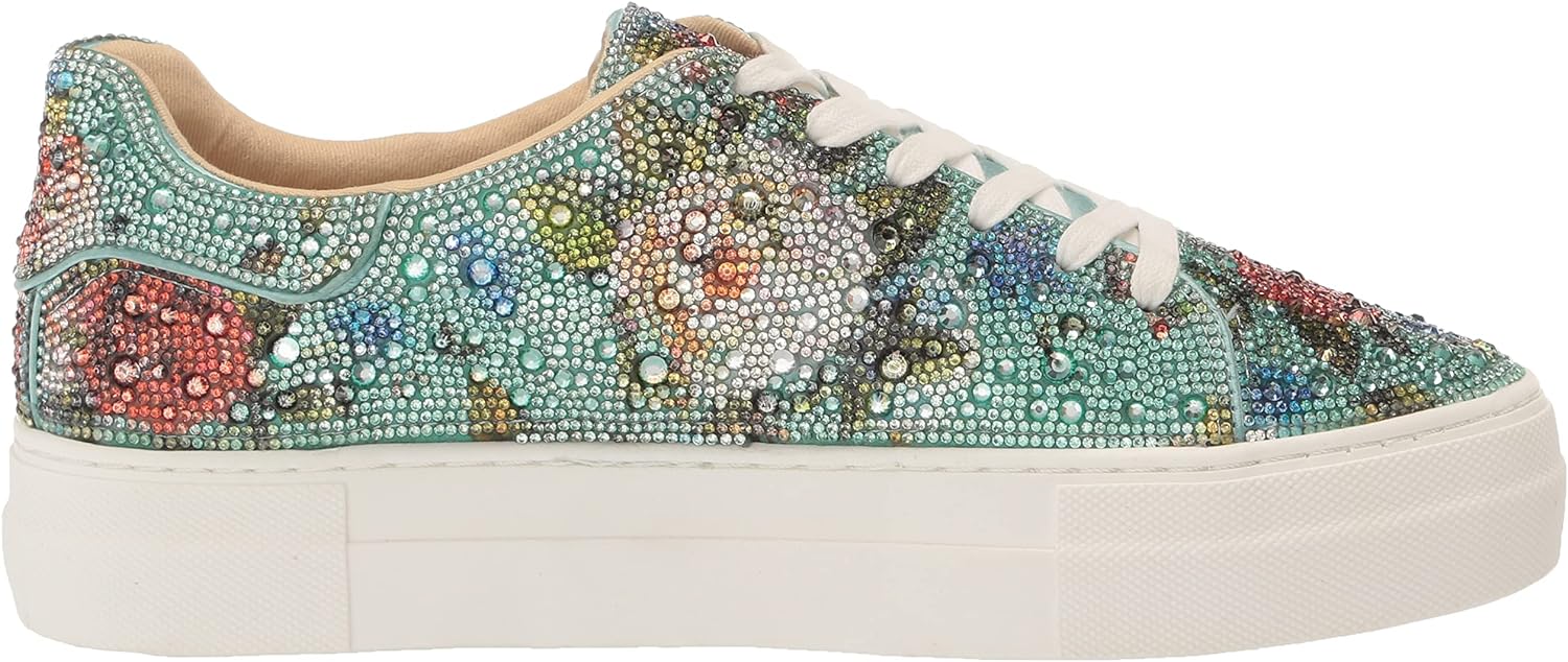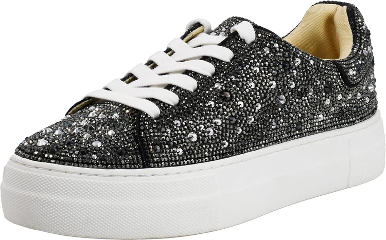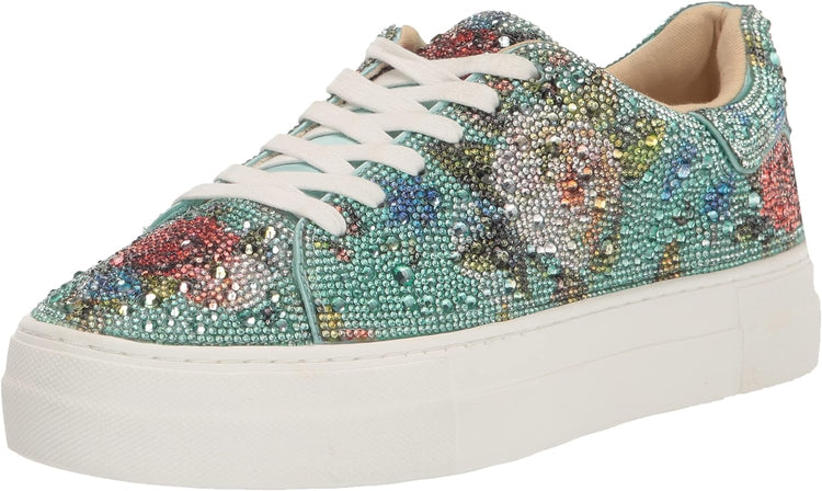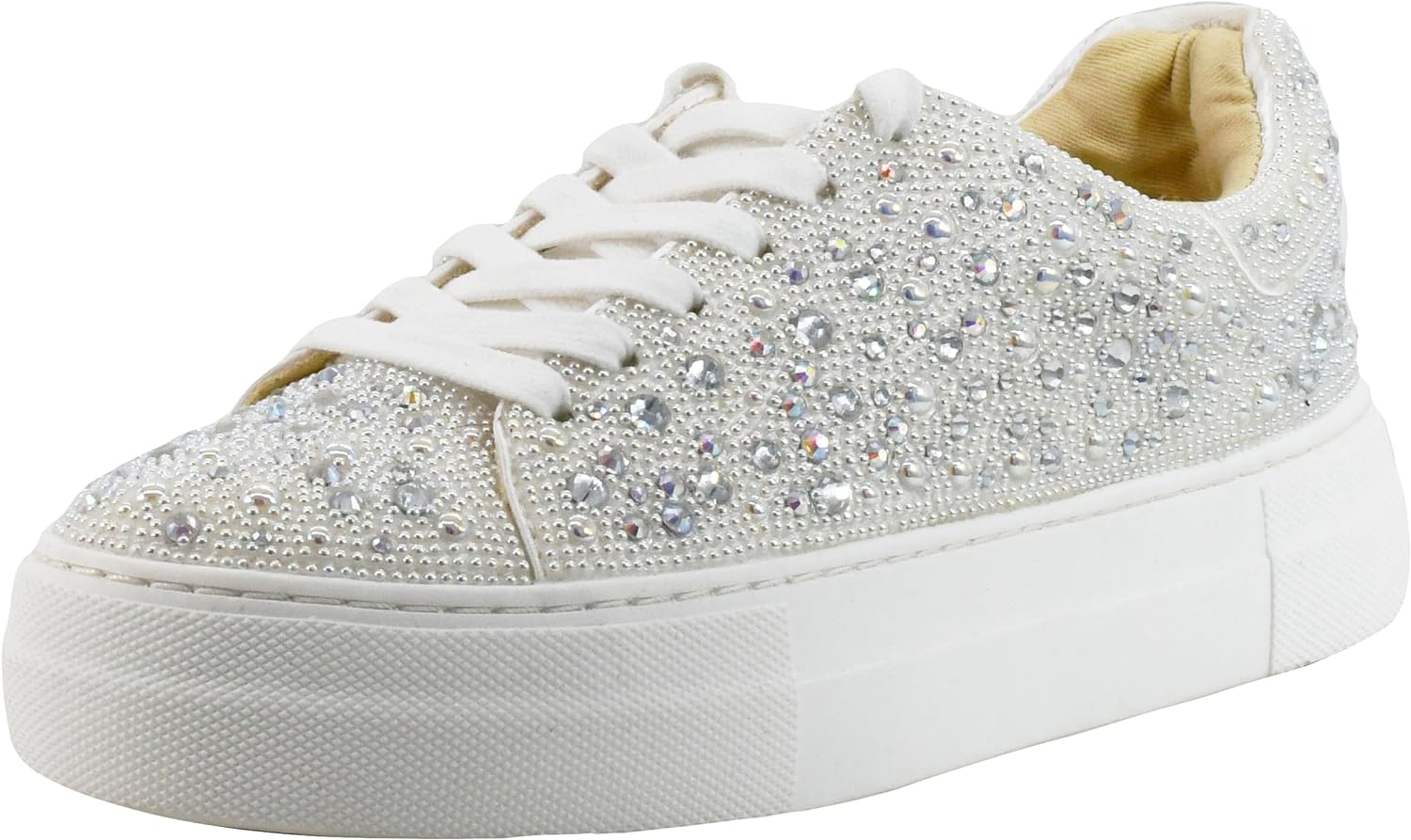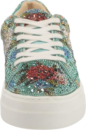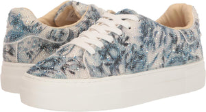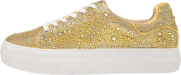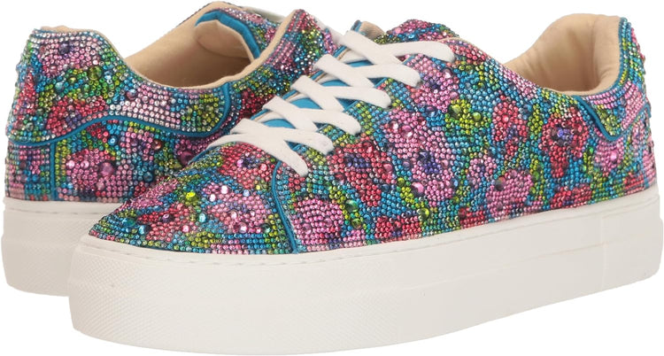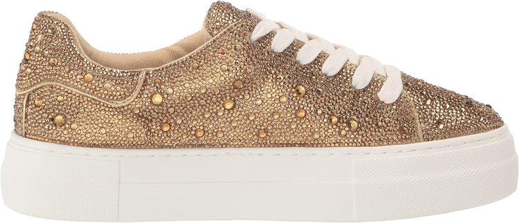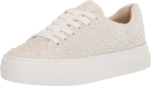 Betsey Johnson's SIDNY is a stand out sneaker! This all over rhinestone sneaker, featuring a platform sole and lace up closure, can be paired with your best dress or favorite jeans!