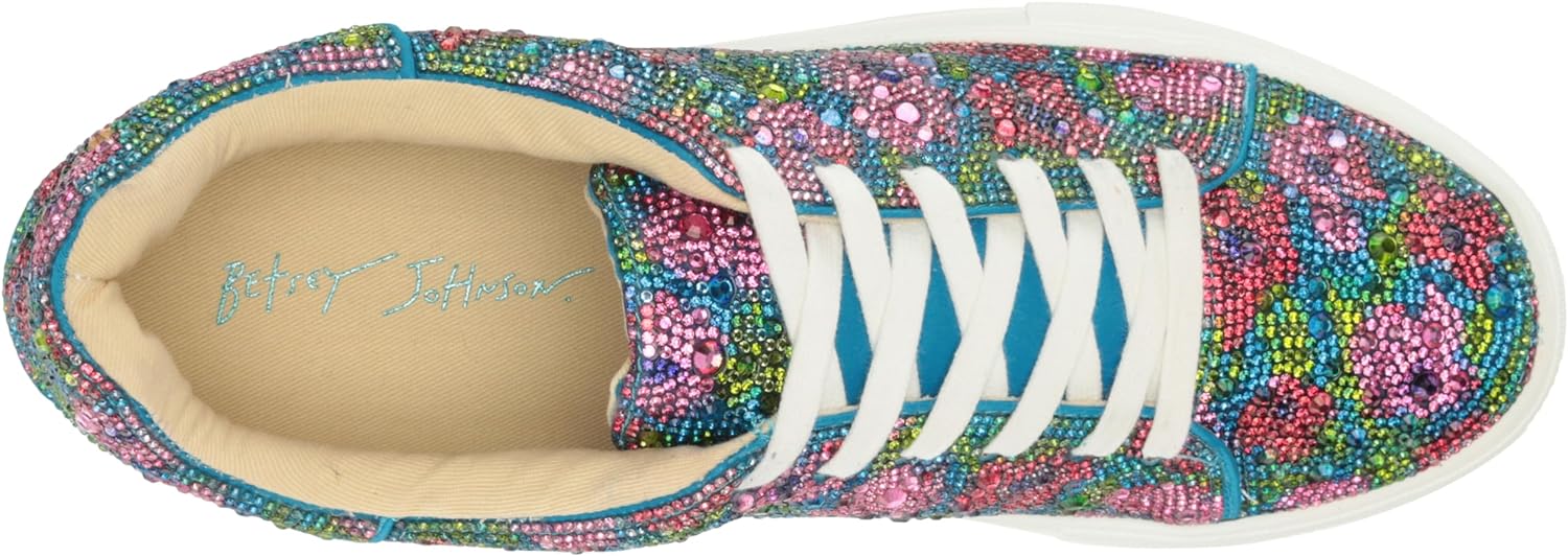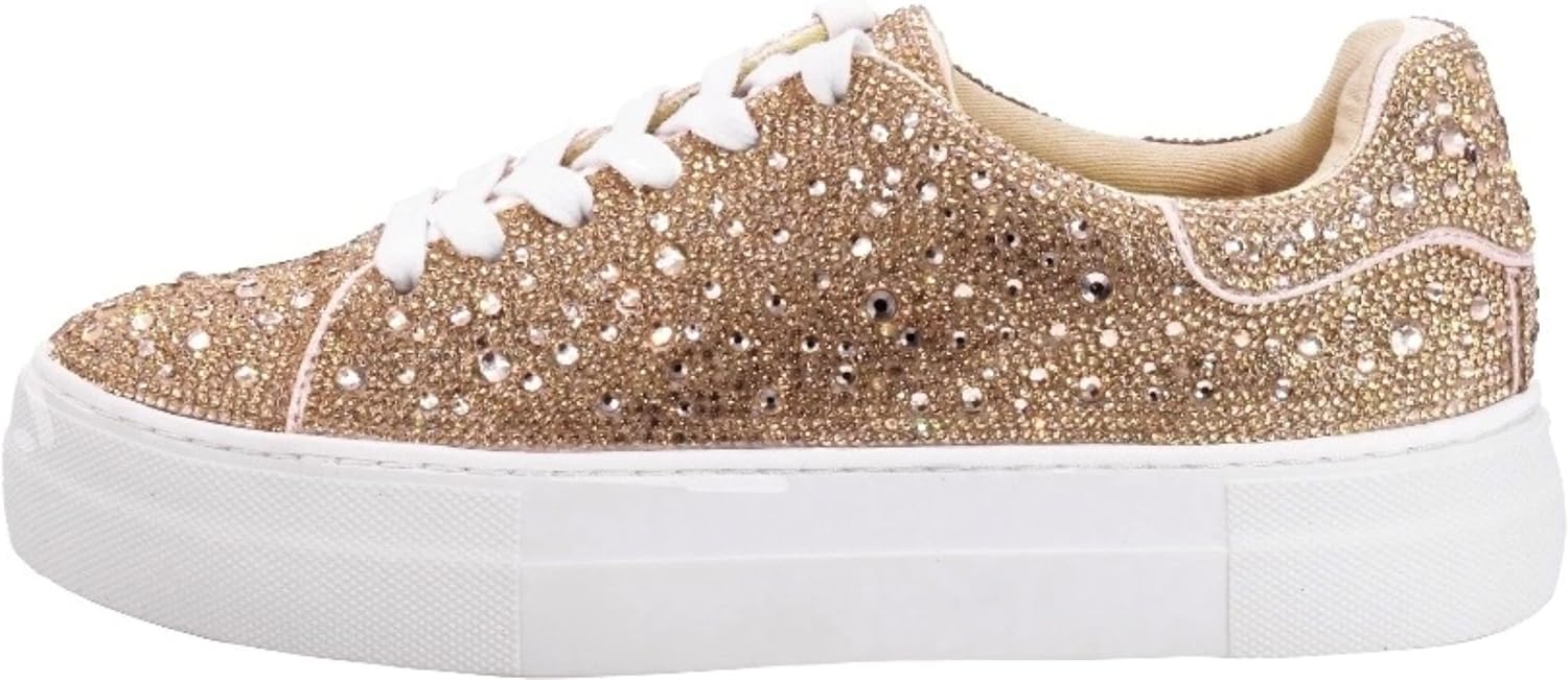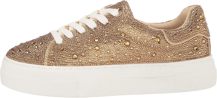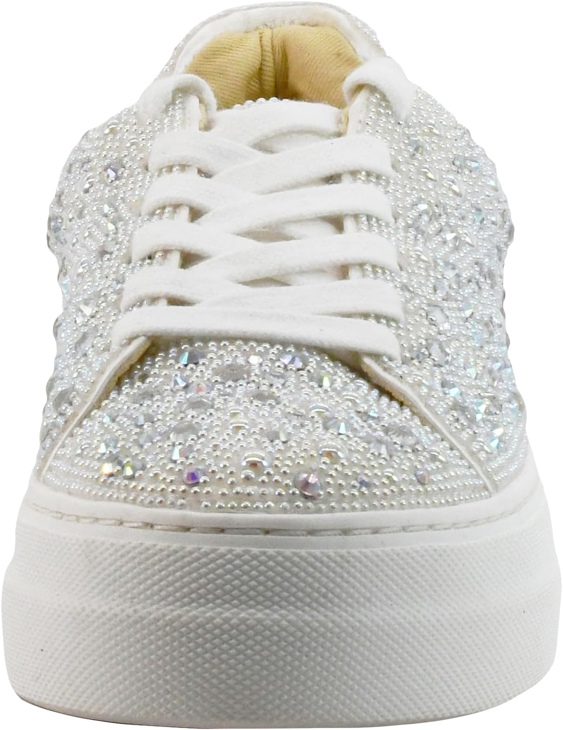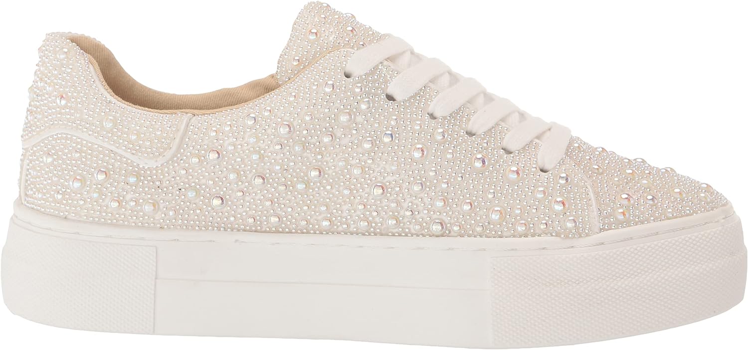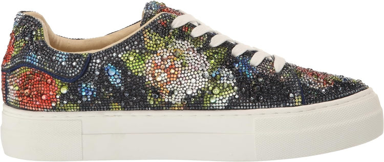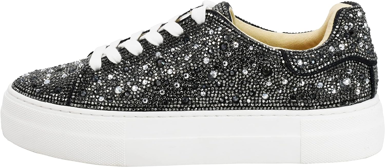 Betsey Johnson's SIDNY is a stand out sneaker! This all over rhinestone sneaker, featuring a platform sole and lace up closure, can be paired with your best dress or favorite jeans!