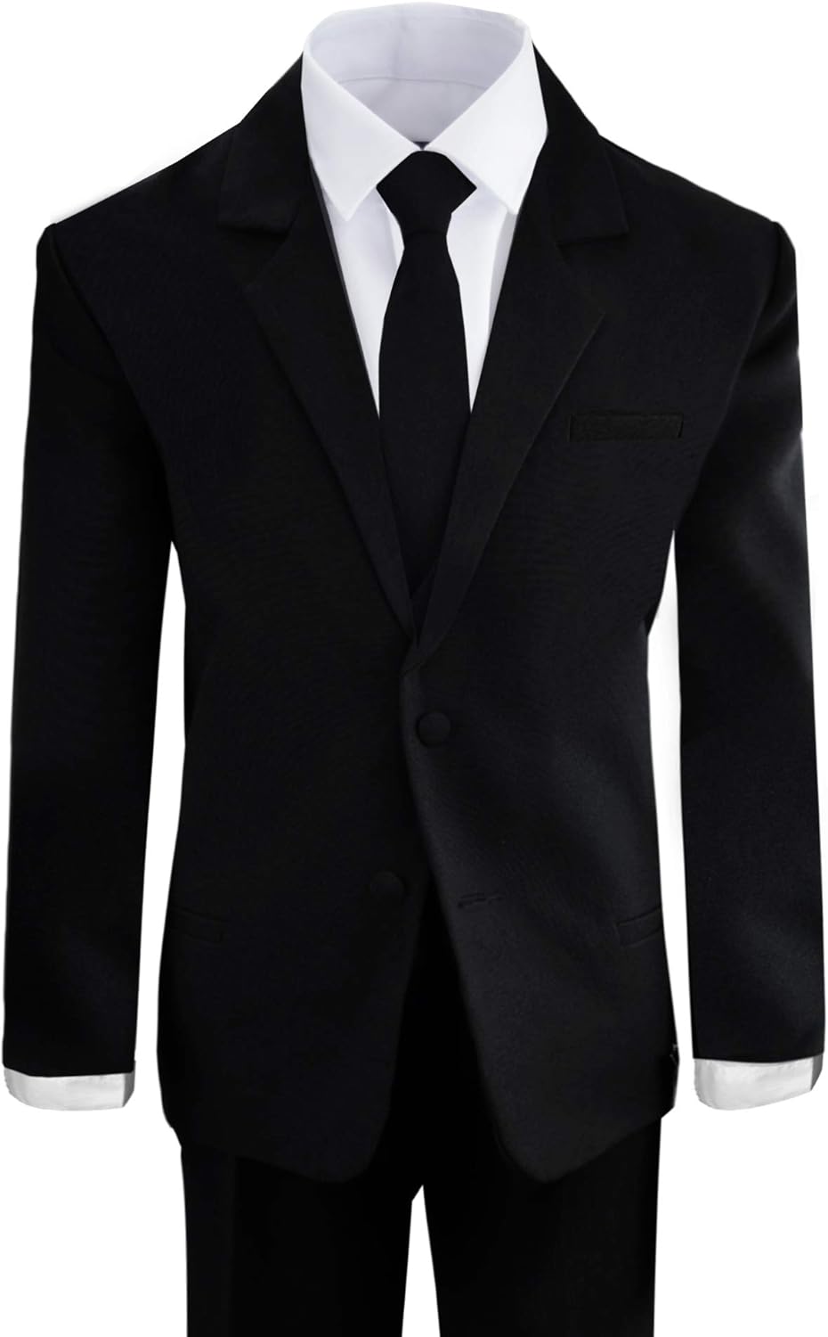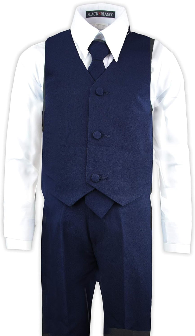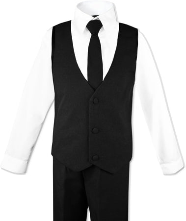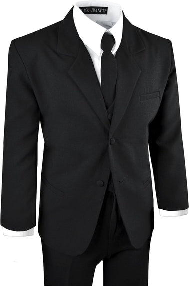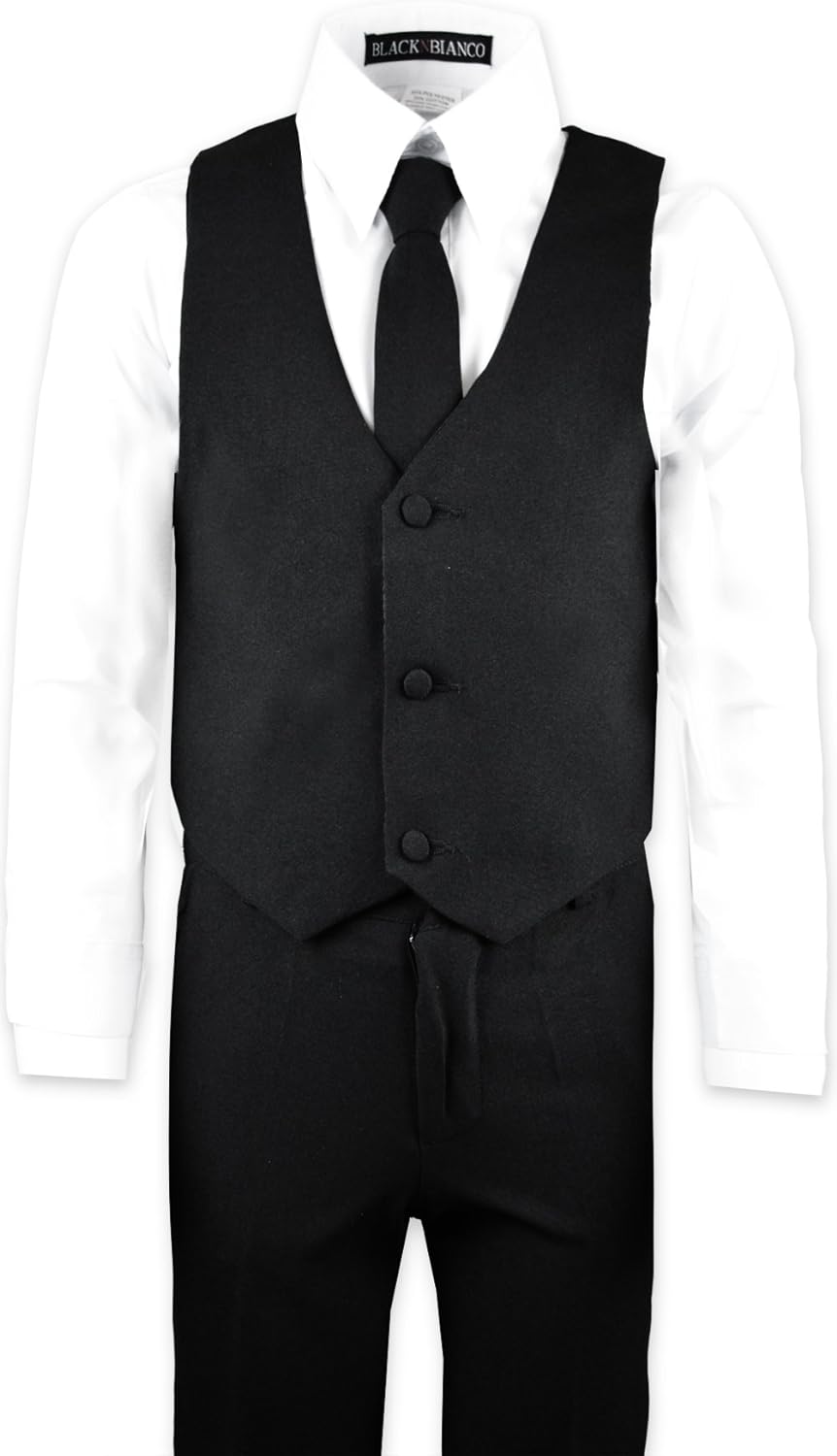 Black n Bianco Boys' Formal Black Suit with Shirt and Vest