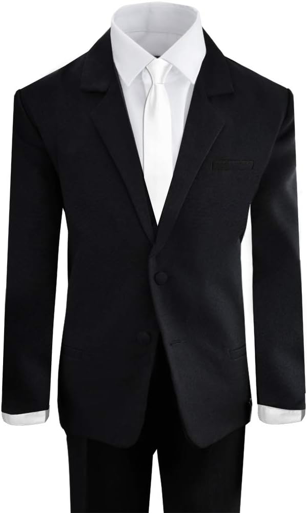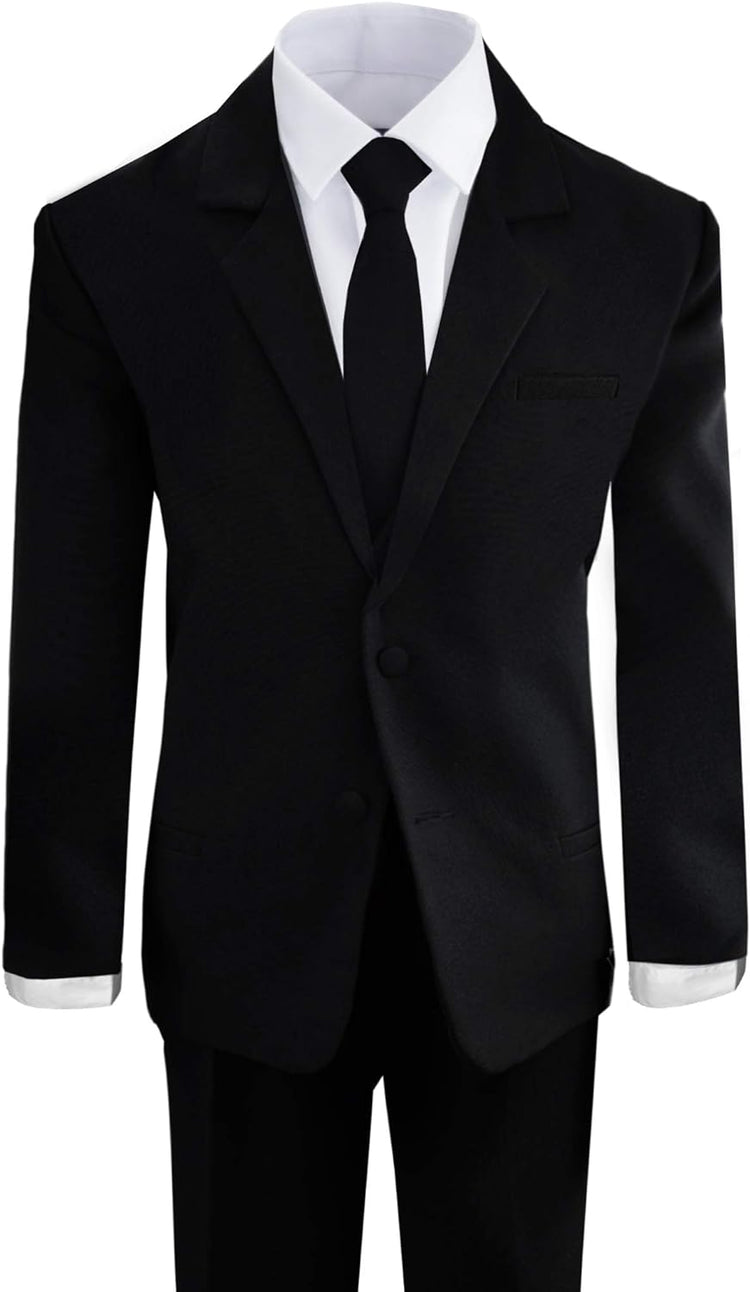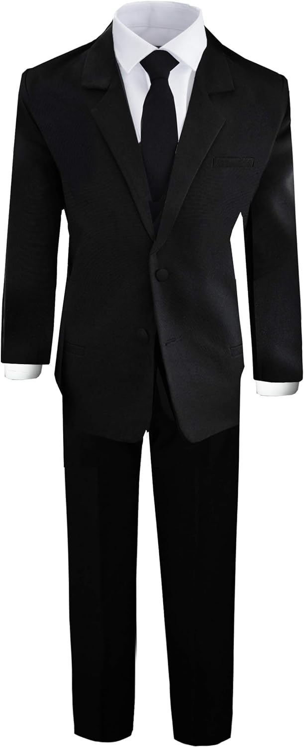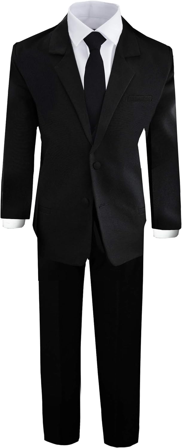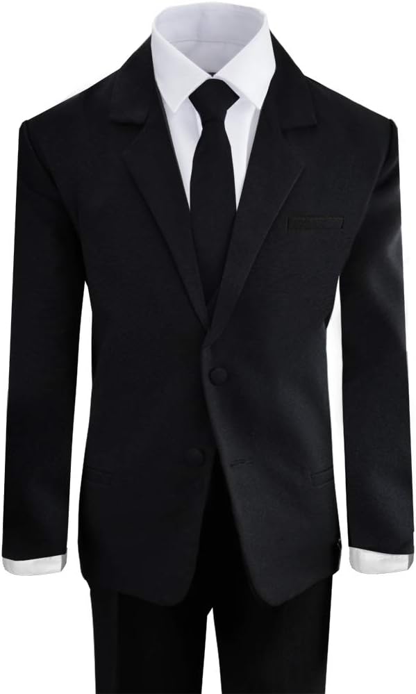 Black n Bianco Boys' Formal Black Suit with Shirt and Vest