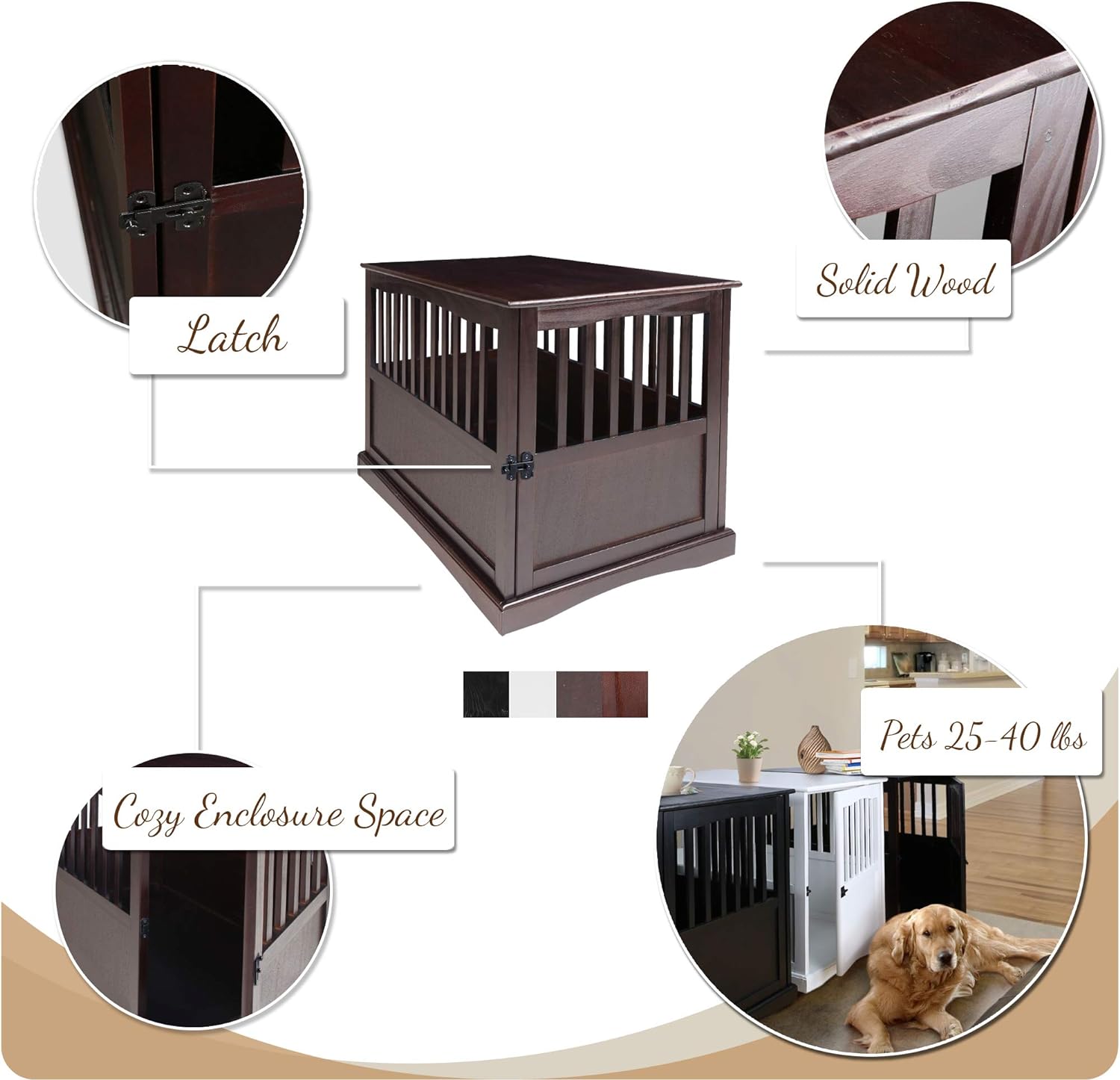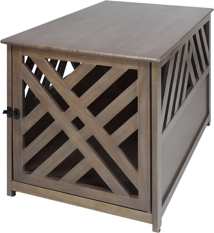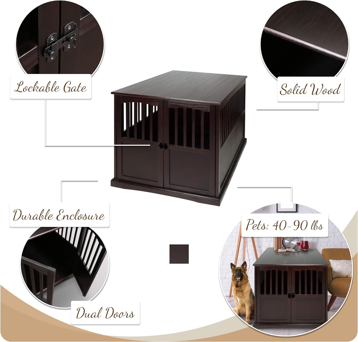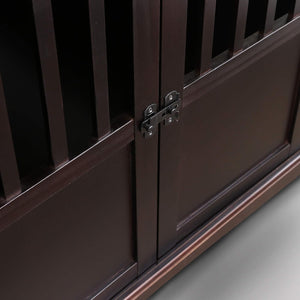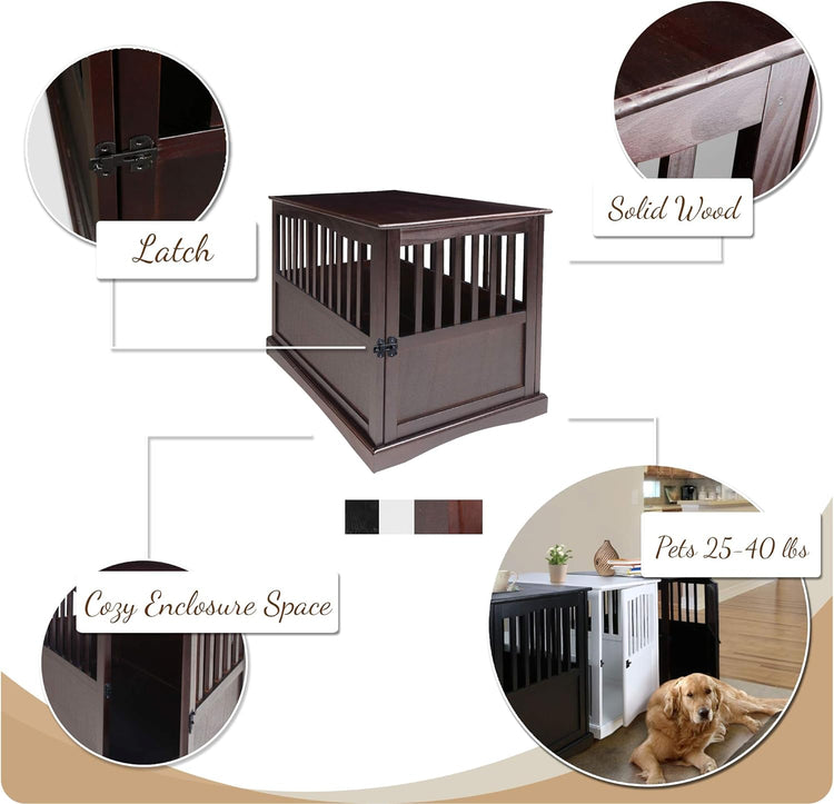 Our solid wood Pet Crate End Table provides a cozy, private spot for your pet to sleep and relax. Strong lockable gate door allows for peace of mind when you're away from home. Rich finish/color options allow you to incorporate it with your other home furnishings.