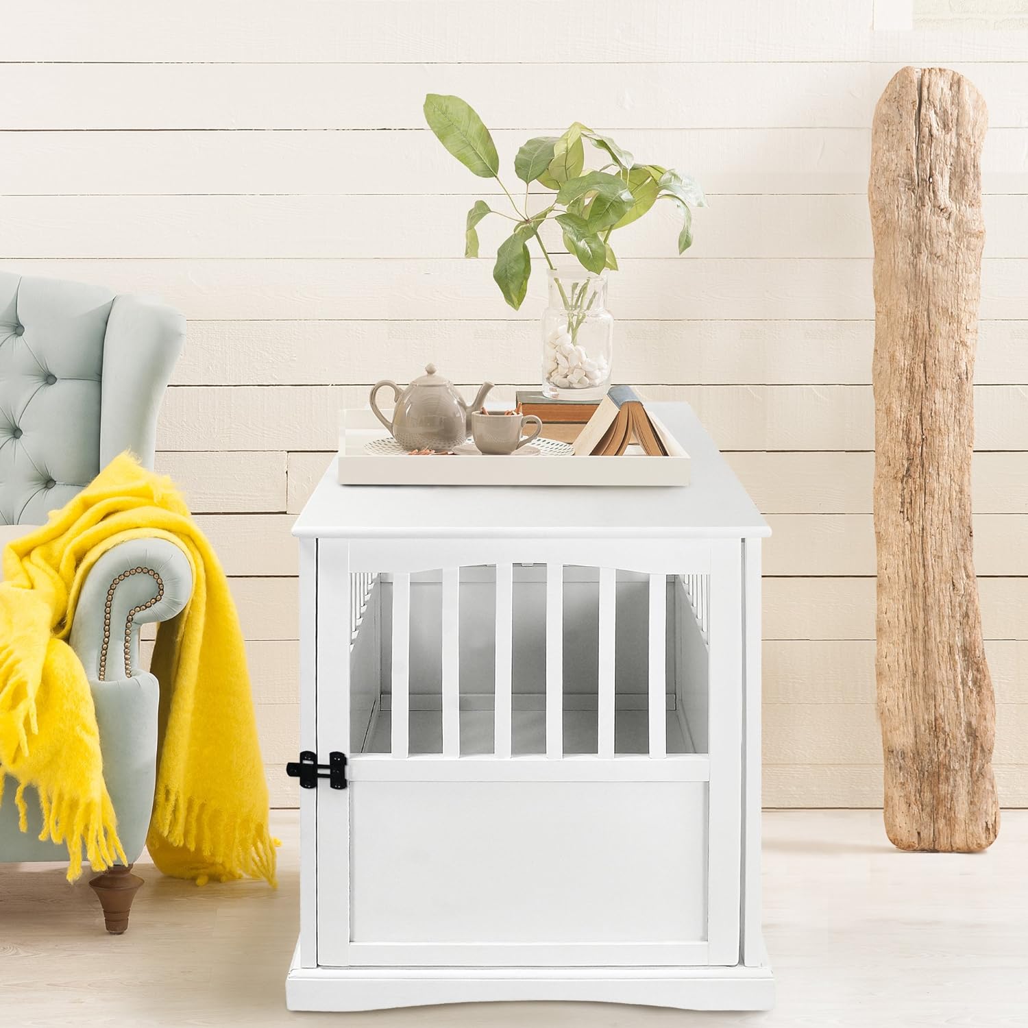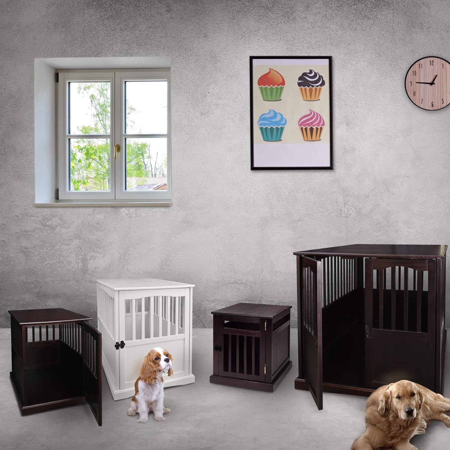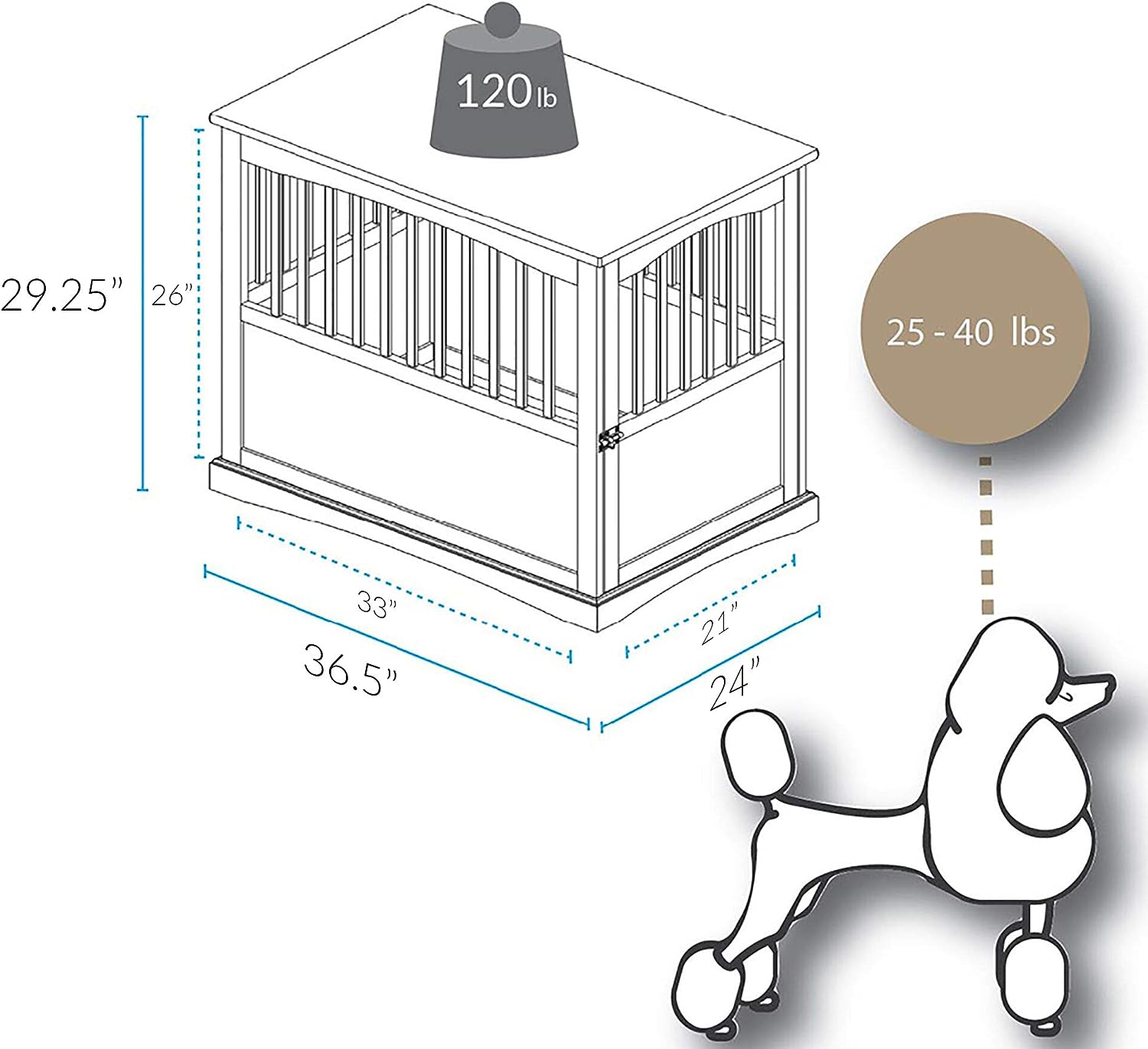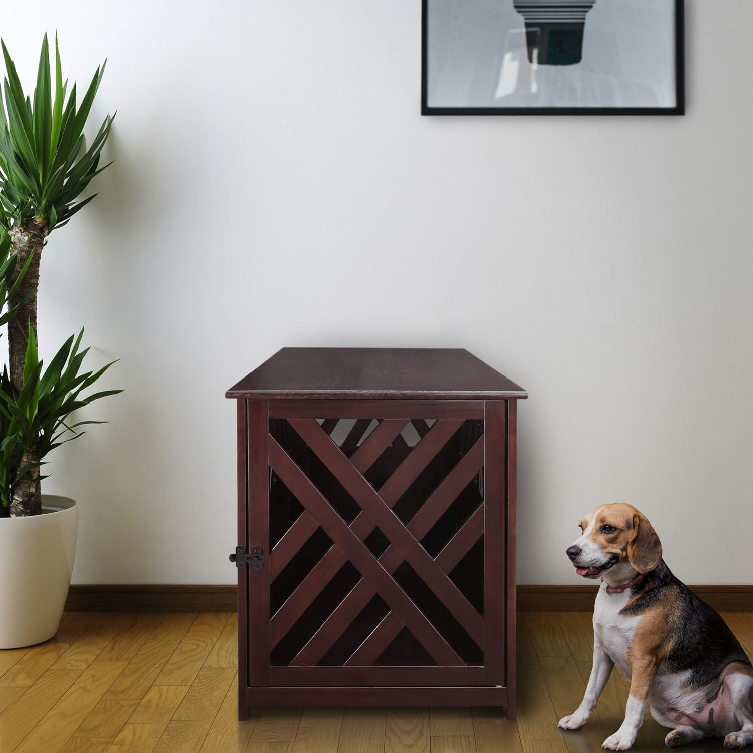 Our solid wood Pet Crate End Table provides a cozy, private spot for your pet to sleep and relax. Strong lockable gate door allows for peace of mind when you're away from home. Rich finish/color options allow you to incorporate it with your other home furnishings.