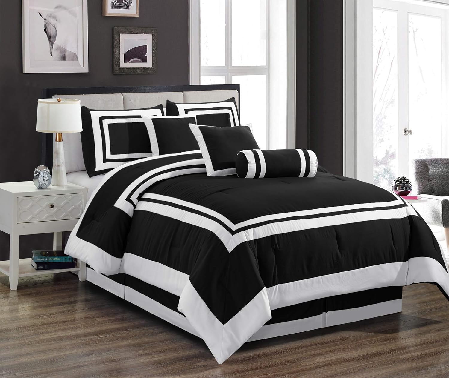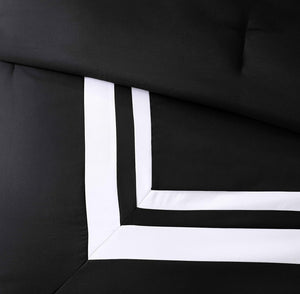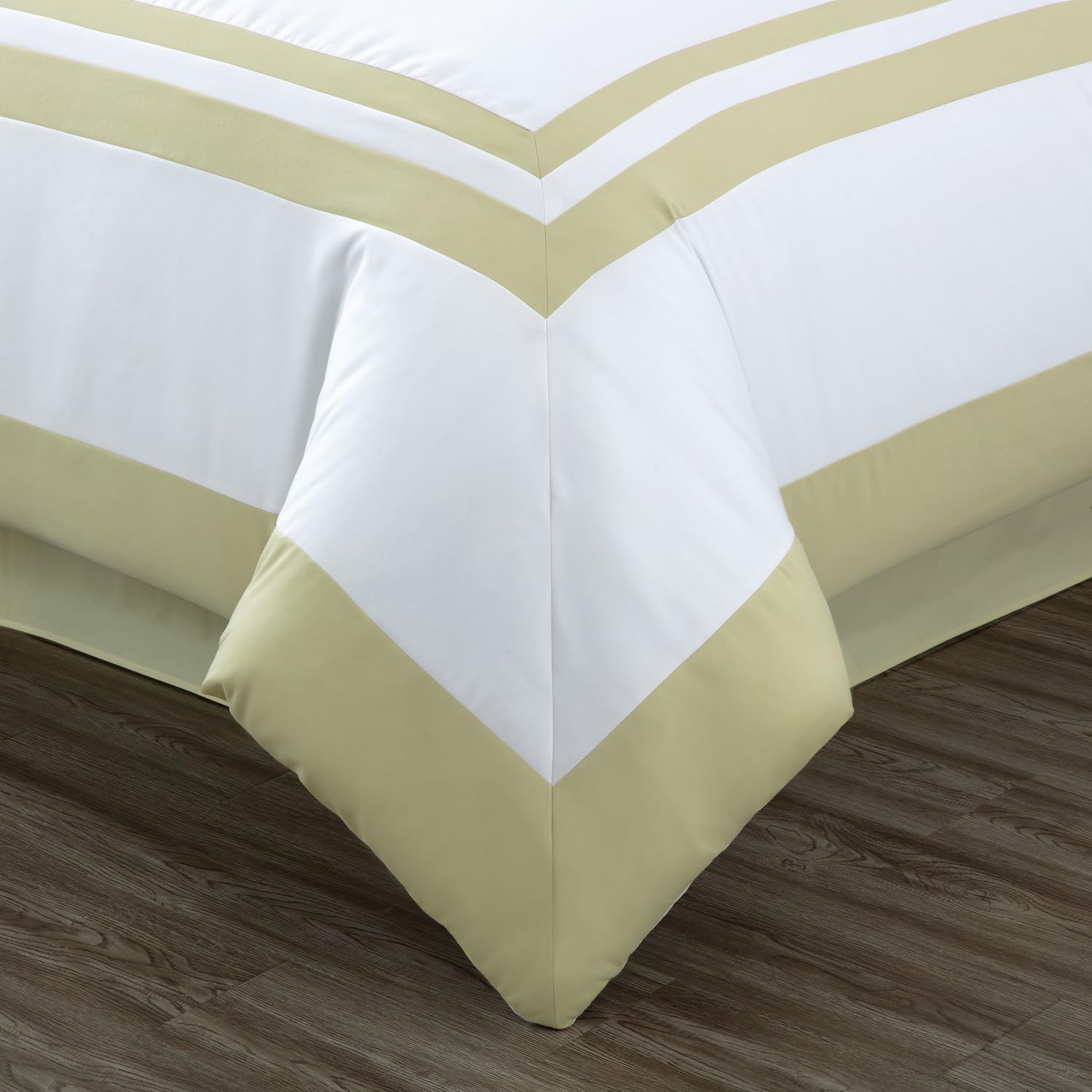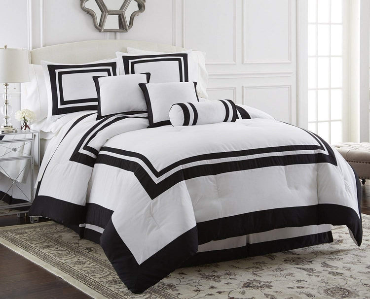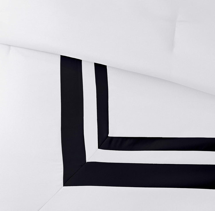 - Hotel style bedding comforter set to resemble that five-star ambiance in your bedroom with a classic yet sophisticated two-toned design with contrasting double square framed borders. Elevate your bedroom sanctuary to new heights with this exquisite ensemble that combines timeless style, premium quality, and unparalleled coziness.