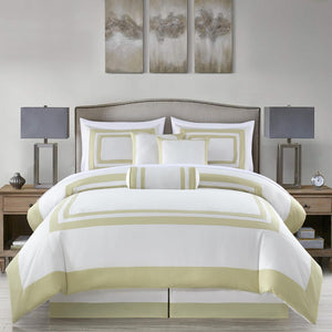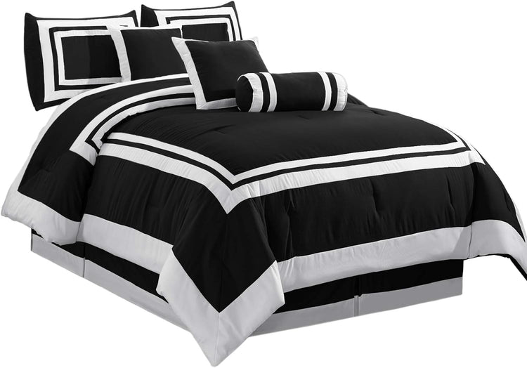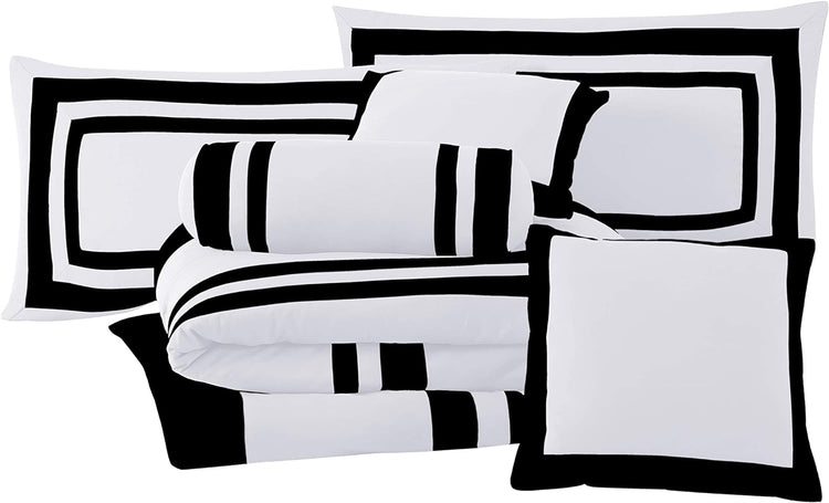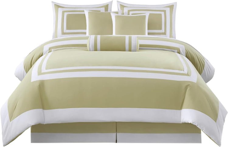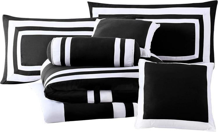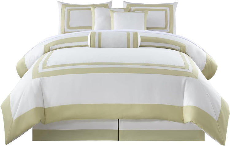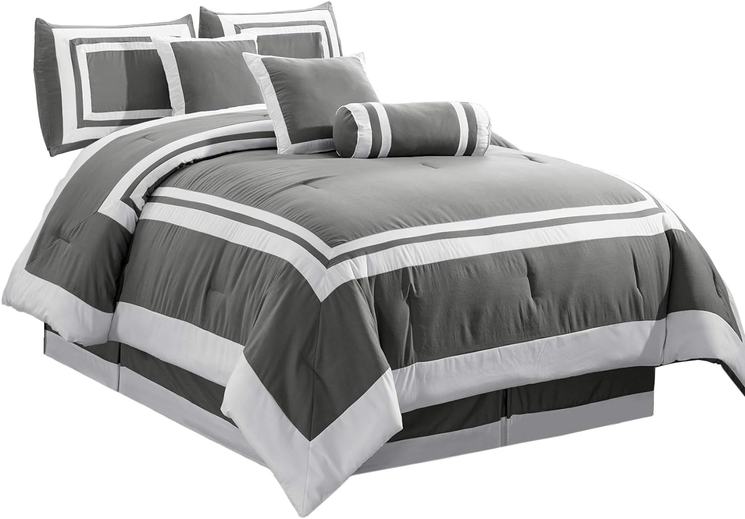 - Hotel style bedding comforter set to resemble that five-star ambiance in your bedroom with a classic yet sophisticated two-toned design with contrasting double square framed borders. Elevate your bedroom sanctuary to new heights with this exquisite ensemble that combines timeless style, premium quality, and unparalleled coziness.