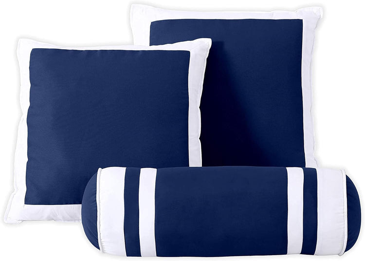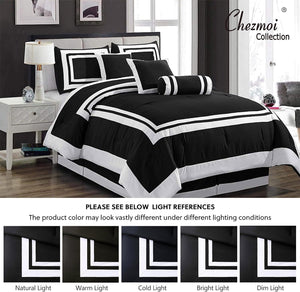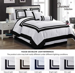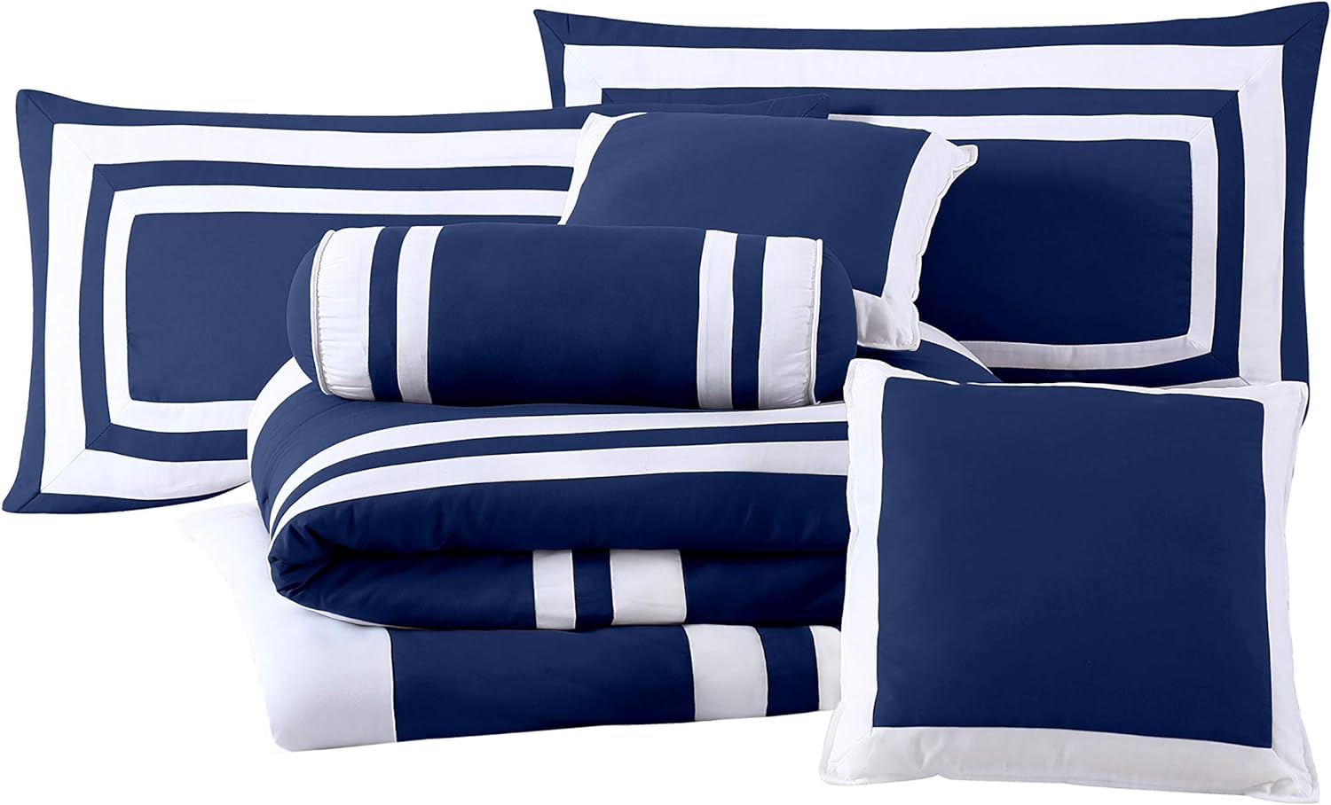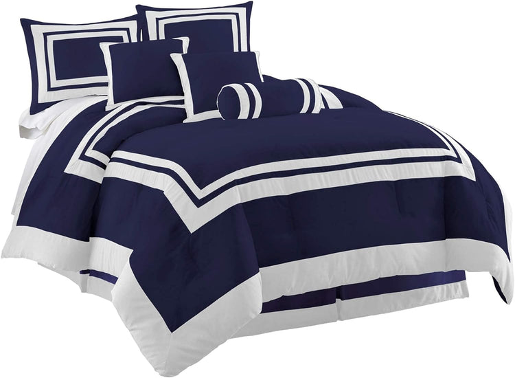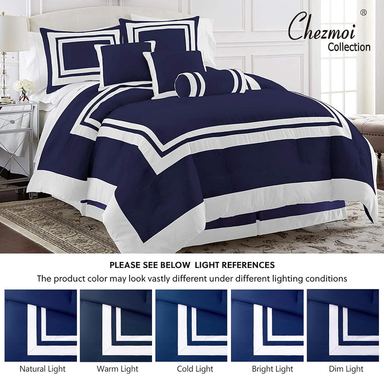 Chezmoi Collection 7-Piece Caprice Navy/White Square Pattern Hotel Bedding Comforter Set, King