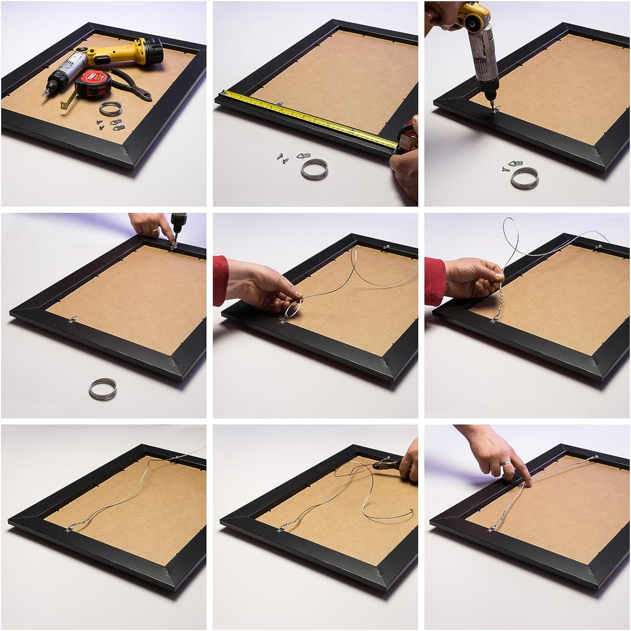 - Frame includes: white matting, clear acrylic facing, rigid cardboard backing and wire hanging hardware kit (some assembly required)