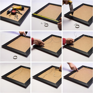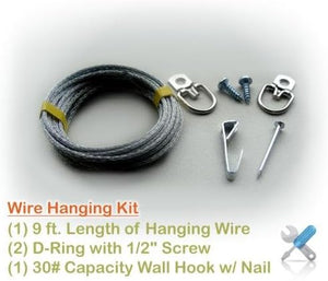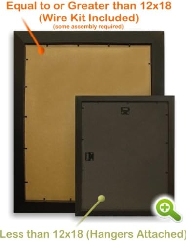 - Frame includes: clear acrylic facing, rigid cardboard backing and wire hanging hardware kit (some assembly required)