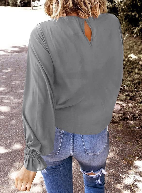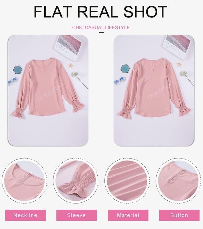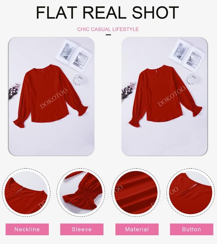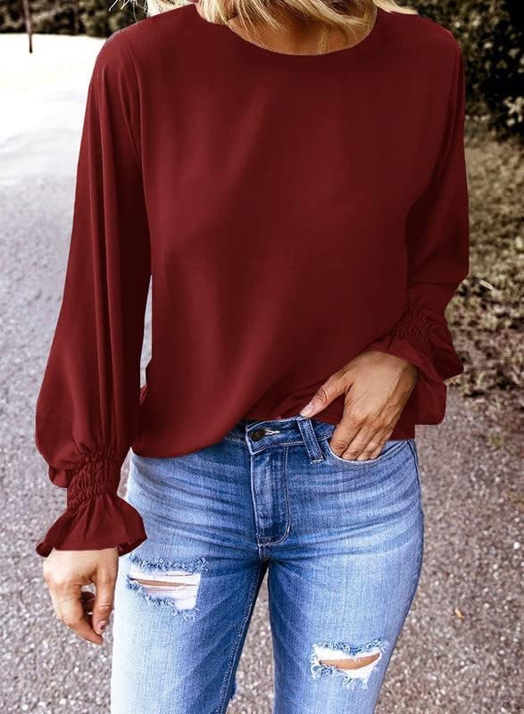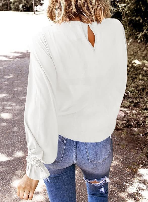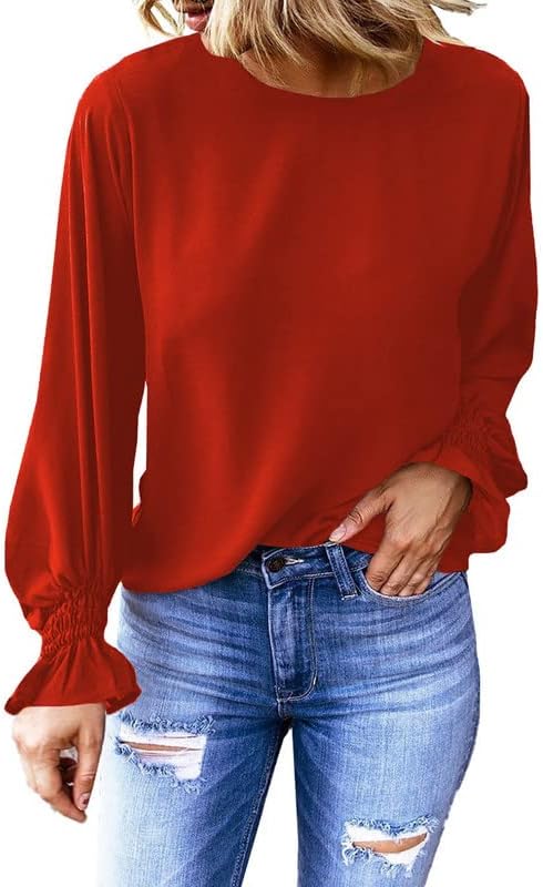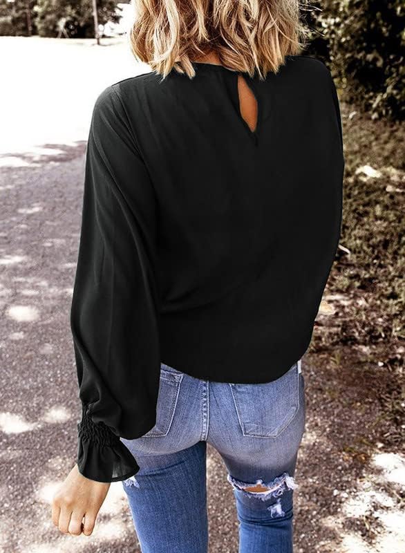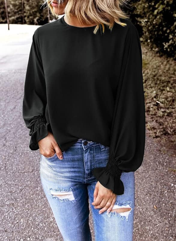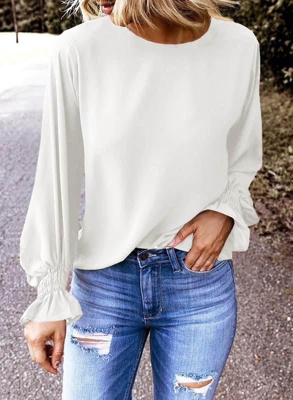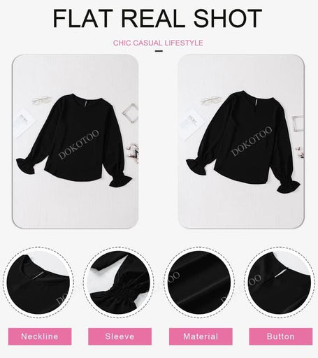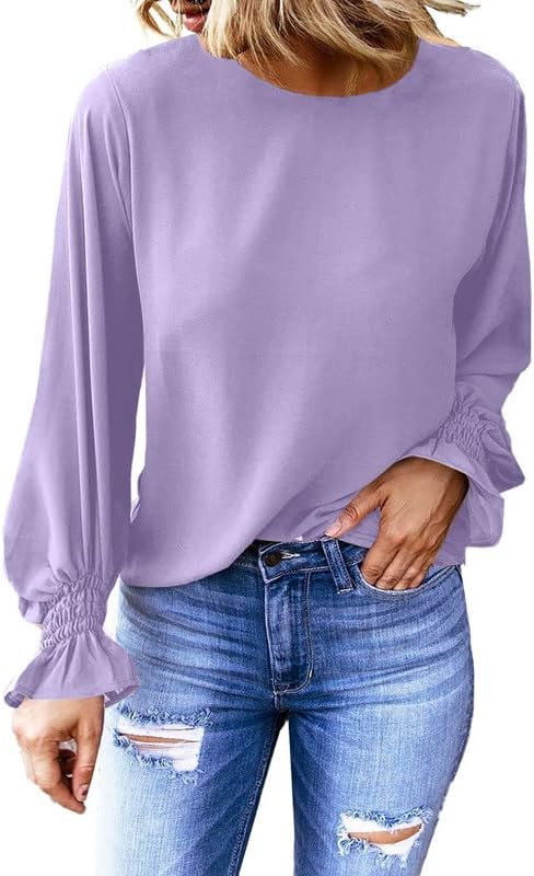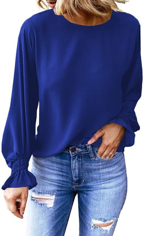 Dokotoo Womens 2023 Summer Long Sleeve Ruffle Bubble Sleeve Casual Loose Shirts Tops and Blouses