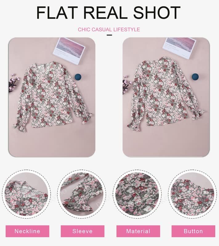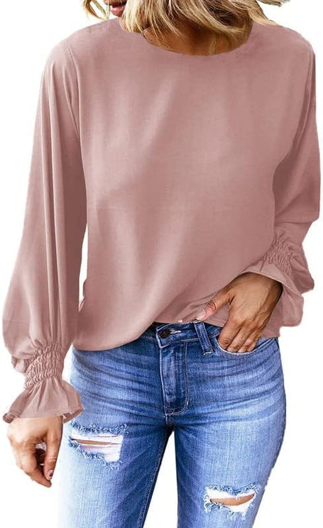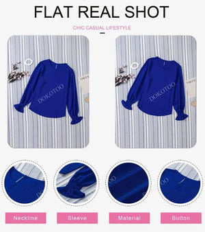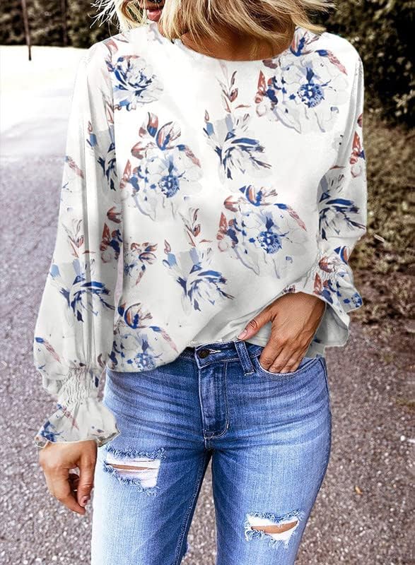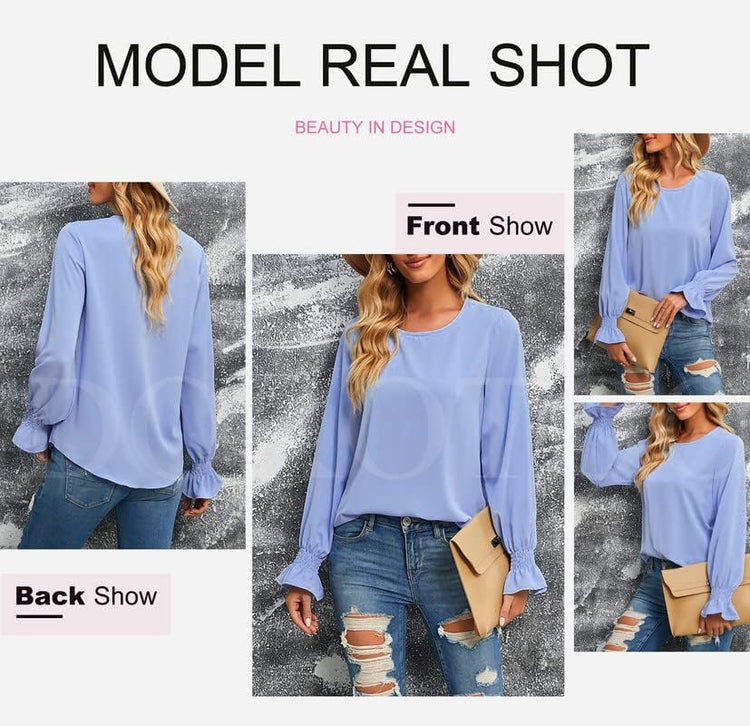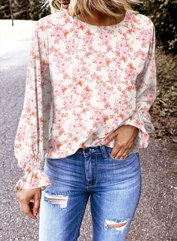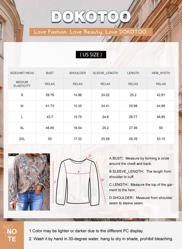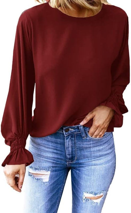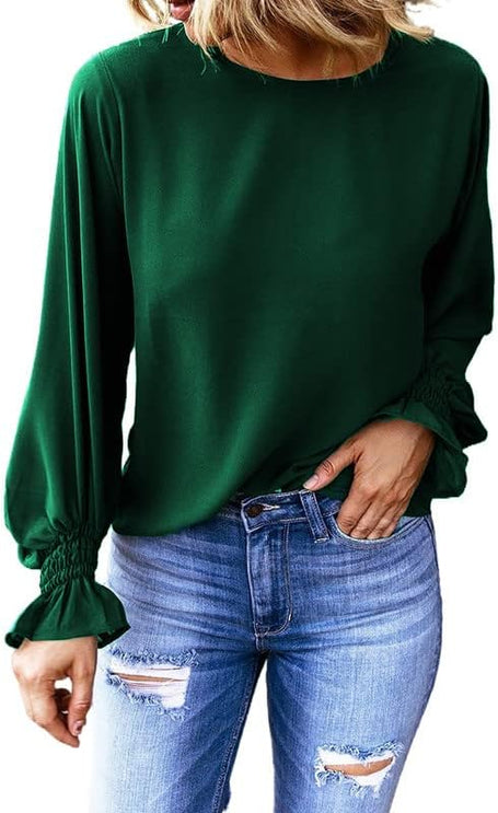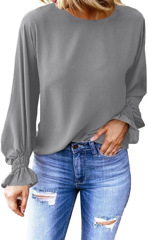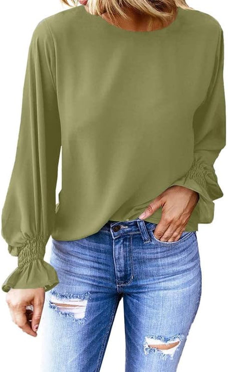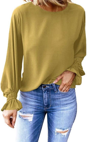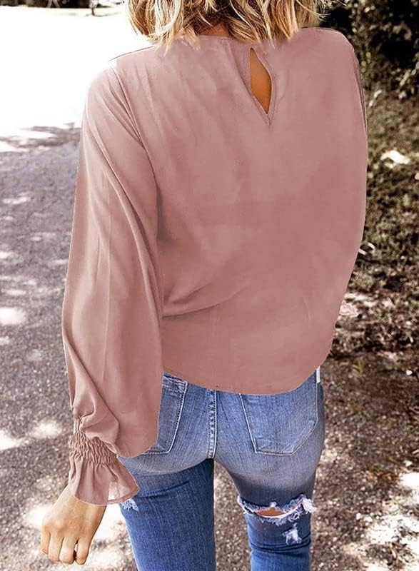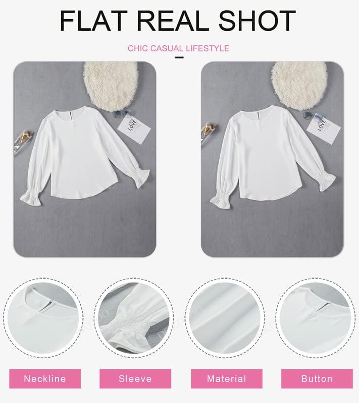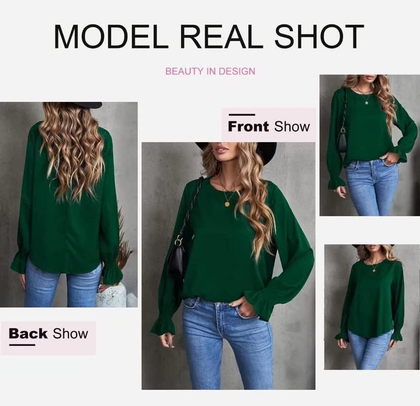 Dokotoo Womens 2023 Summer Long Sleeve Ruffle Bubble Sleeve Casual Loose Shirts Tops and Blouses