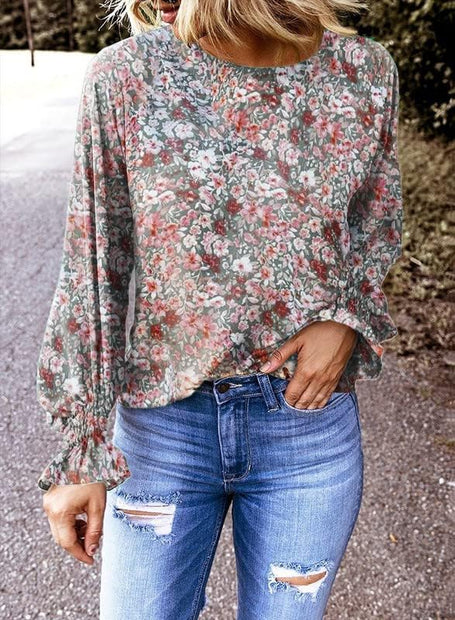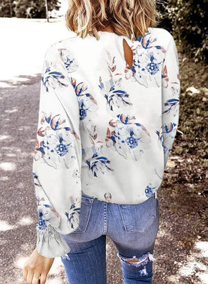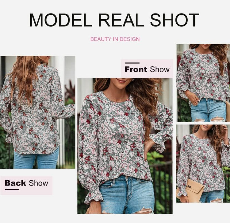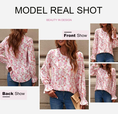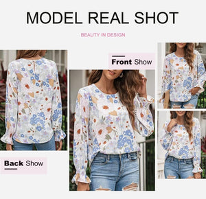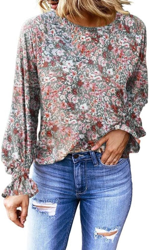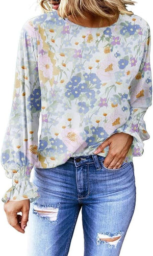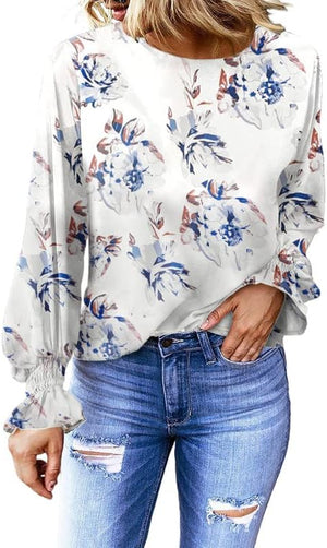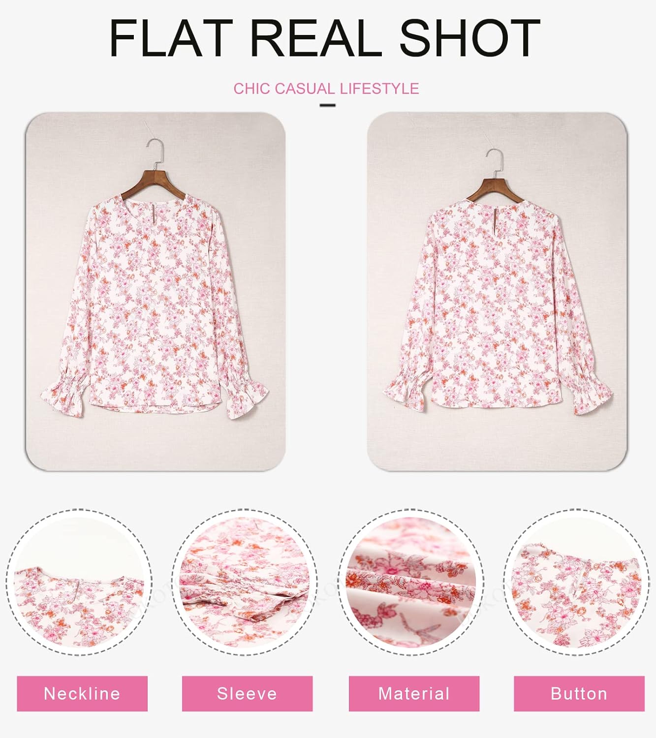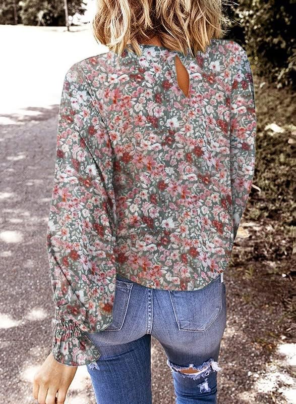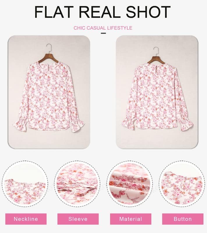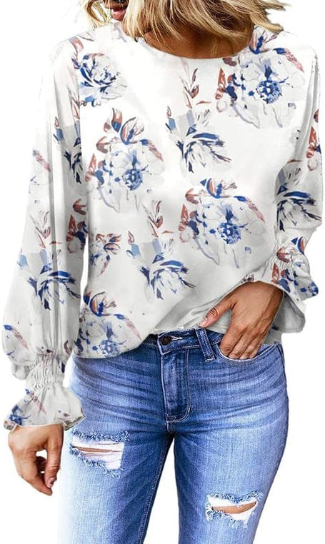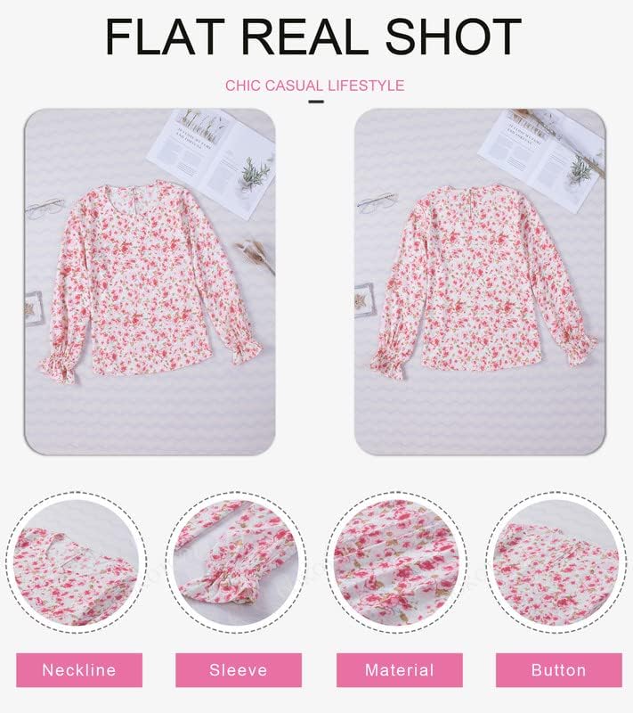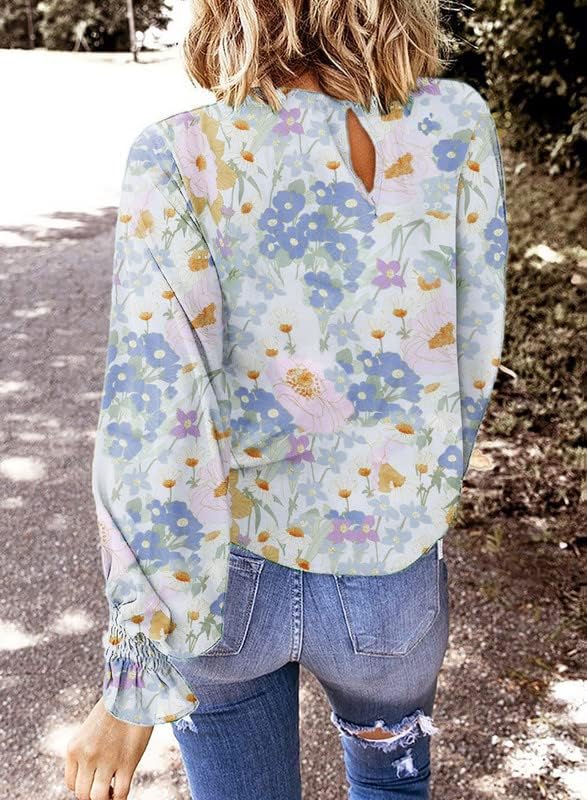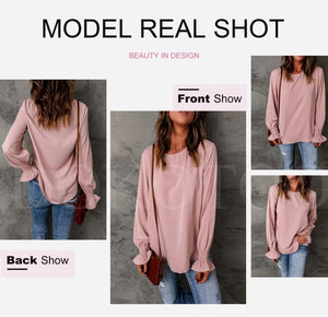 Dokotoo Womens 2023 Summer Long Sleeve Ruffle Bubble Sleeve Casual Loose Shirts Tops and Blouses