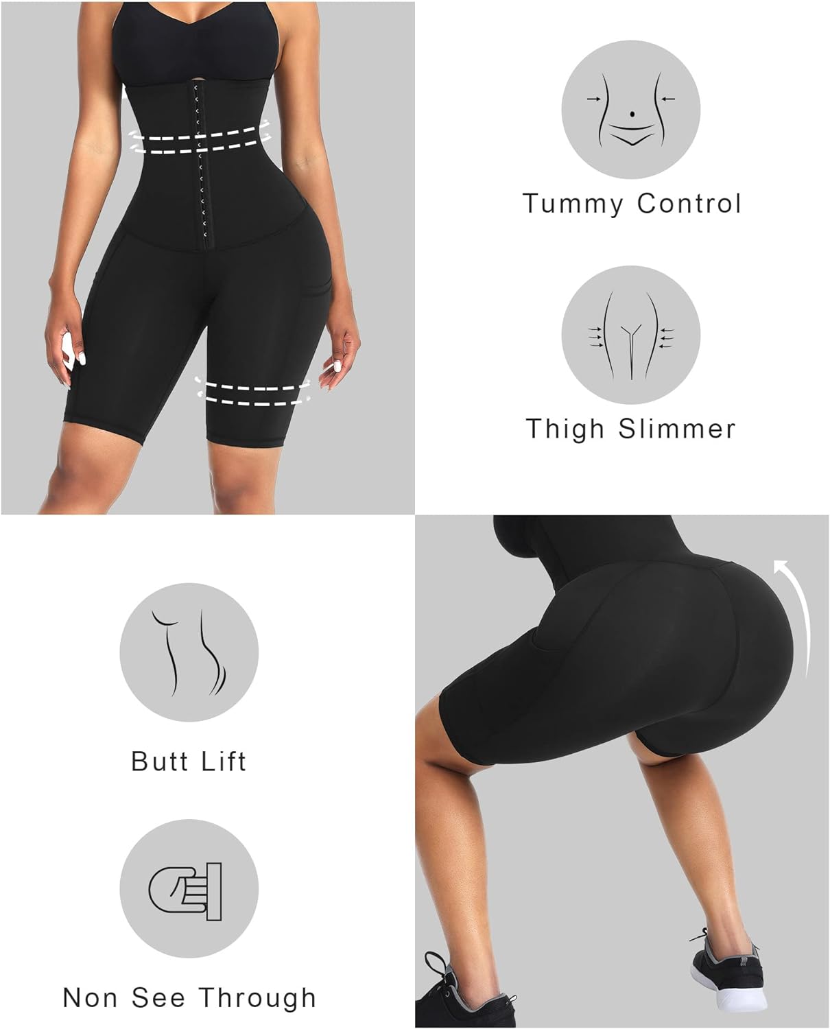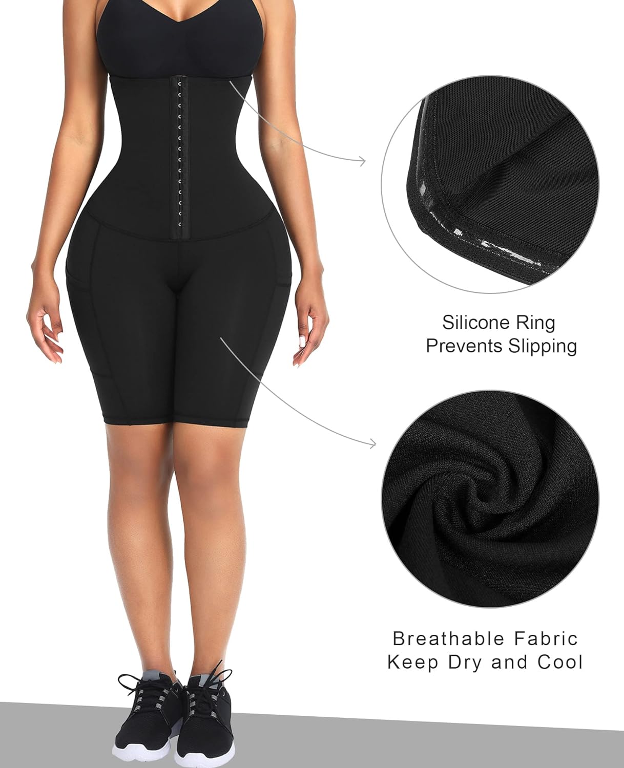 FeelinGirl Shapewear for Women Tummy Control Waist Trainer Short Body Shaper Thigh Slimmer Butt Lifting with Pocket