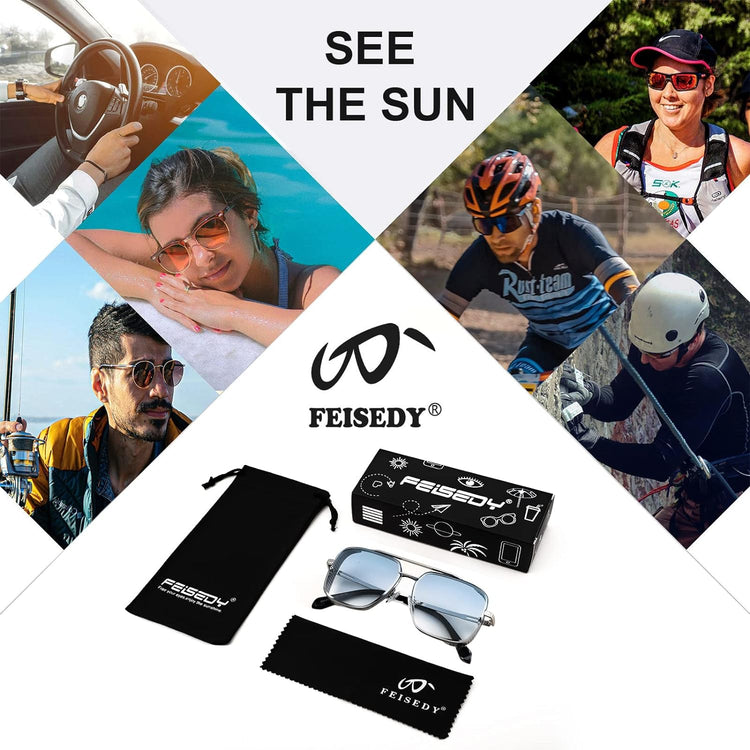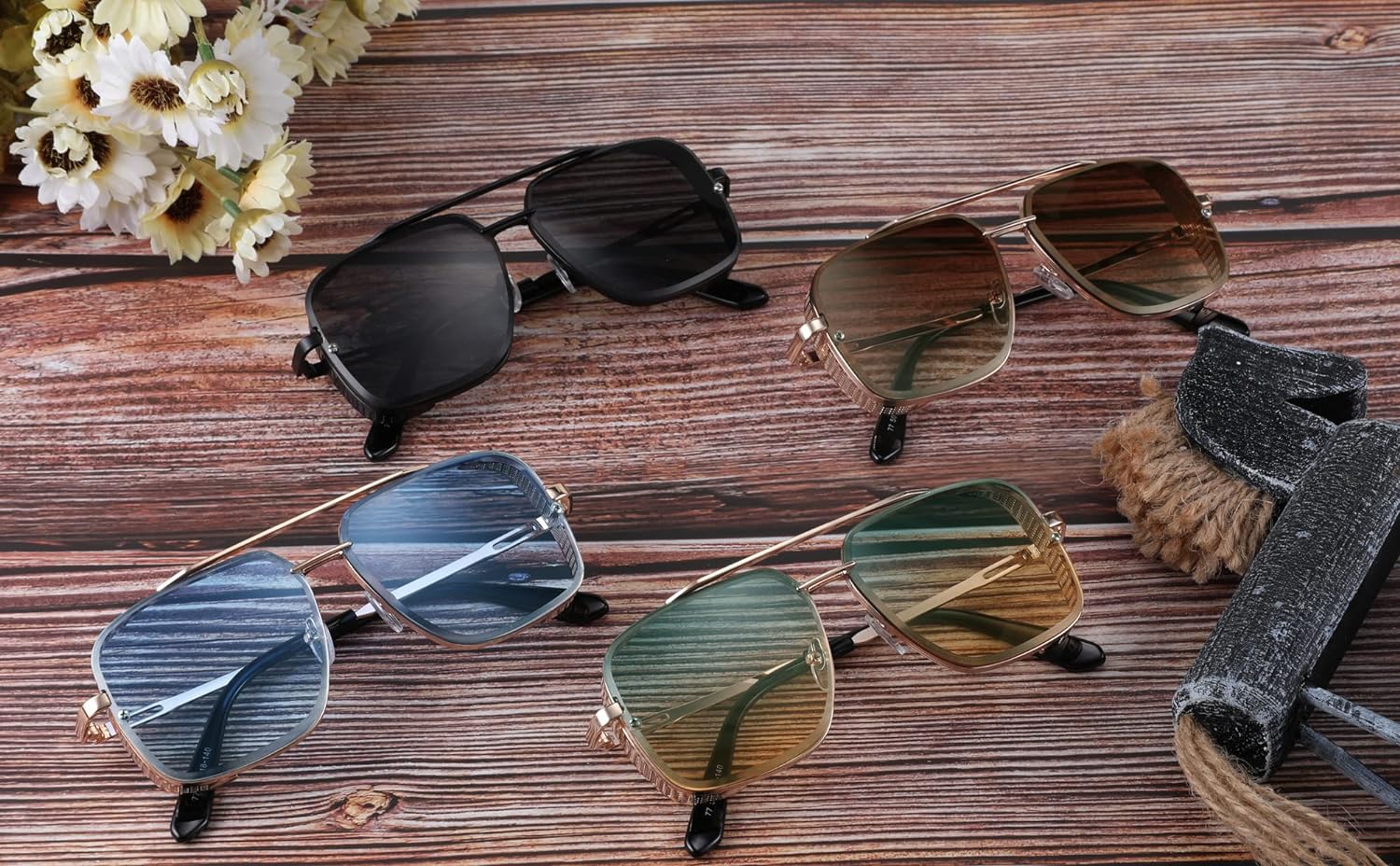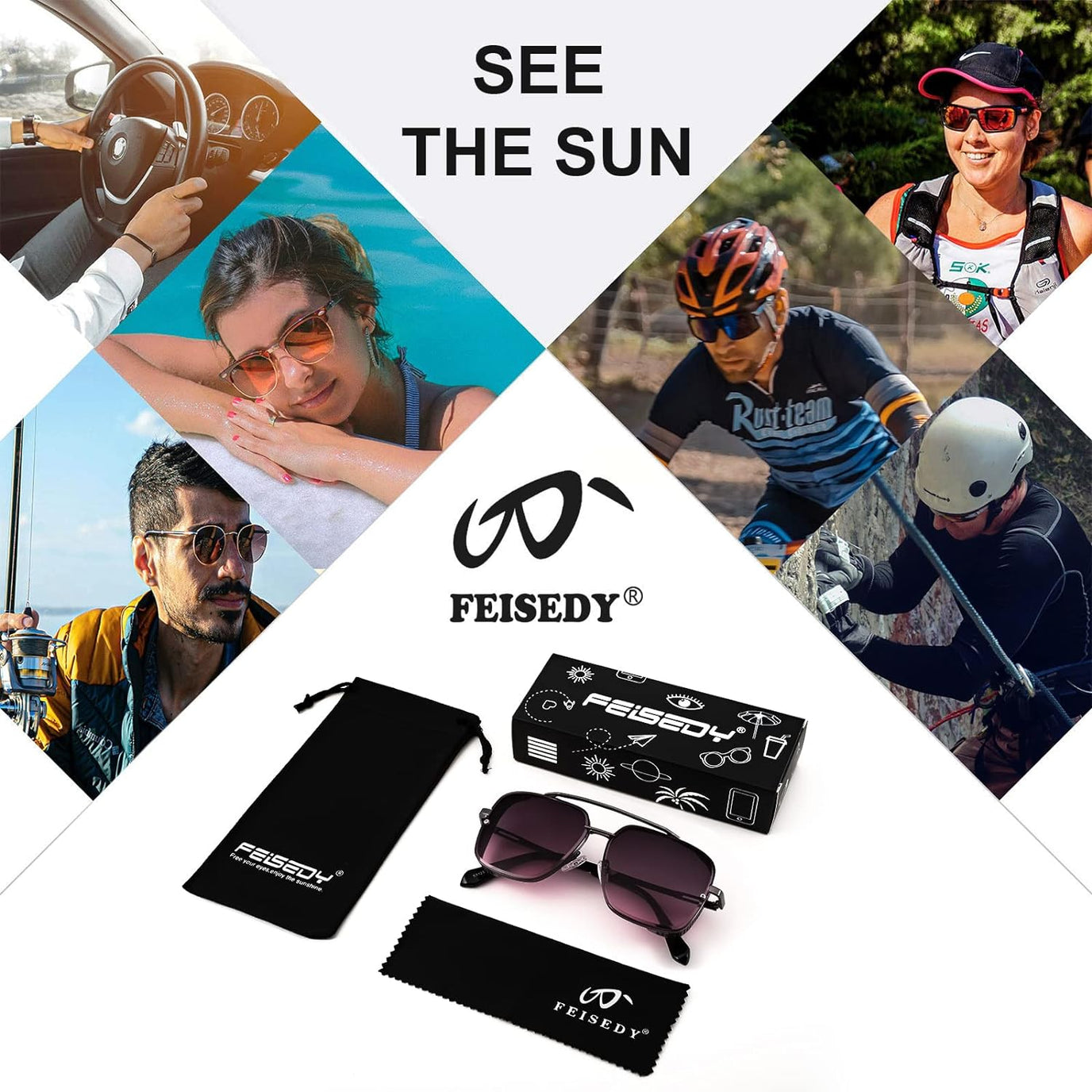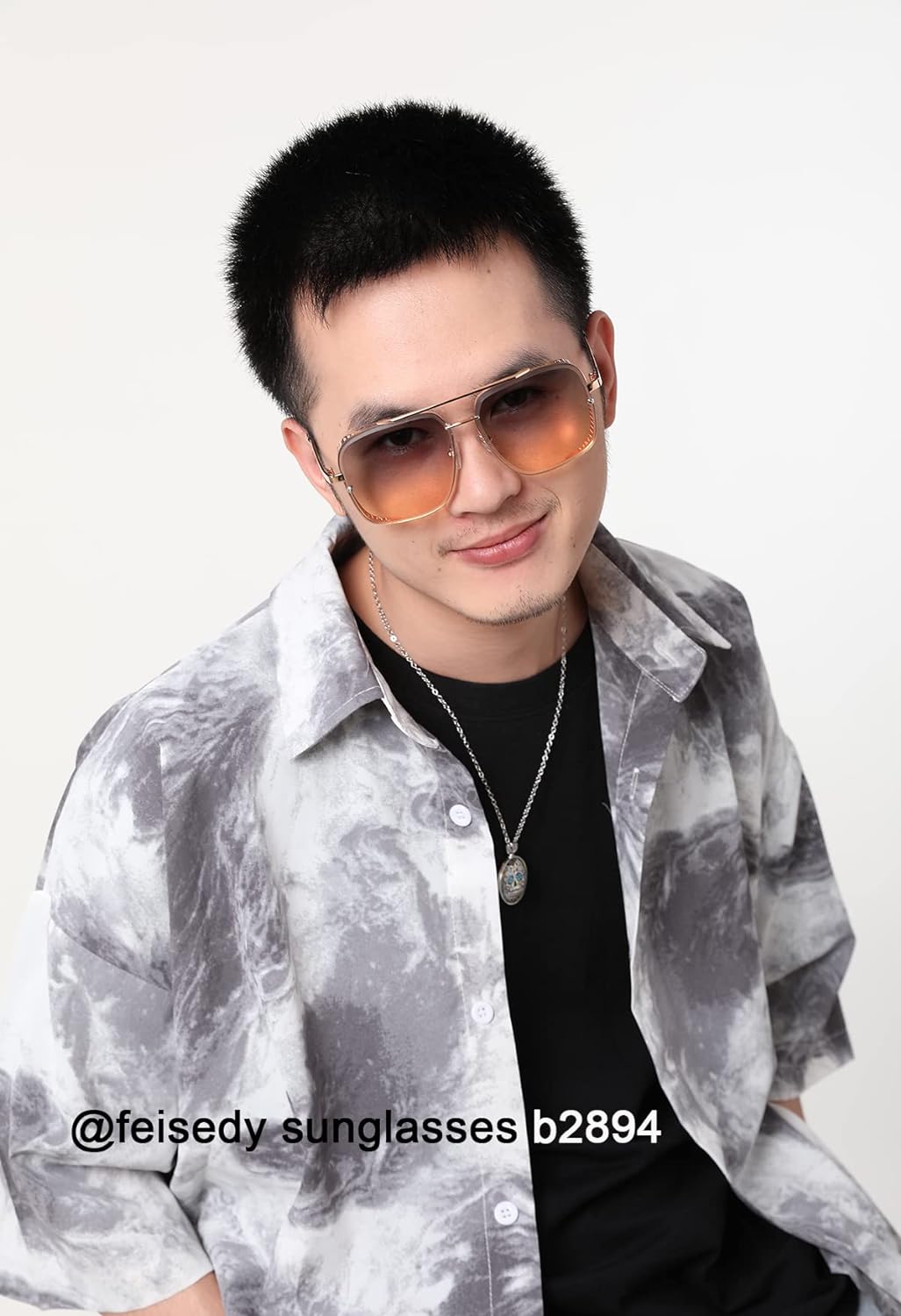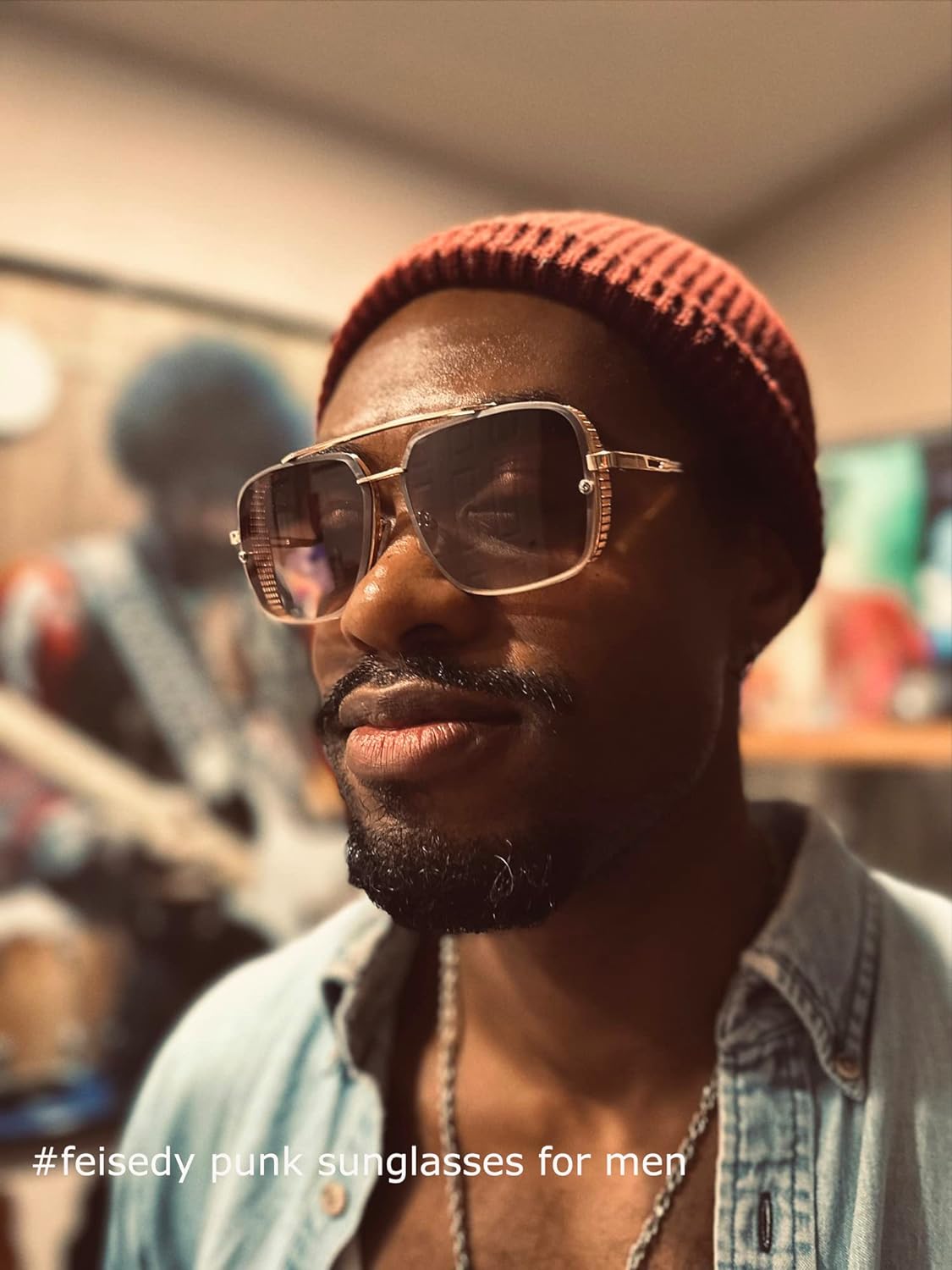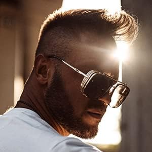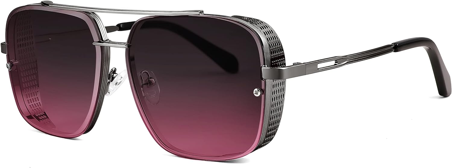 FEISEDY Square Pilot Steampunk Sunglasses Men Vintage Metal Side Shield Oversized Sun Glasses B2894