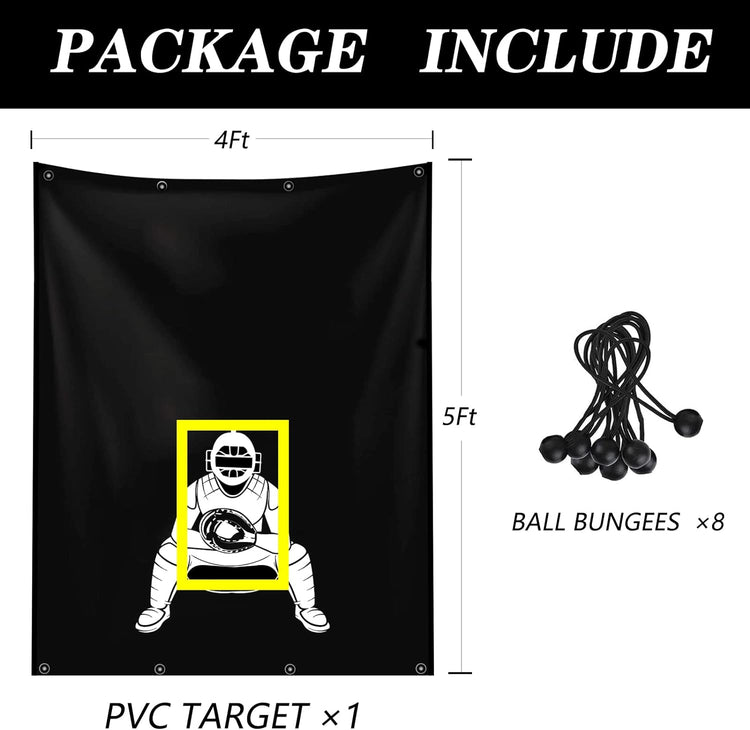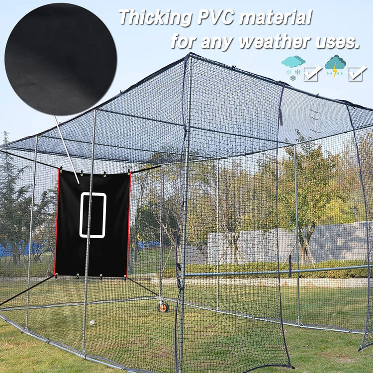 - 4’ X 6’ High Quality Baseball Backstop: The Dimensions of This Baseball Batting Cage Backstop Is 4' X 6'. This Target Cloth Is Made of High-Quality PVC, which Is Strong and Durable. You Can Use It with Confidence in Any Weather.