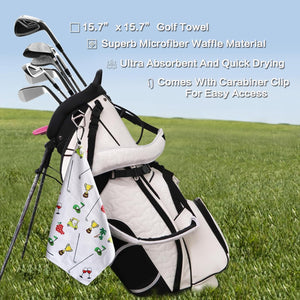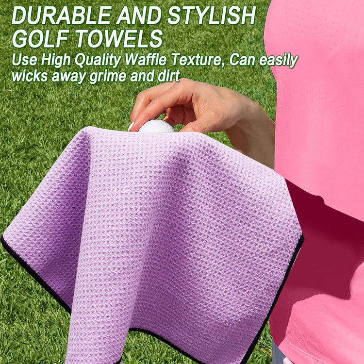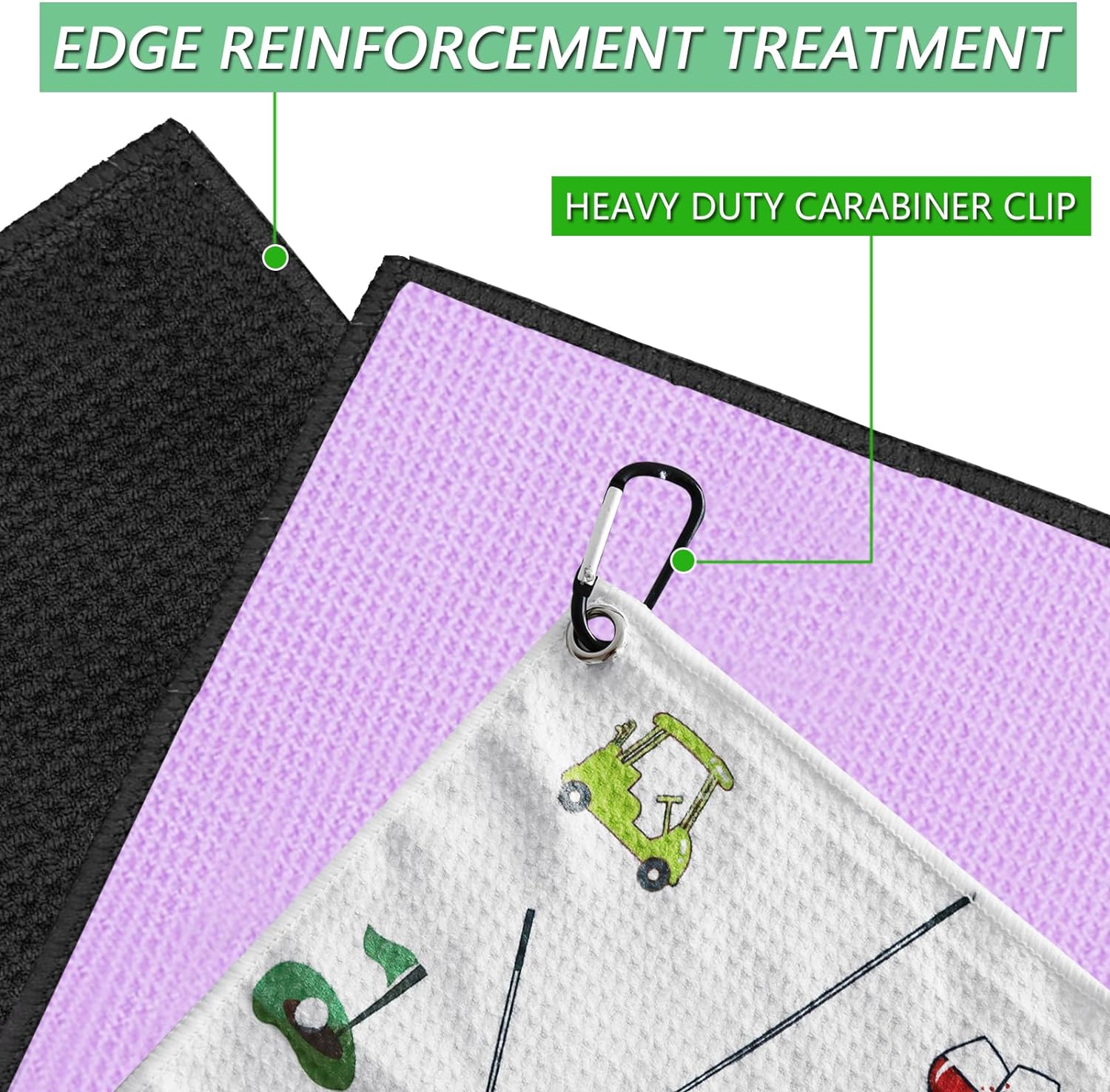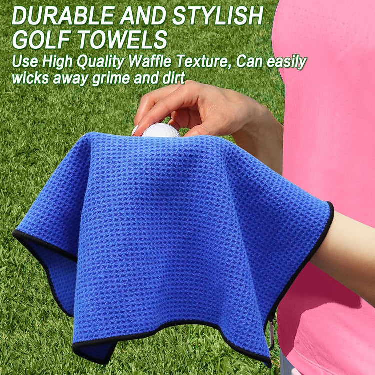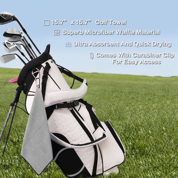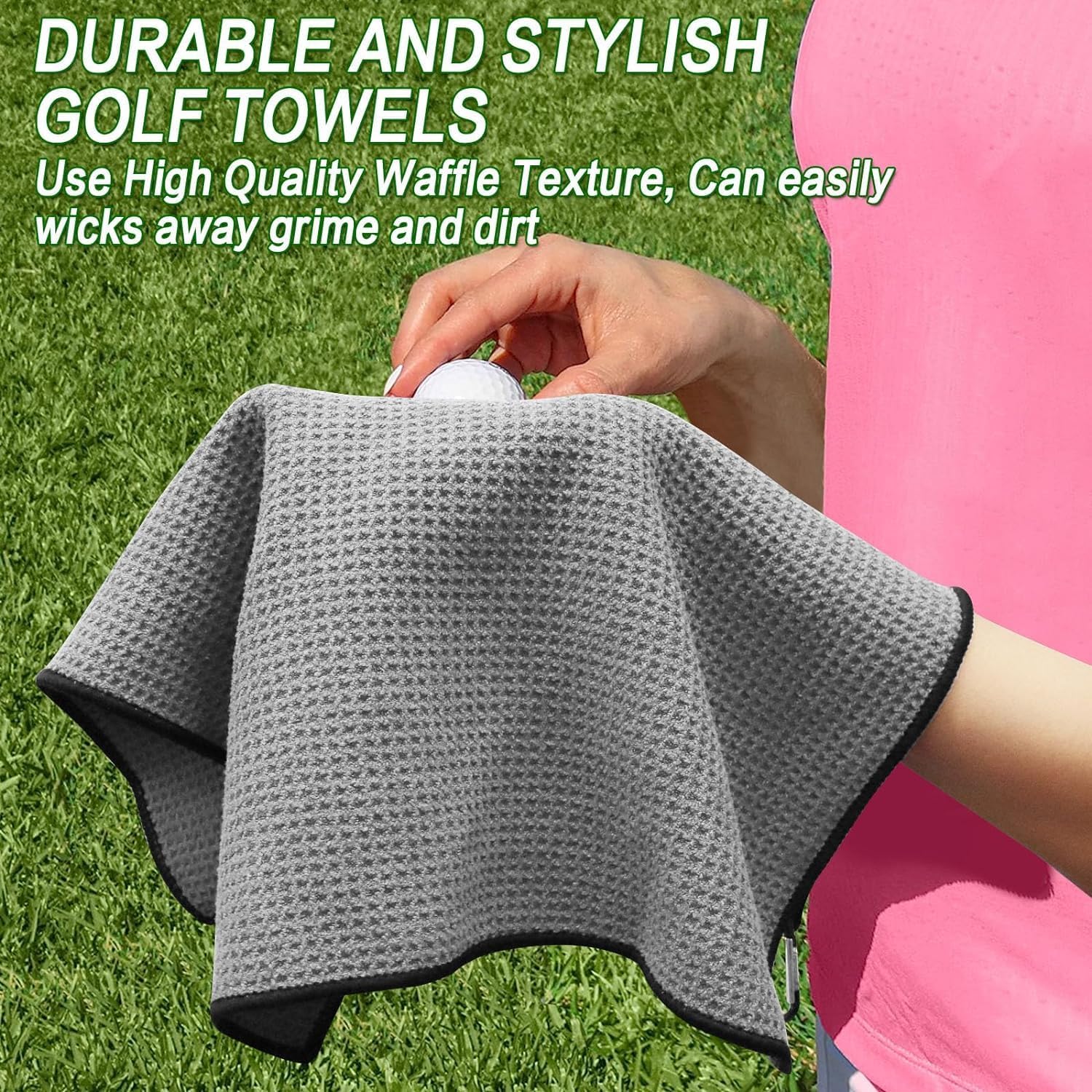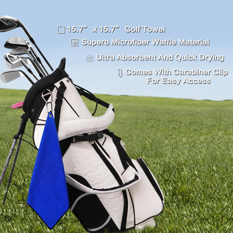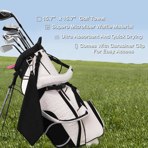 - High Quality Waffle Material Golf Towel: Super Absorbent 400 Grams Per Square Meter, Microfiber Waffle Weave Material Cleans Fast and Easy;